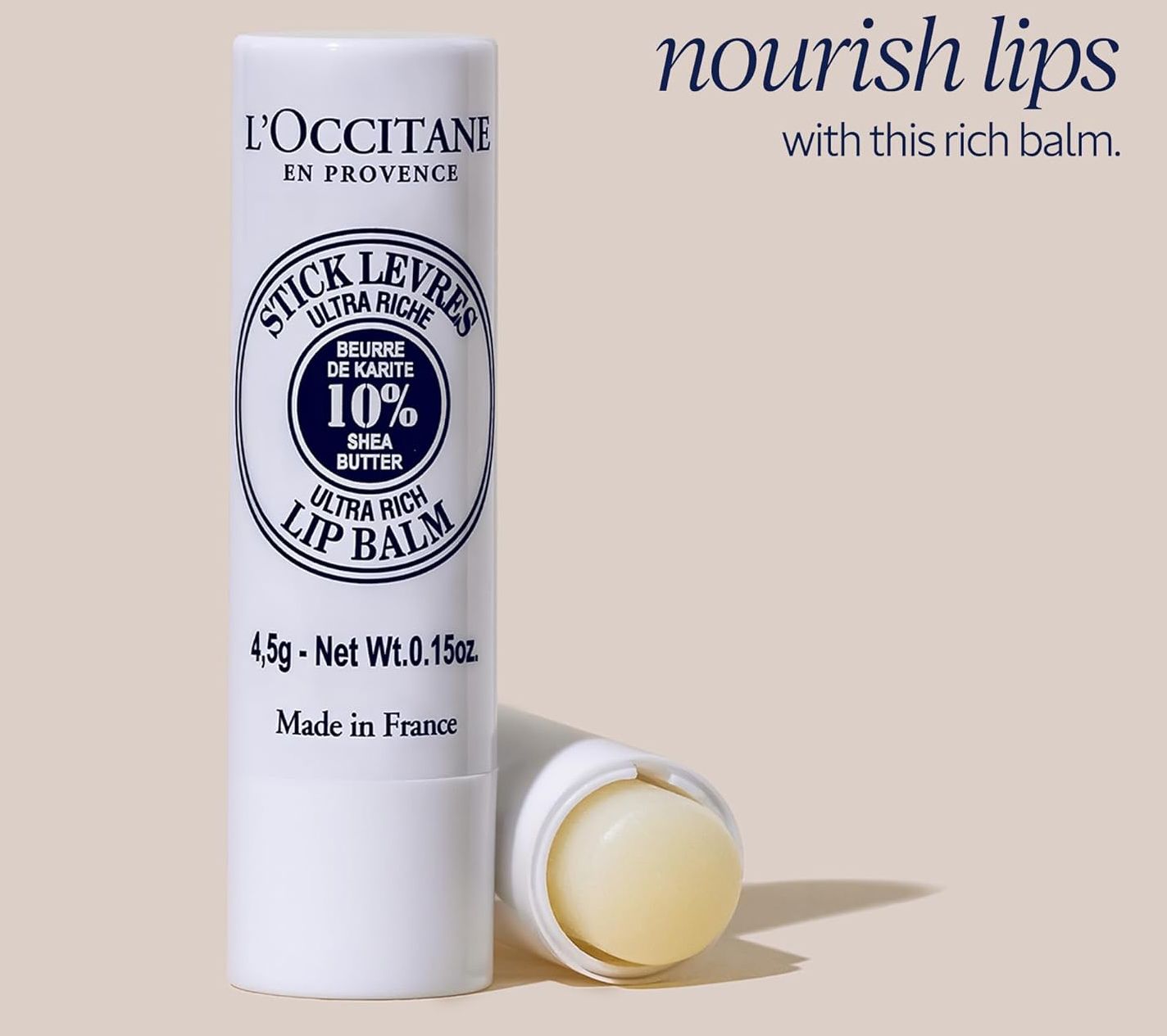 Help provide lips with moisture with this nourishing L'Occitane Shea Butter Ultra Rich Lip Balm. Twist up for softer looking and more moisturize lips wherever you go. Apply on lips as often as desired.