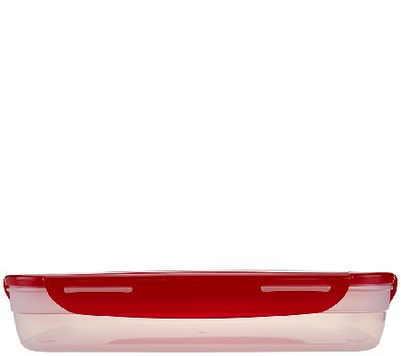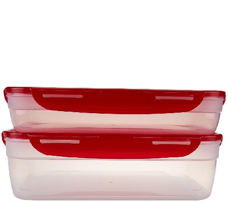 Tote your tasty treats without worry. Lock & Lock's 9x13 set consists of two rectangular containers that are large enough to fit cakes, cookies, and other delicious desserts. Attached handles make carrying them a snap. Then toss them in the dishwasher for quick cleaning. From Lock & Lock.