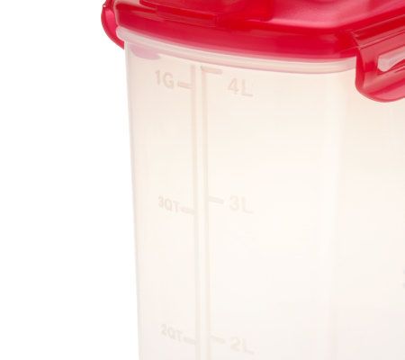 Keep your fridge, cooler, or picnic basket spill free with this two-piece pitcher set. The patented four-hinge locking system on the lids ensures any drink you store inside stays put. They're ideal for milk, juice, ice tea, or lemonade. From Lock & Lock.
