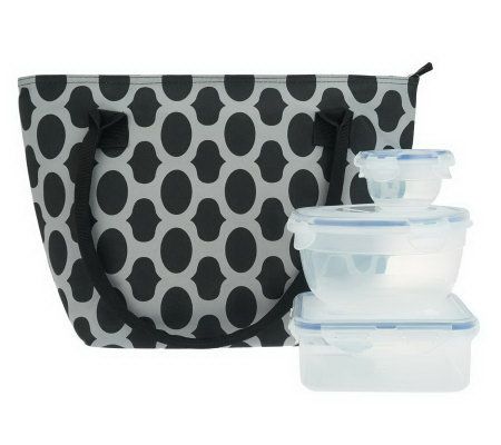 Load and lock. Seal in freshness and prevent spills with these perfectly sized storage containers--each equipped with a four-hinge locking lid to ensure a secure fit. Just pack them in the colorful lunch tote and you're ready to snack in style. From Lock & Lock.