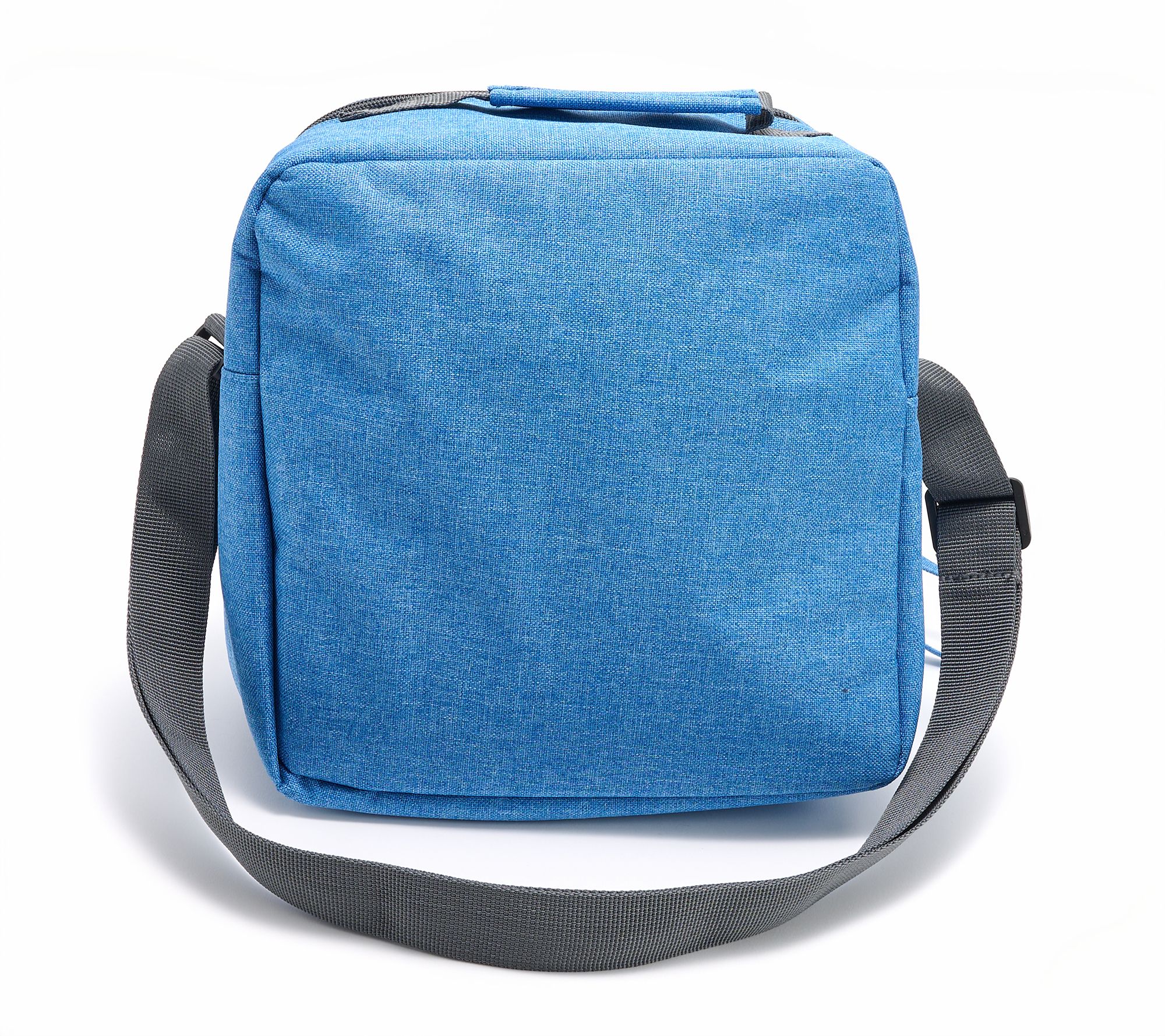 Wide opening, adjustable long shoulder strap, lined insulated interior