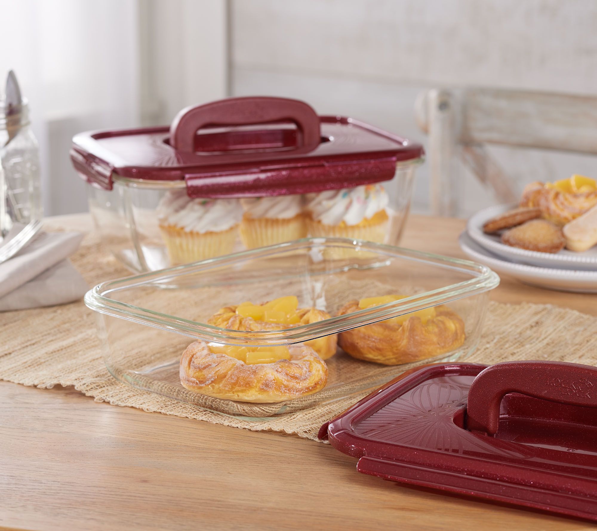 Bake and take just got a whole lot easier with this Lock & Lock set of two glass dishes. Bake brownies, casseroles, or sides in the oven-safe dishes, then pop on the handled lids for easy, mess-free transport--no foil and plastic wrap needed! From LocknLock.