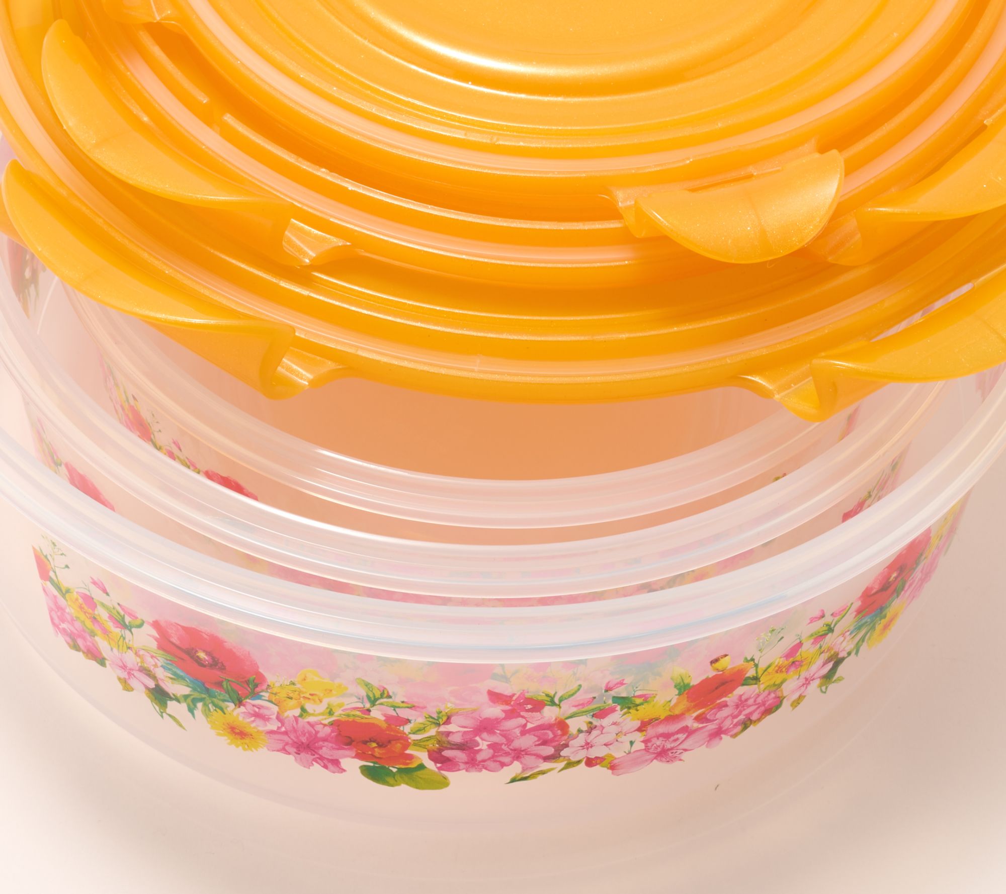 Organize snacks, dry goods, or baking supplies with this three-piece set of nestable floral canisters. Each canister features a vibrant lid and clear printed body, making it easy to spot ingredients and add a cheerful touch to your kitchen shelf or pantry. Multiple sizes offer flexible storage options to keep your essentials accessible and beautifully displayed. From LocknLock.
