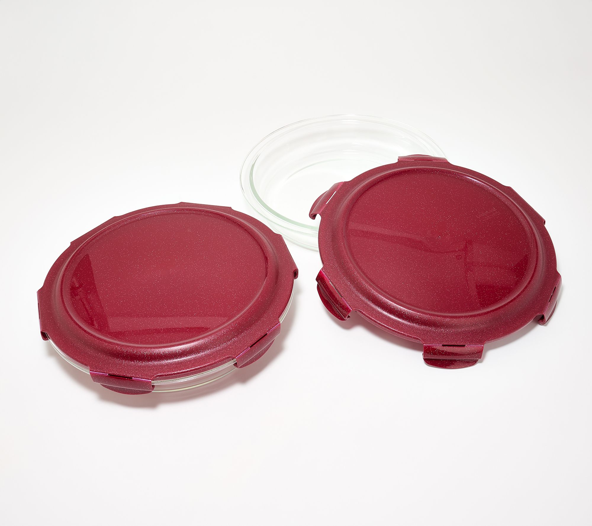 Prep beautiful homemade pies and transport them with confidence using this set of two glass pie baking dishes. Each dish comes with a colorful lid, making it easy to store leftovers or carry your creations to gatherings. Share classic flavors and fresh bakes straight from the oven or fridge. From LocknLock.