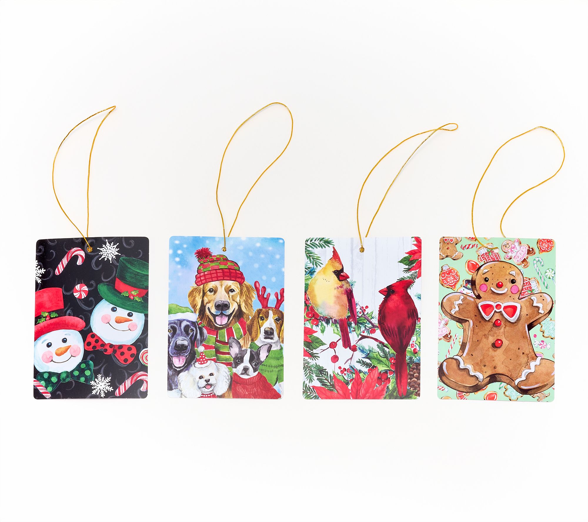 Includes four 5-cup bowls with lids, four printed holiday-themed bags, and four tags