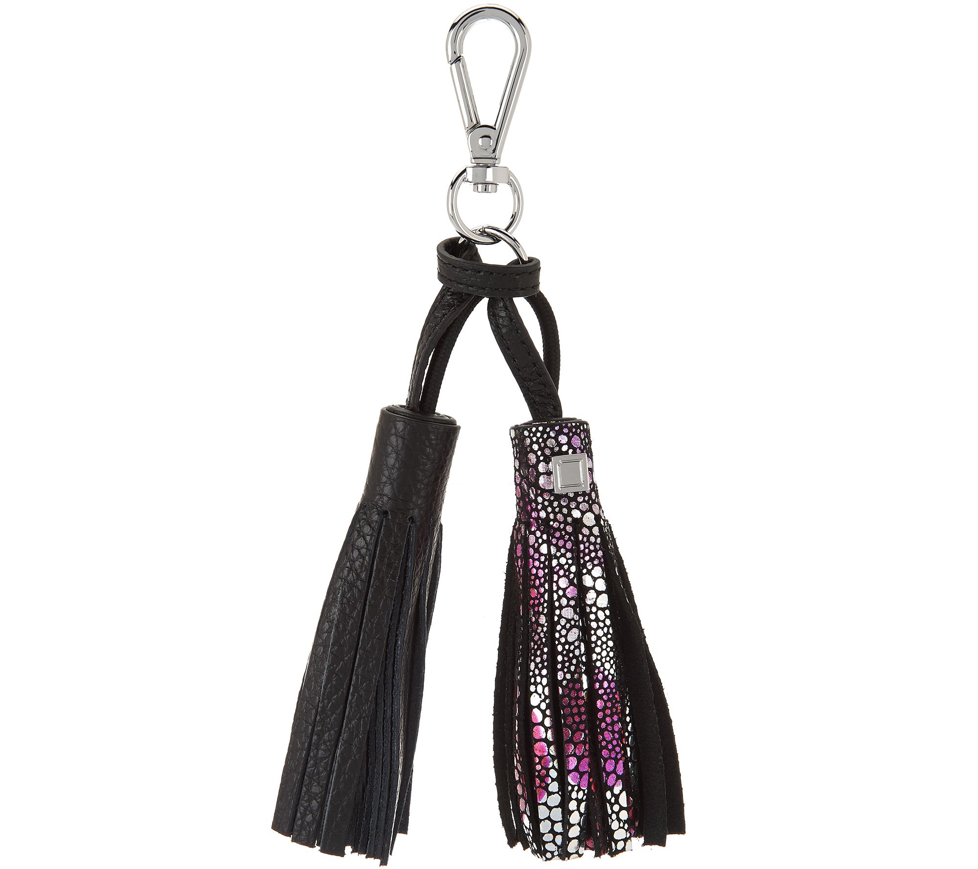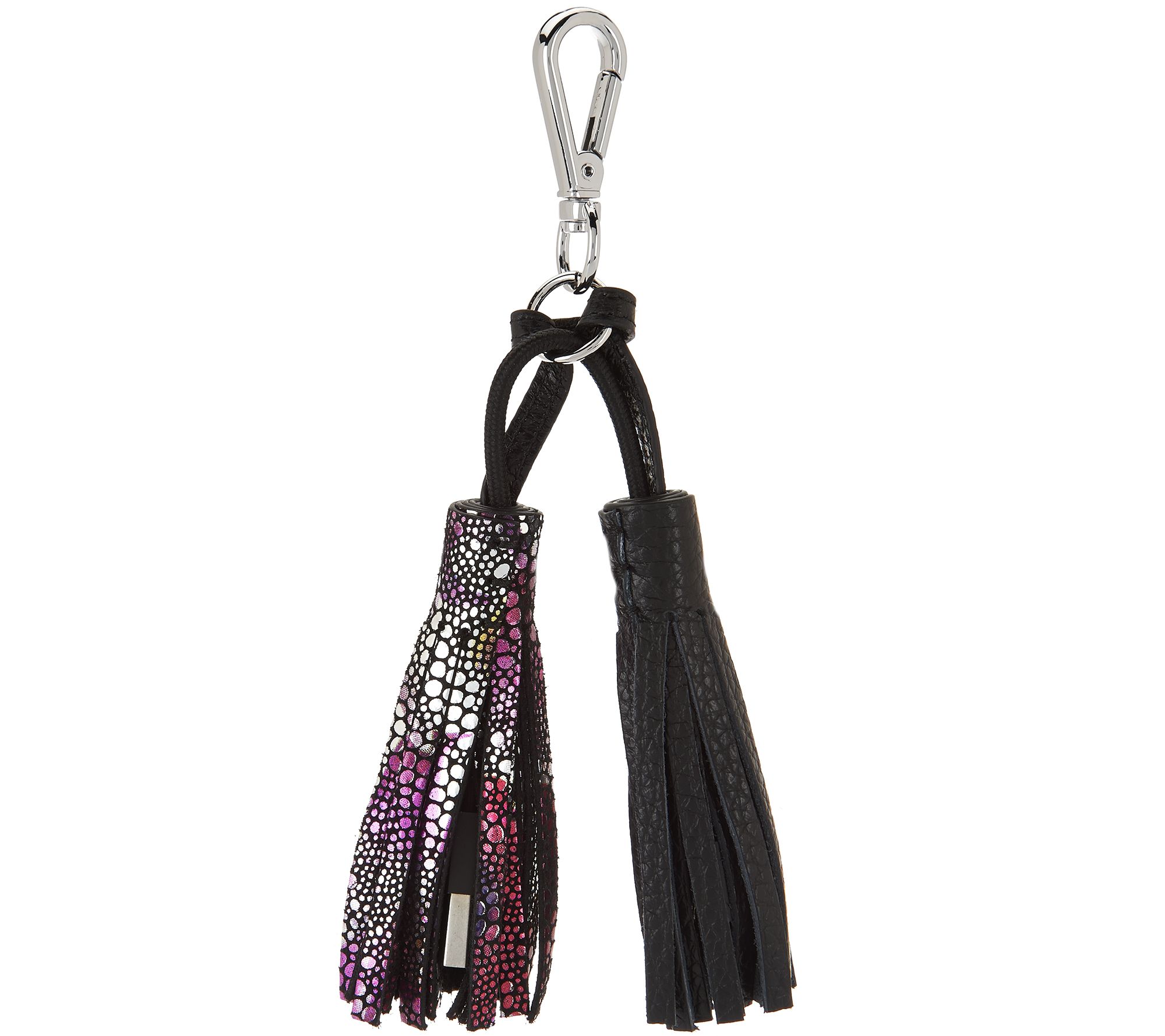 Don't leave home without these LODIS power link tassels. One tassel includes a USB port, and the other a charger that's compatible with Apple products. From LODIS.