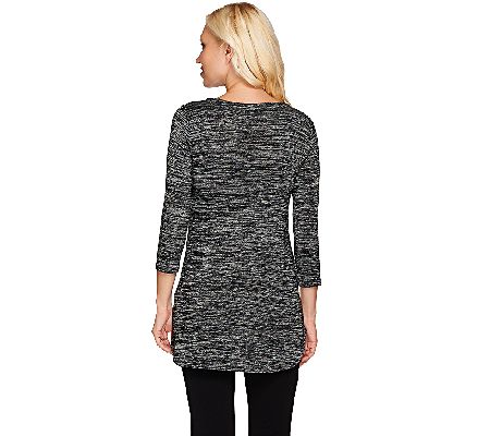 LOGO by Lori Goldstein 3/4 Sleeve Space Dye Top with Hi-Low Hem