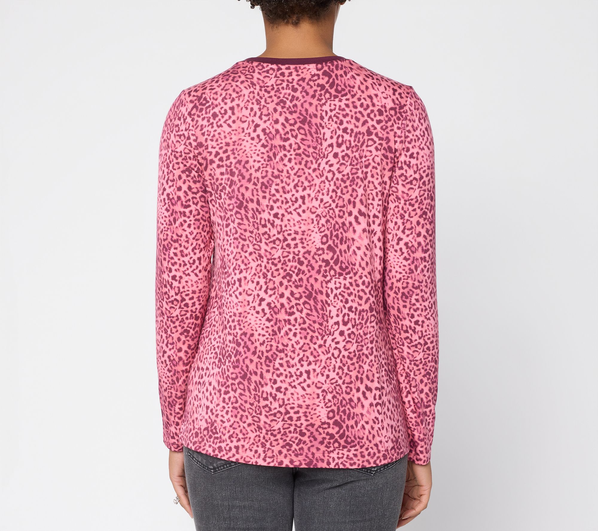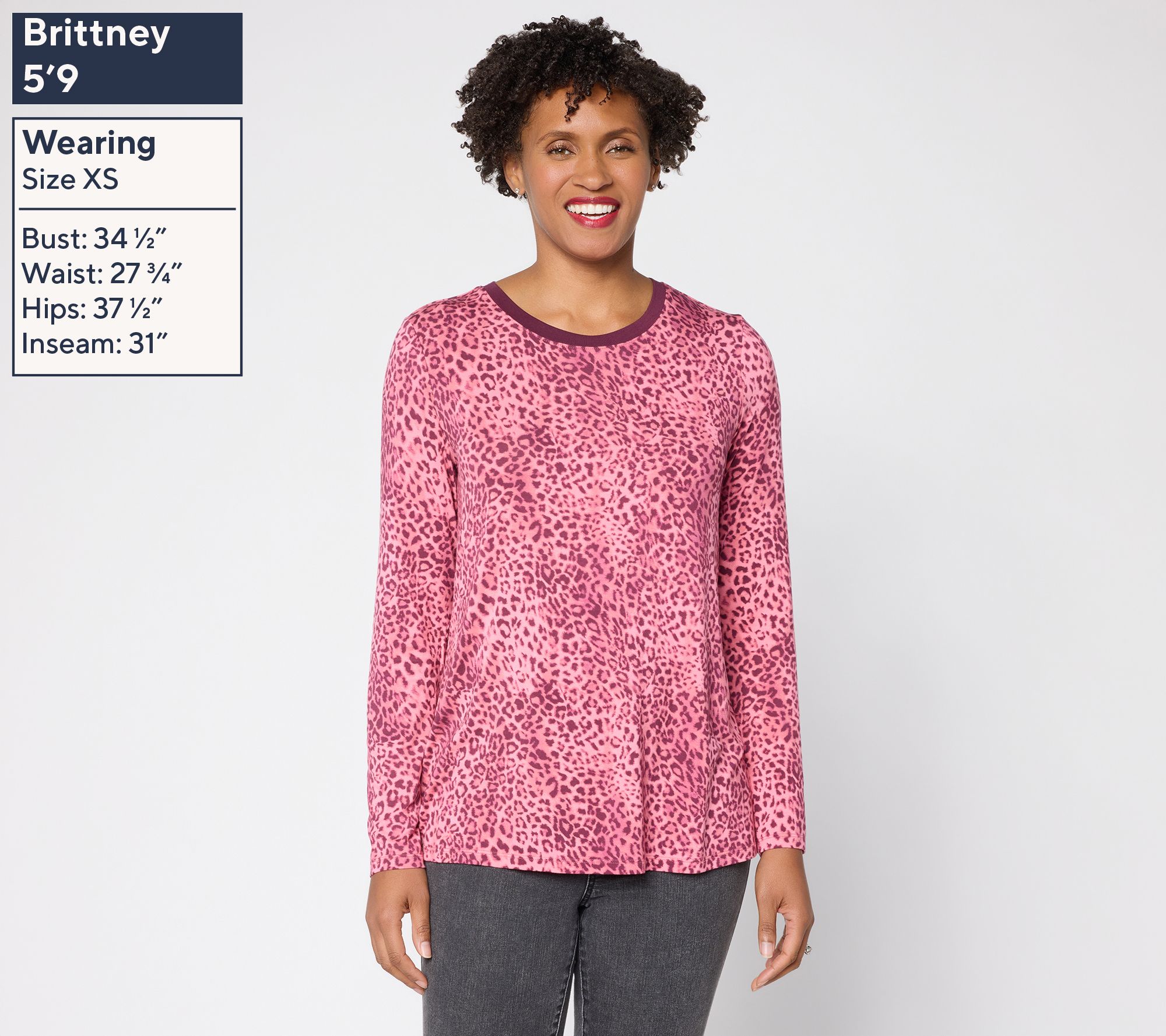 Roam stylishly. A fresh animal print brings a lively vibe to this long-sleeve tee, versatile enough for layering under jackets on brisk days or wearing solo for afternoons on the go. From LOGO by Lori Goldstein®.