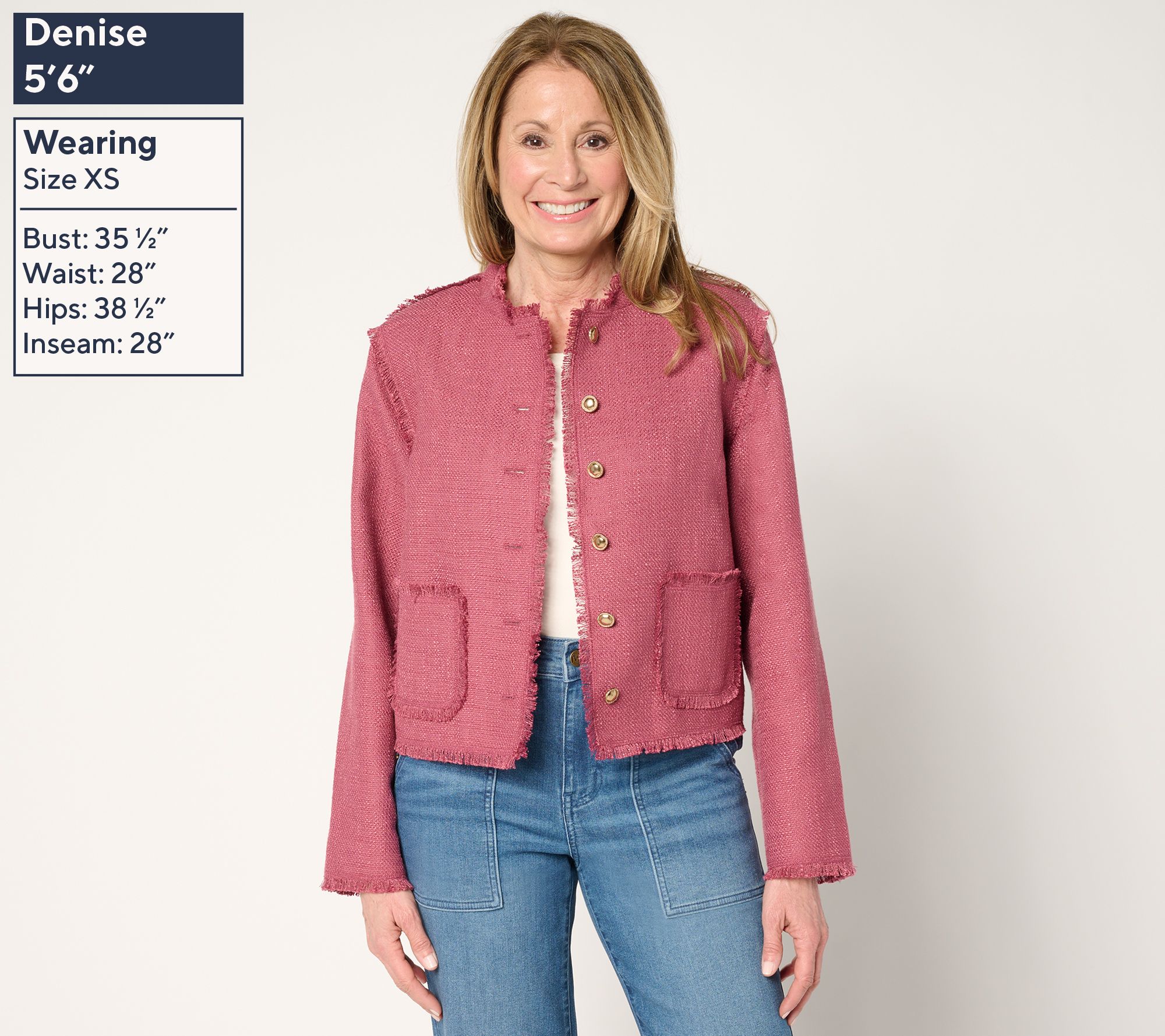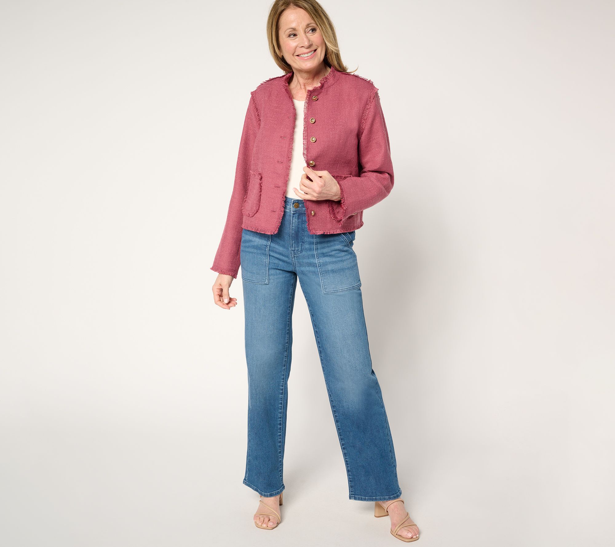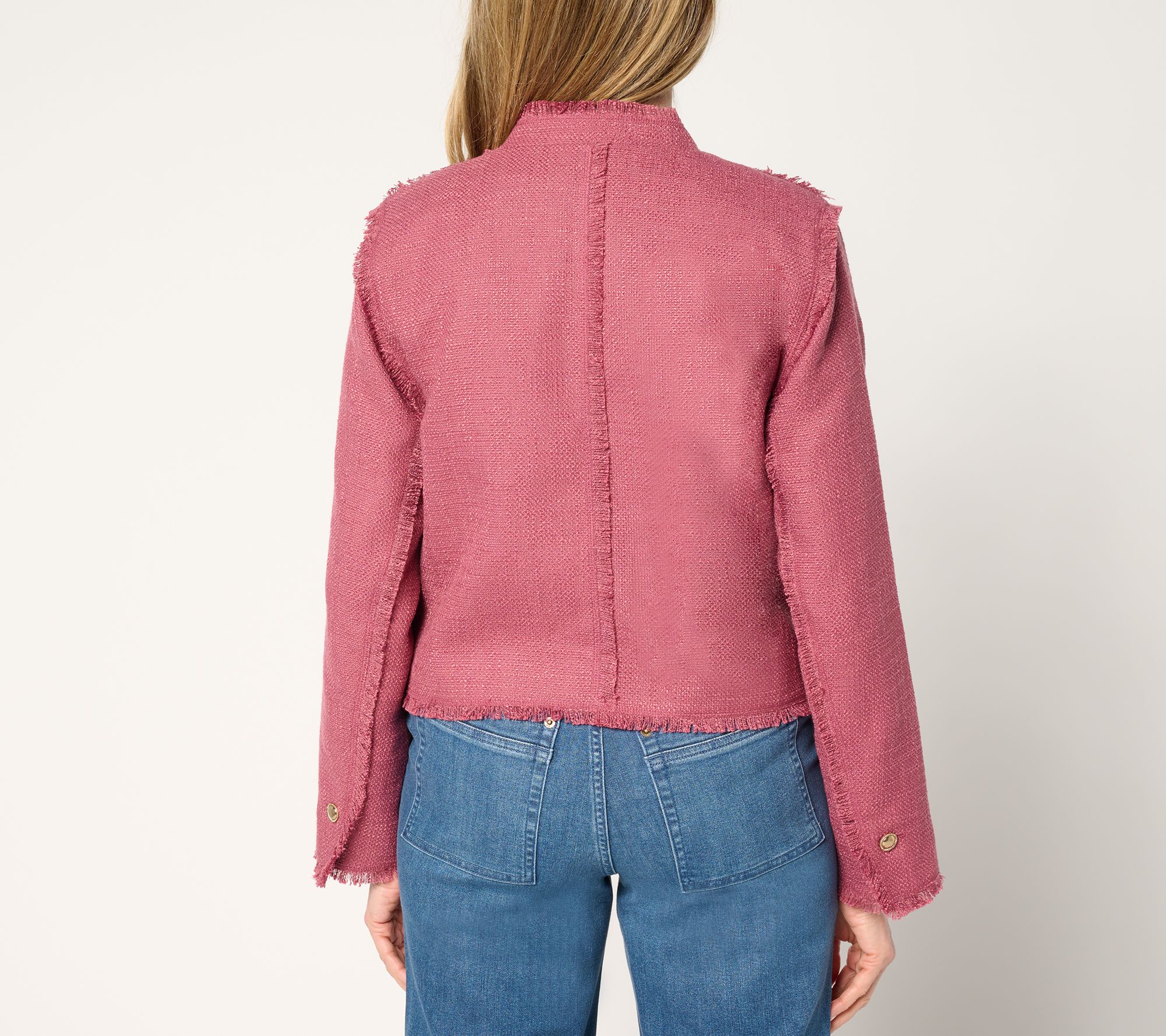 LOGO by Lori Goldstein Button Front Jacket with Fray Detail