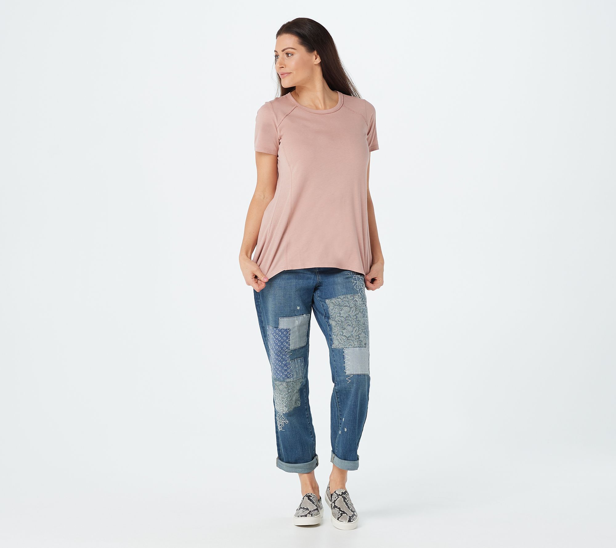 A simple silhouette with ever-so-subtle seam details and rib knit panels, this cotton modal top updates your casual collection with a carefree energy. From LOGO by Lori Goldstein®.