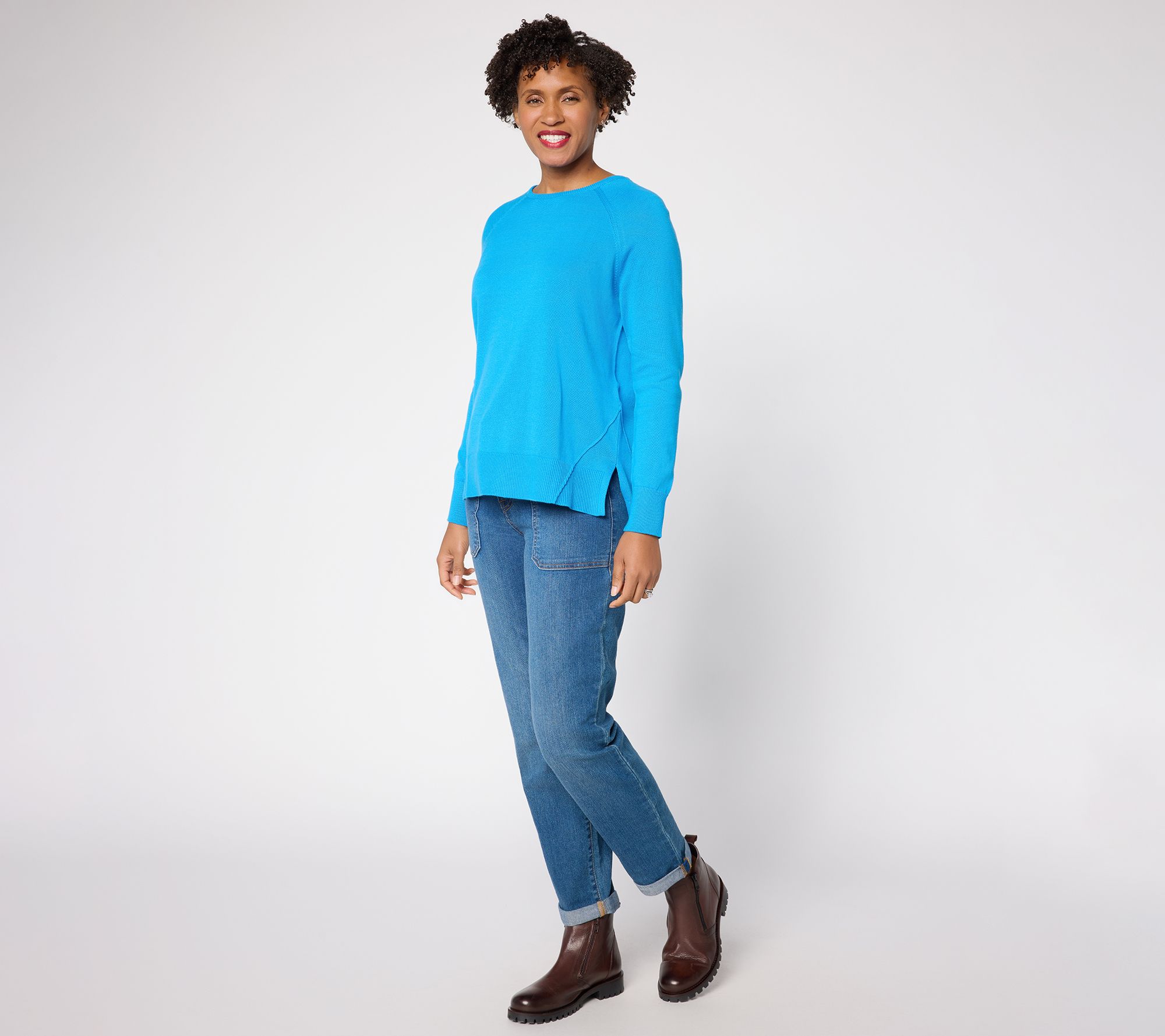 LOGO by Lori Goldstein Cotton Raglan Sleeve Sweater