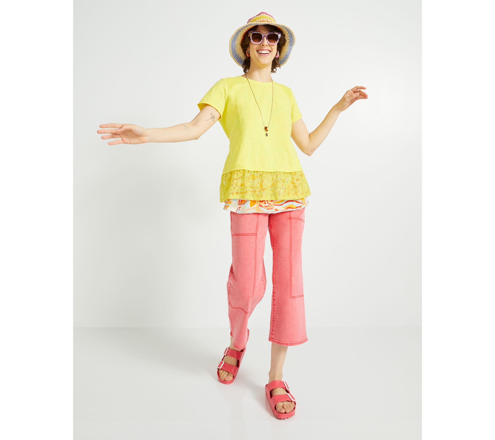 LOGO by Lori Goldstein Cotton Slub Top with Lace Hem