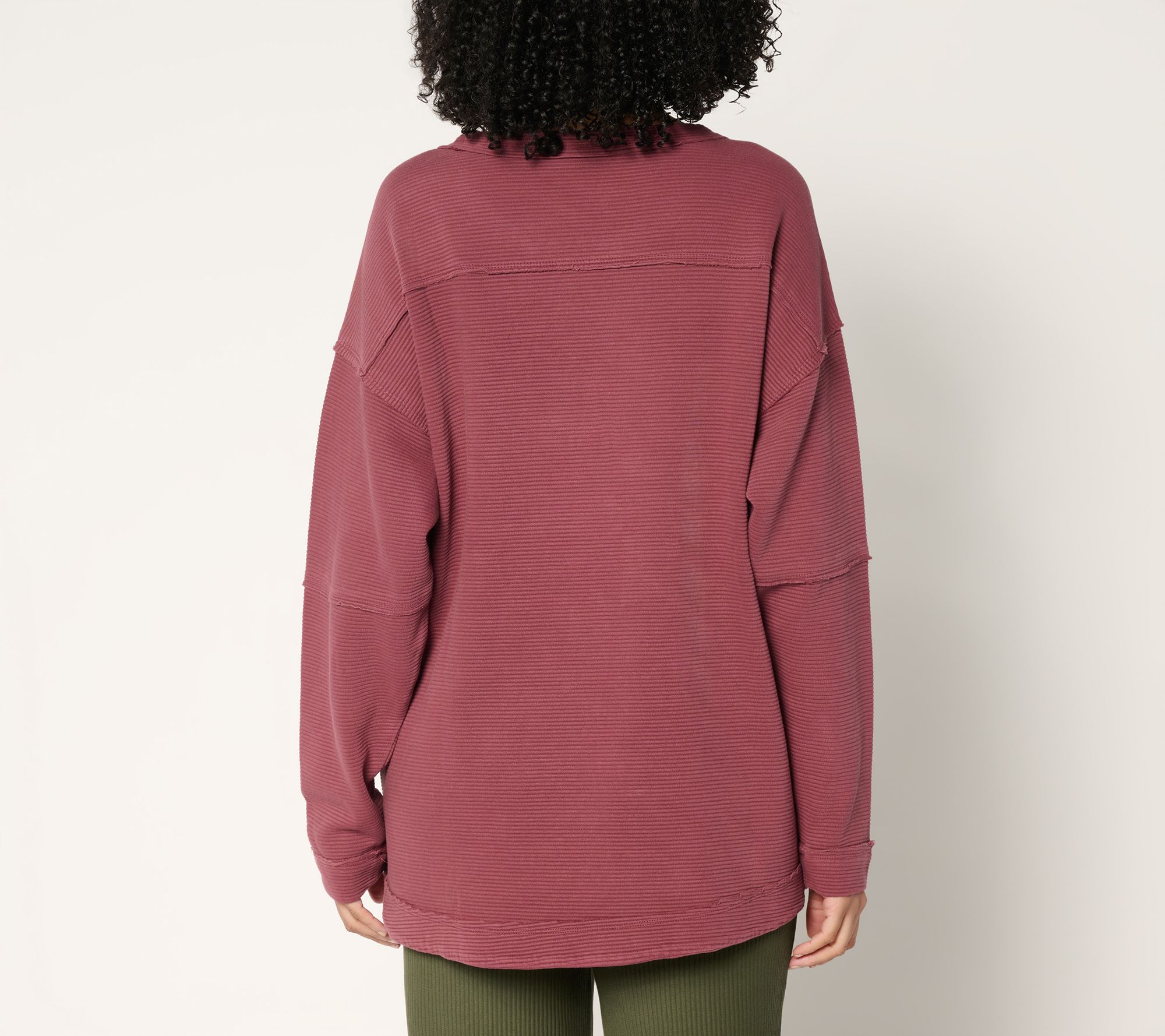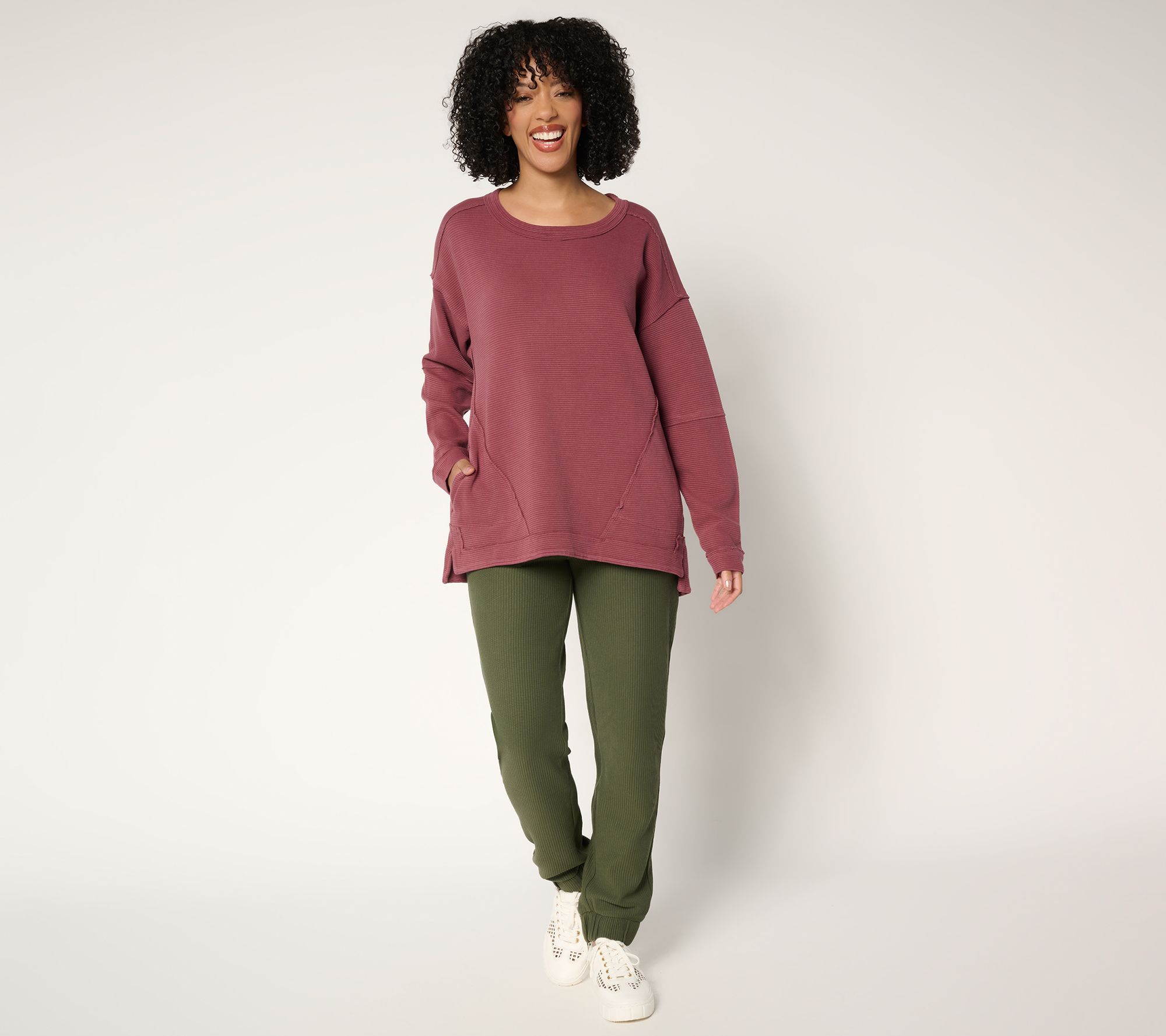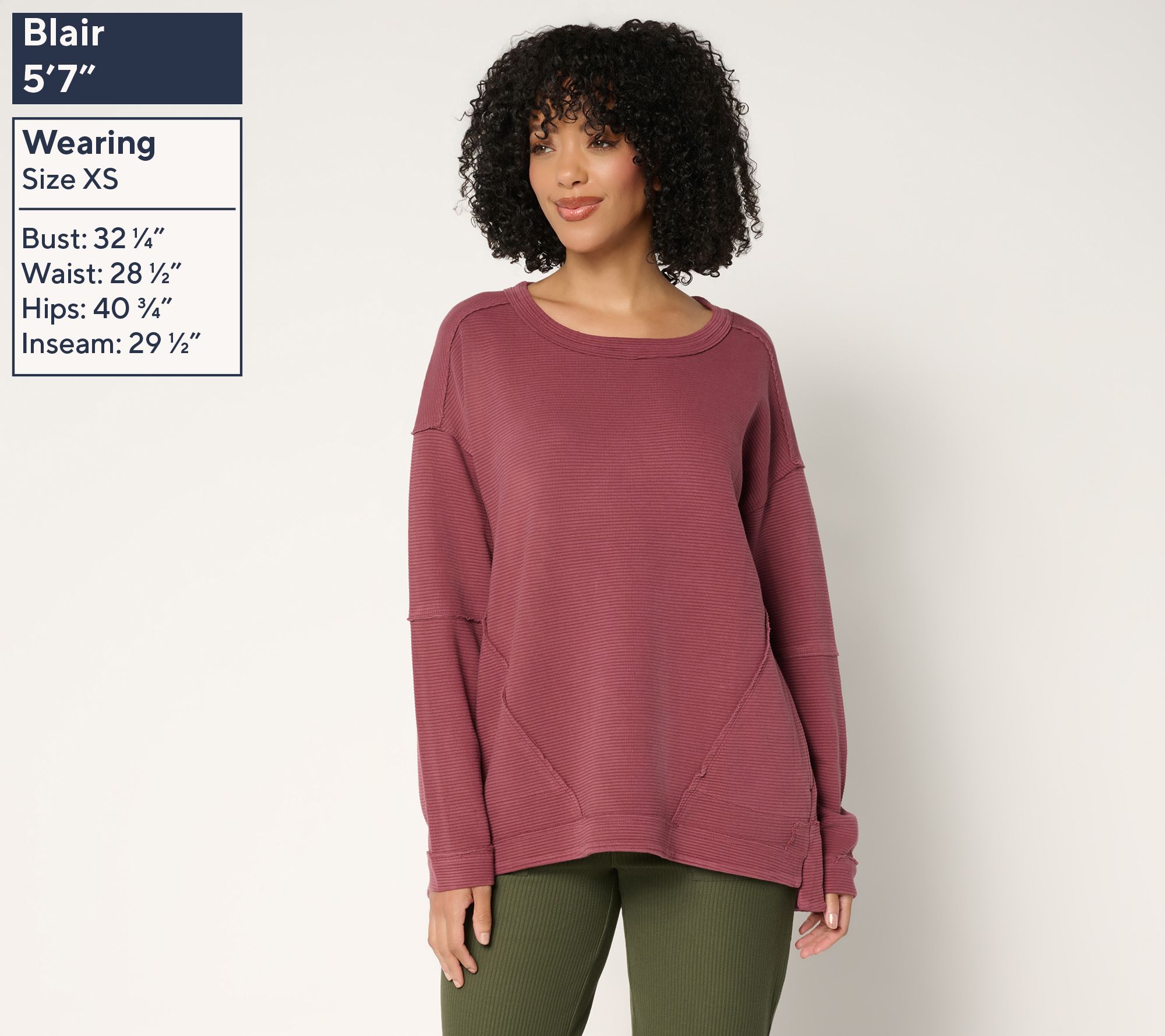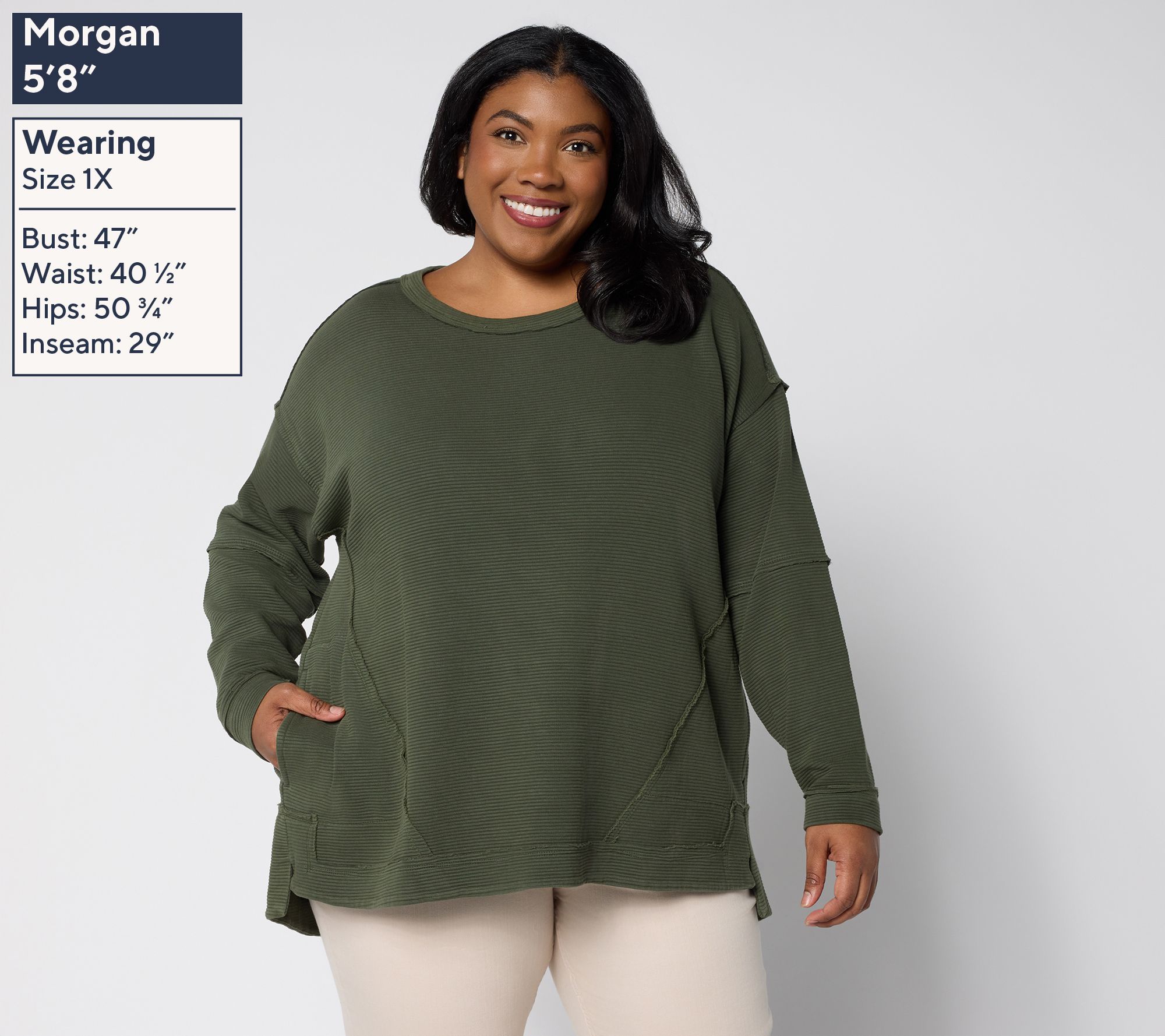 Ease into laid-back days or on-the-go outings with this ottoman knit top. Its relaxed fit and drop-shoulder silhouette bring effortless comfort and style, while seam details make it a standout solo or layered with your favorite jacket. From LOGO by Lori Goldstein®.