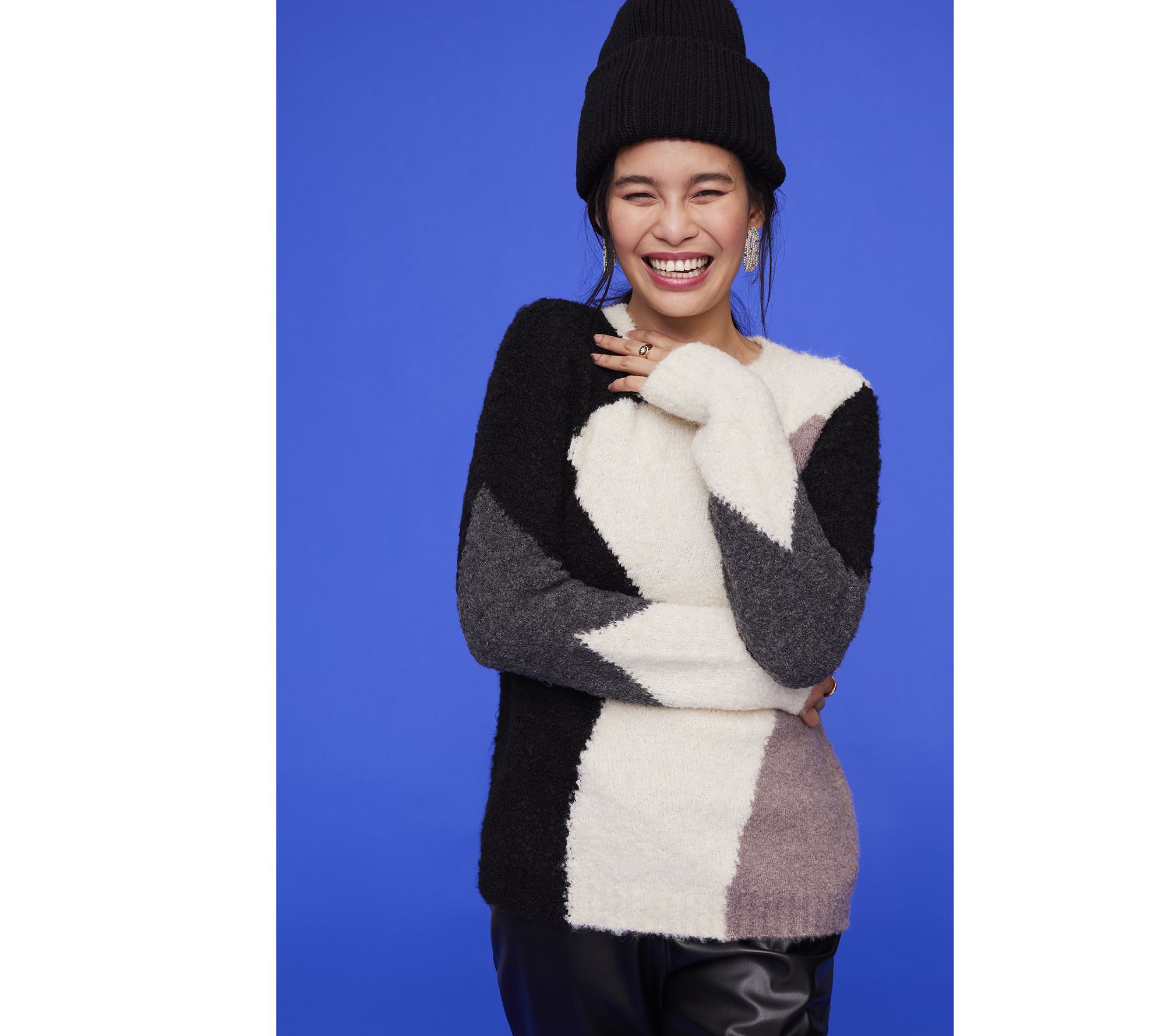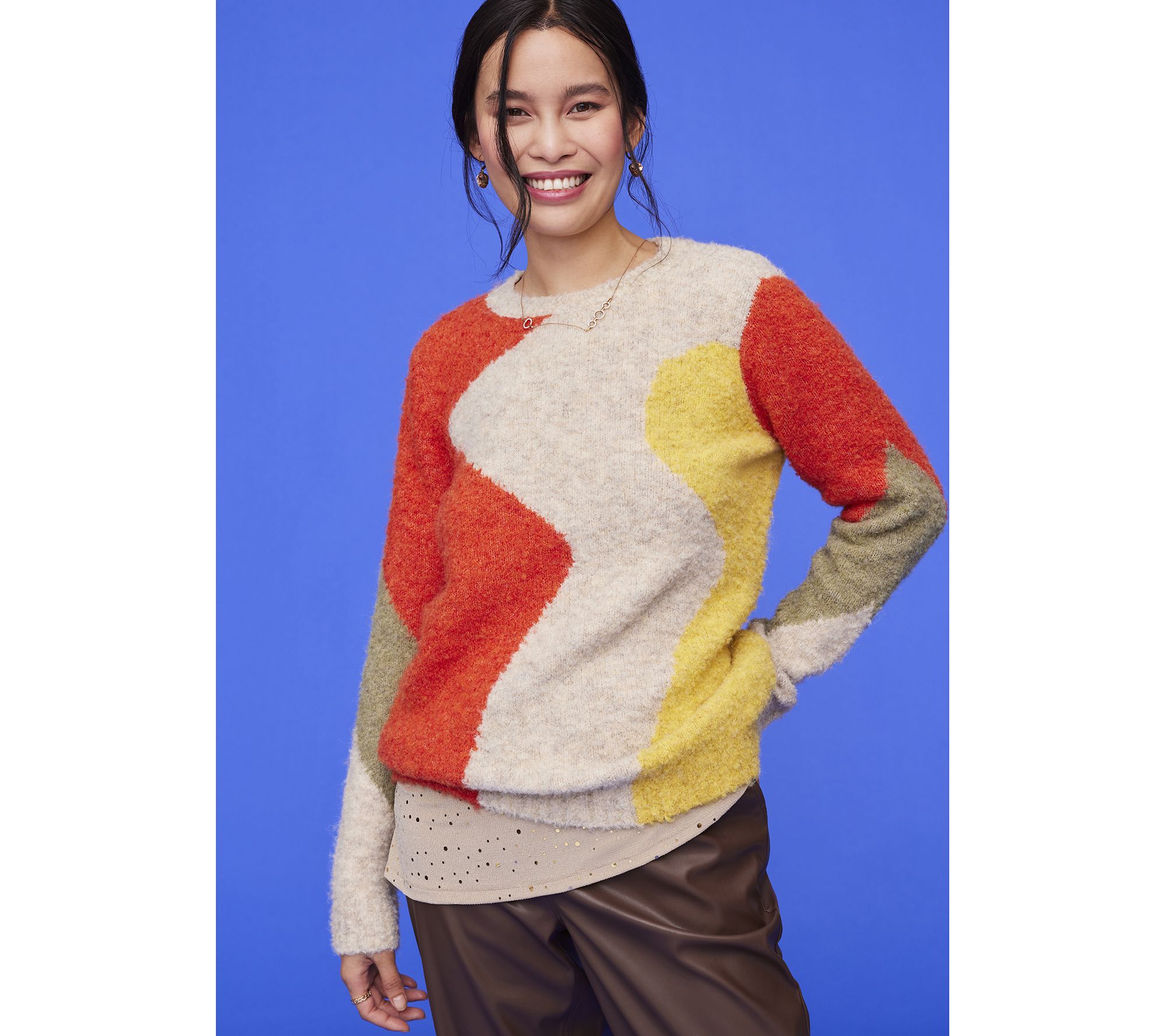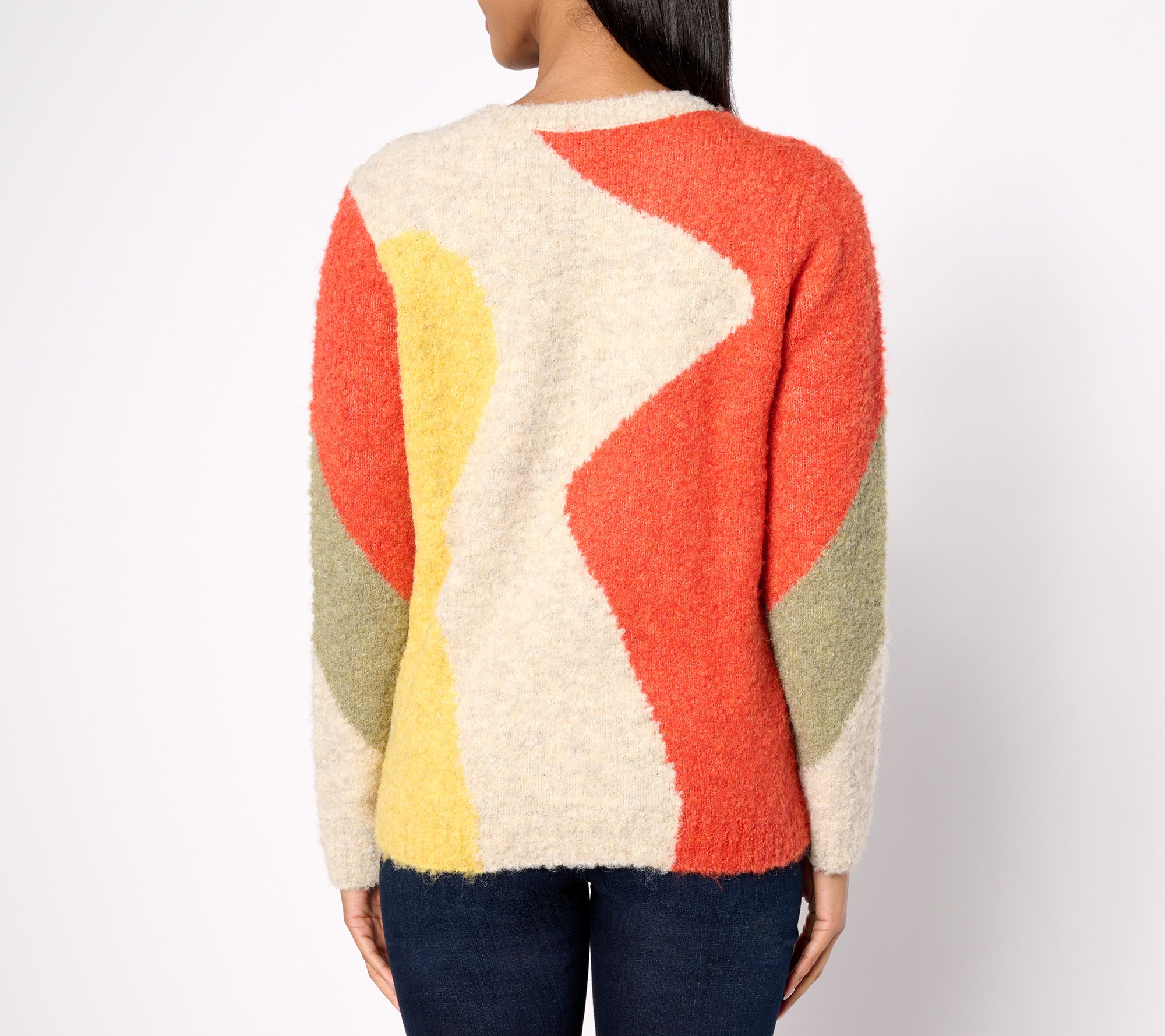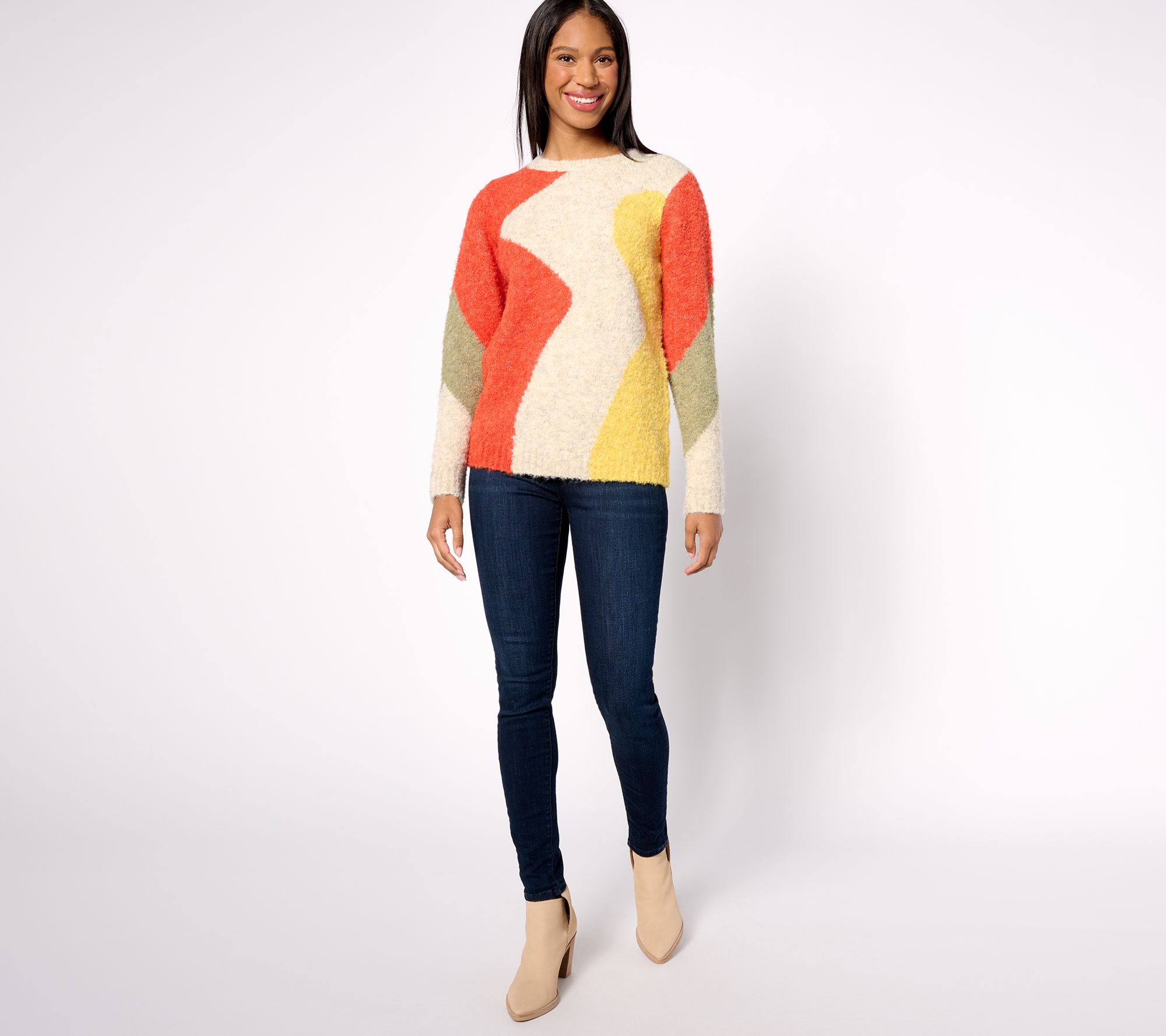 Wake up, crew! Your winter style won't go into hibernation in this splashy sweater. From LOGO by Lori Goldstein®.
