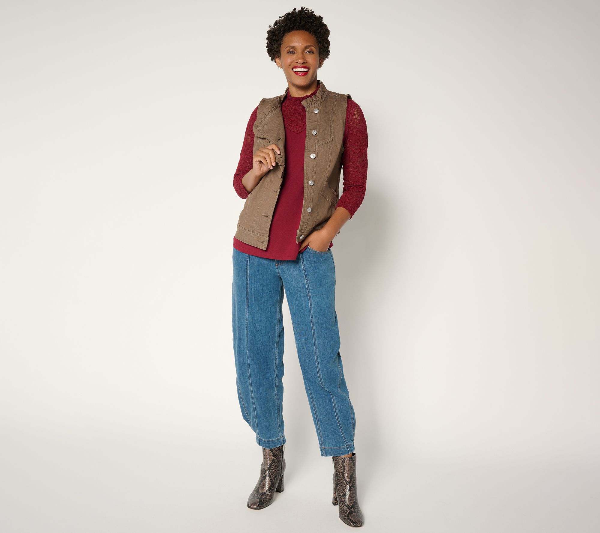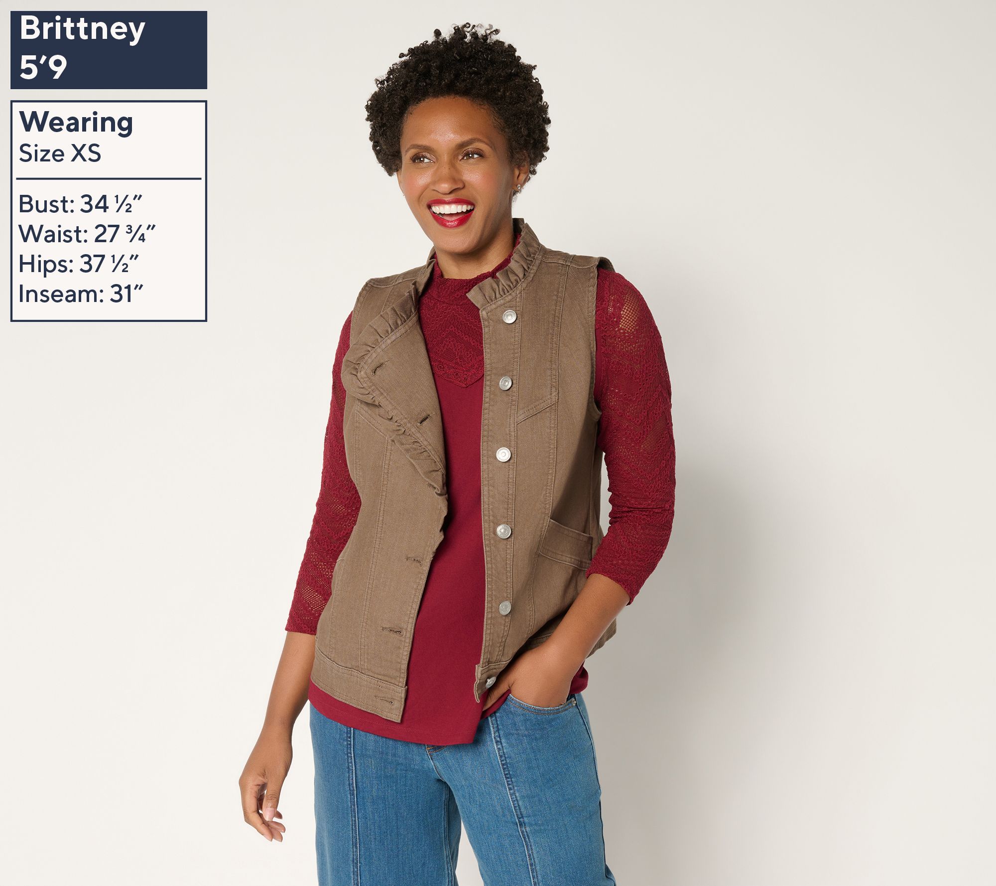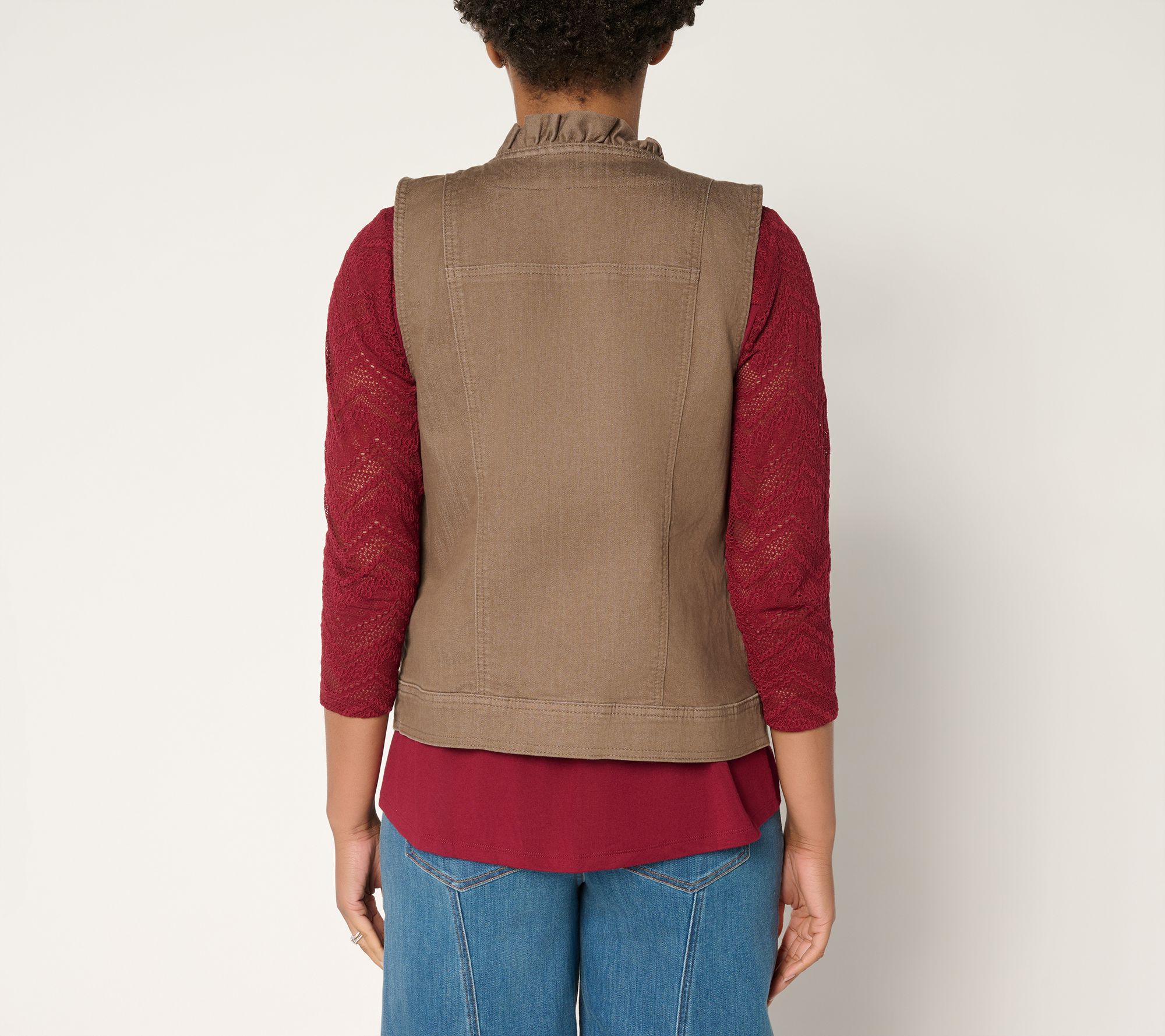 LOGO by Lori Goldstein Denim Ruffle Vest