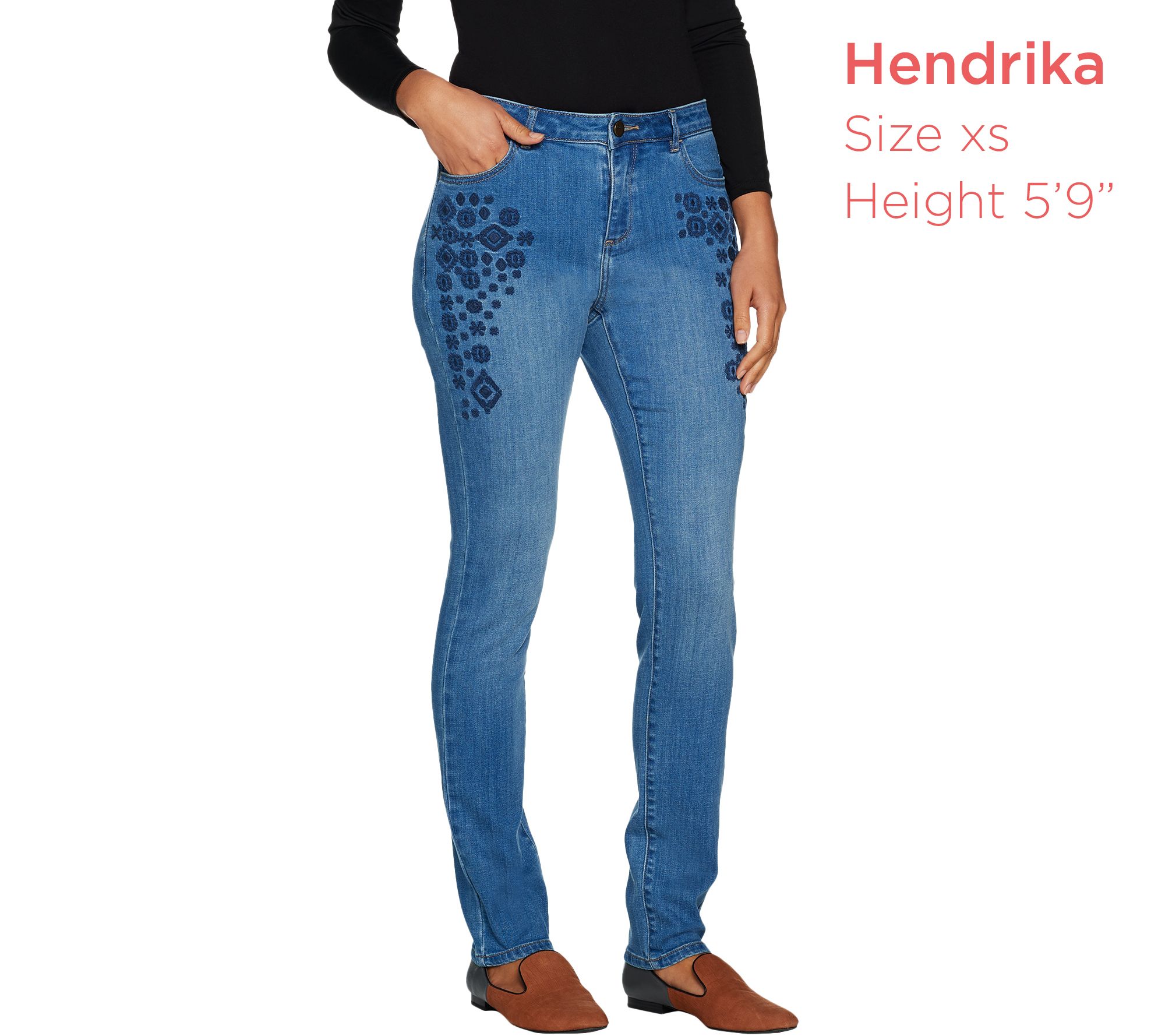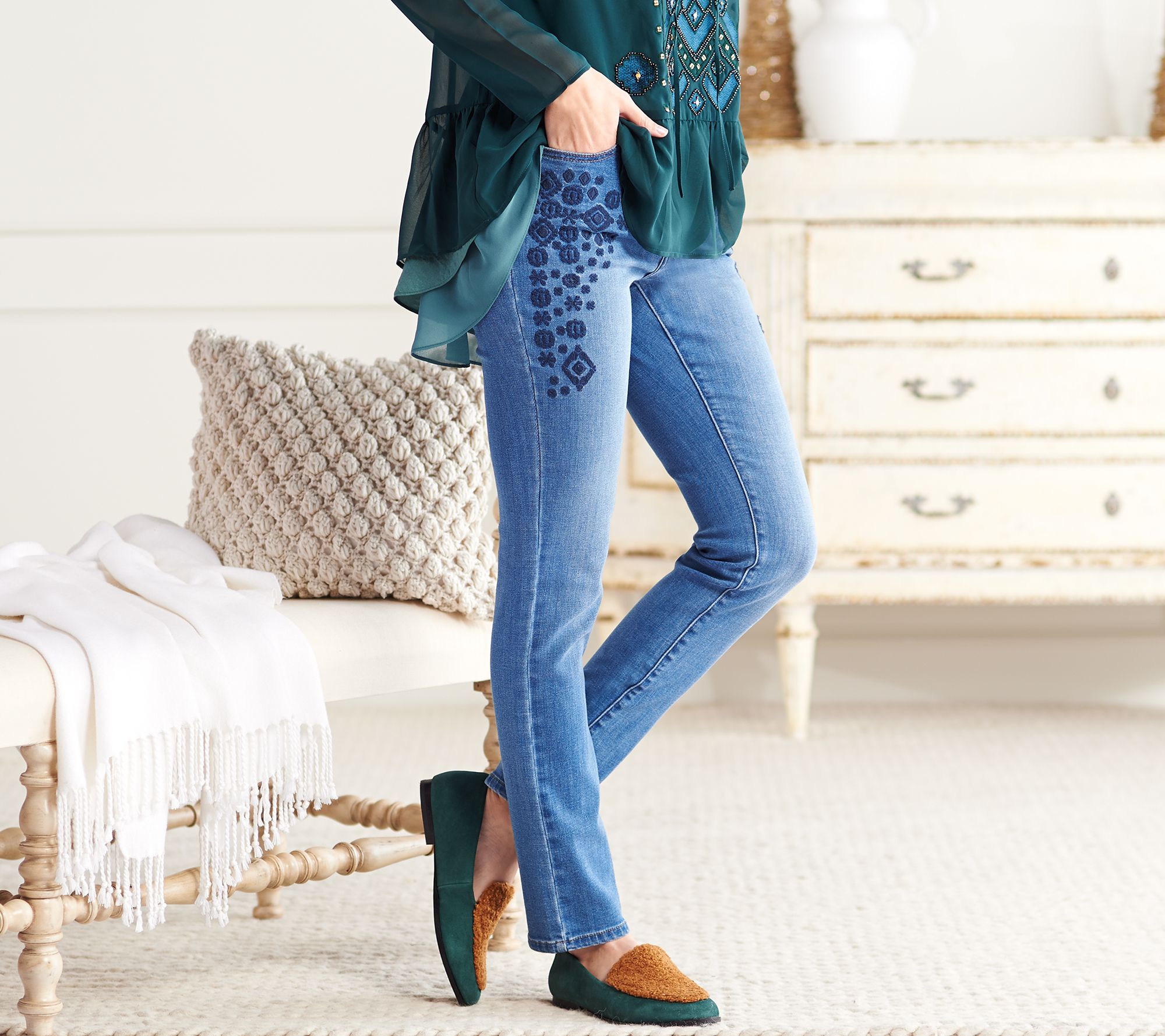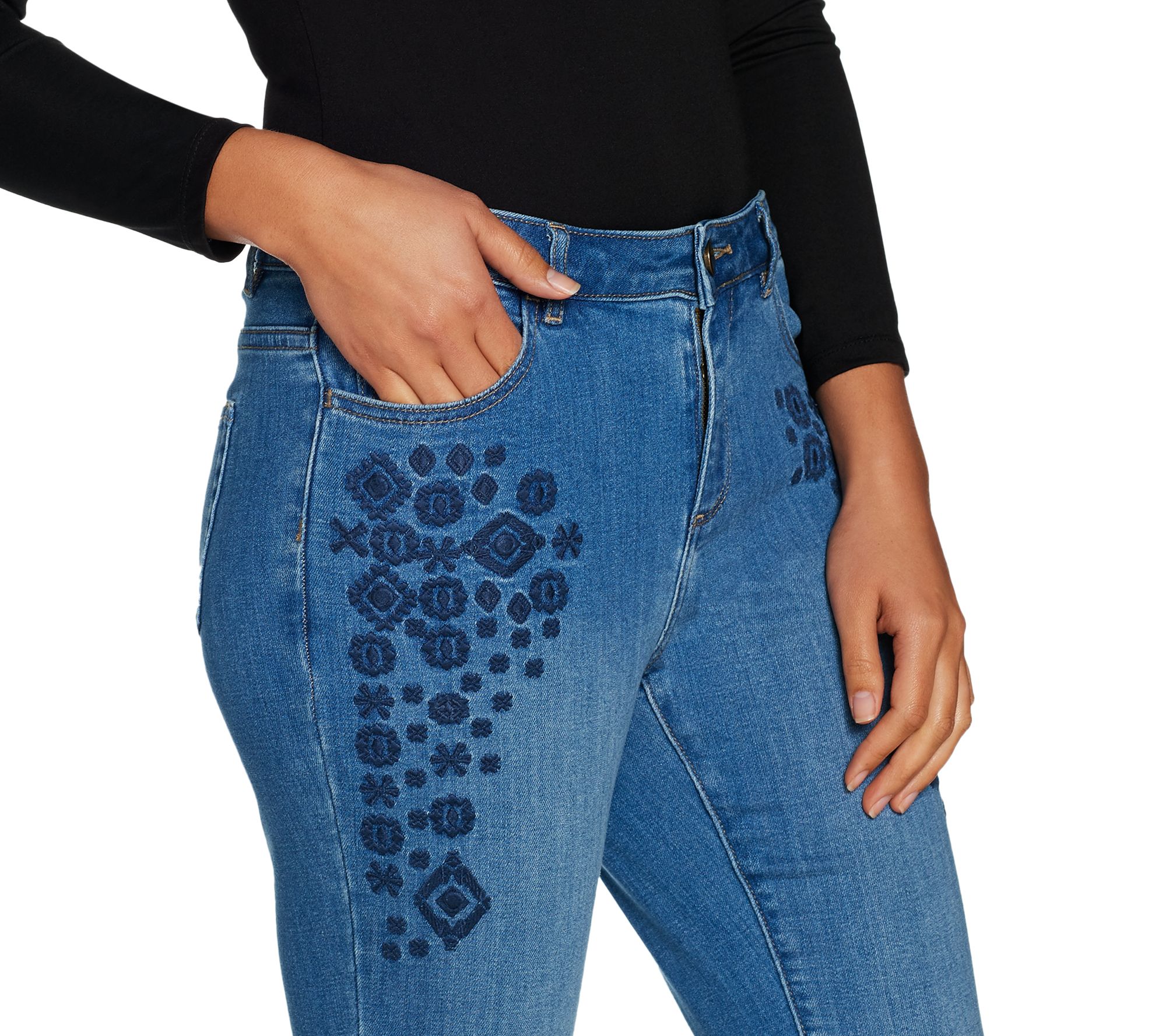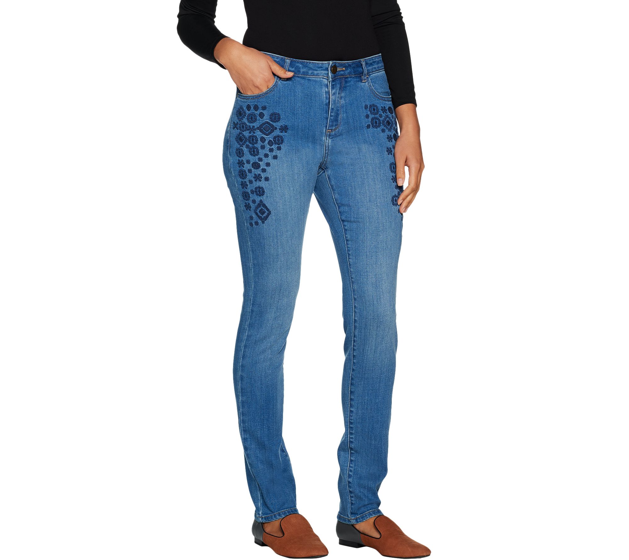 LOGO by Lori Goldstein Embroidered 5-Pocket Slim Leg Jean