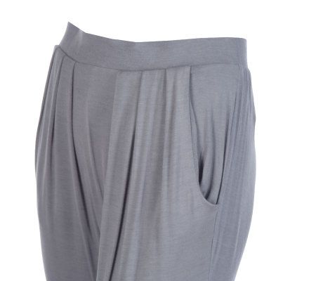 You've seen them on Hollywood starlets, along fashion runways, and in style magazines--now's the time to give harem pants a try for yourself. And, this knit pair is the perfect place to start. Pleating detail along the elastic waistline creates the flowing look, while stretch in the fabric ensures a comfortable fit. From LOGO by Lori Goldstein.