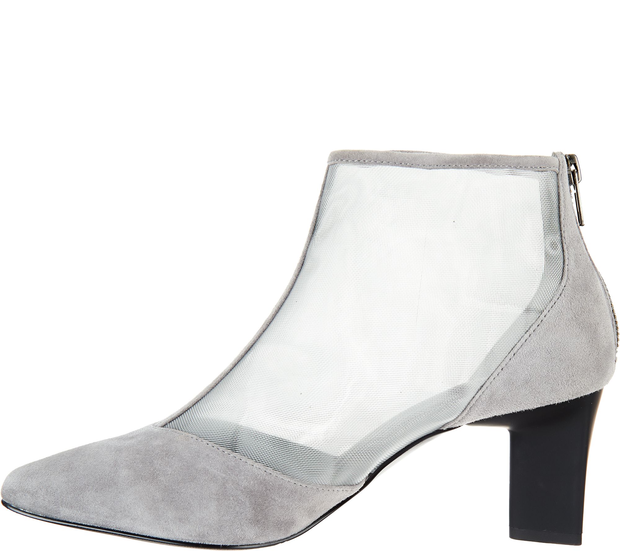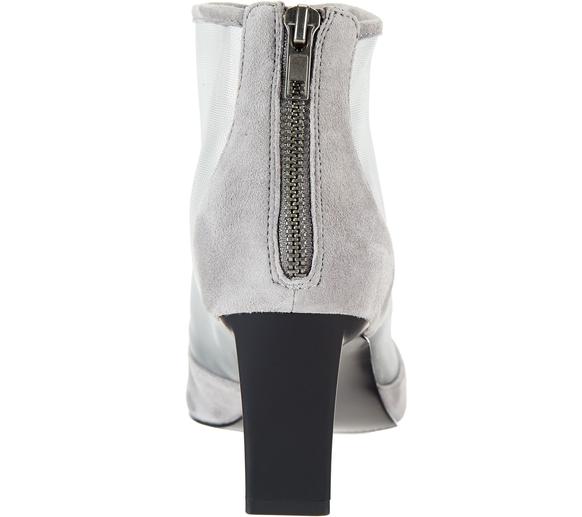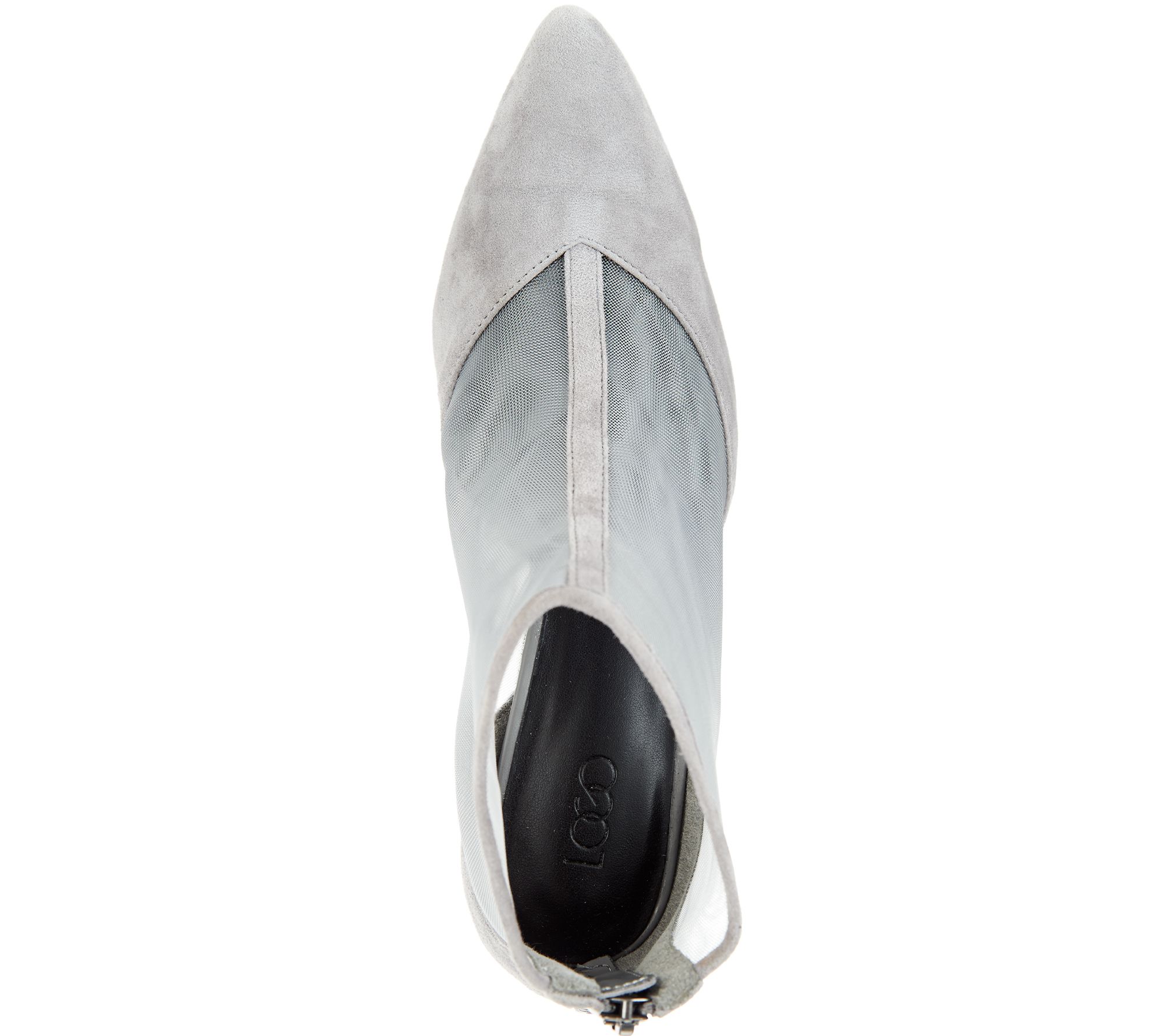 Break free from bulky boots with this breezy style from LOGO by Lori Goldstein. The runway-ready ankle boot gets its lighter look from a mesh design with leather seam details. A triangle block heel puts a little lift in your step. From LOGO by Lori Goldstein(R).