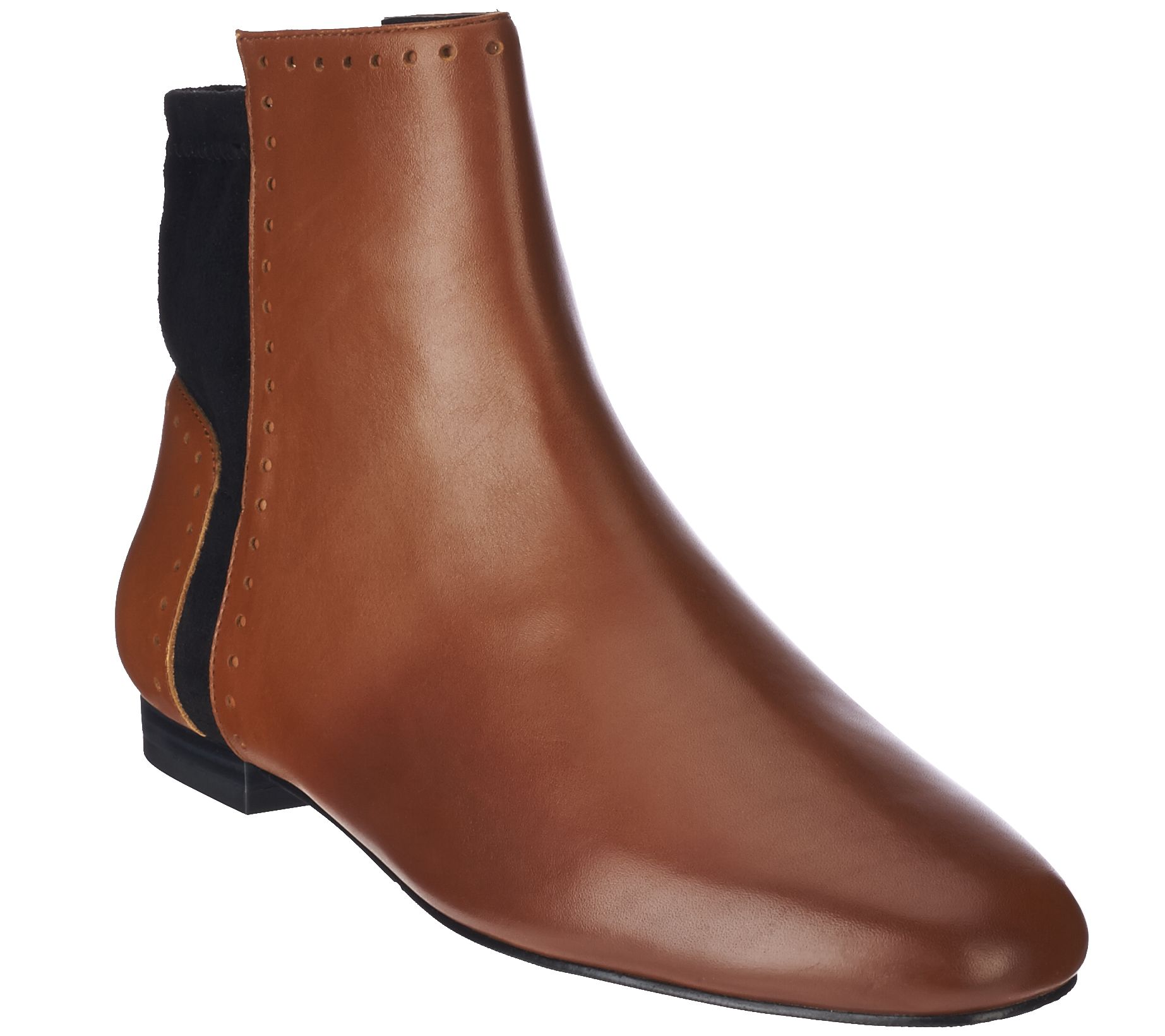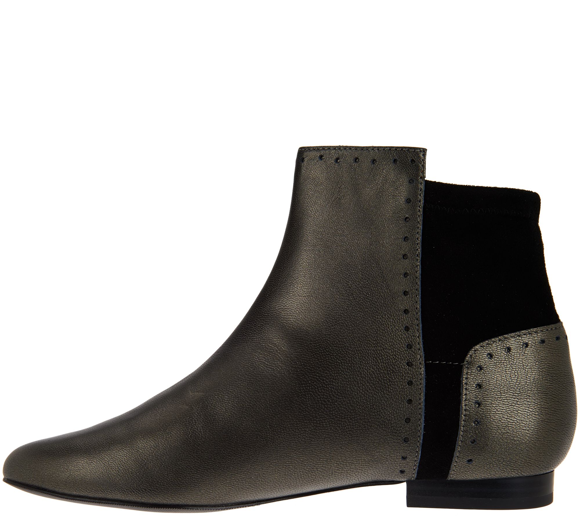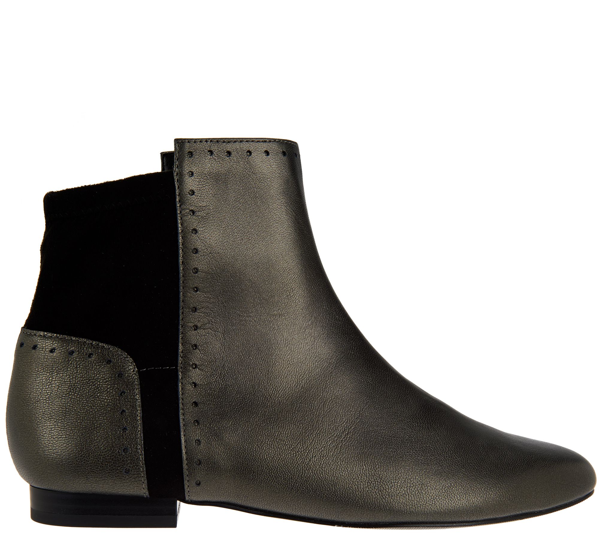 Master the art of mixed media in these boots from LOGO by Lori Goldstein that perfectly combine the dual textures of pebble leather and faux suede. The low shaft makes them ideal to slip on with everything from leggings to tights to your favorite jeans and the cutout circle detail adds just enough edge to the everyday style. From LOGO by Lori Goldstein.