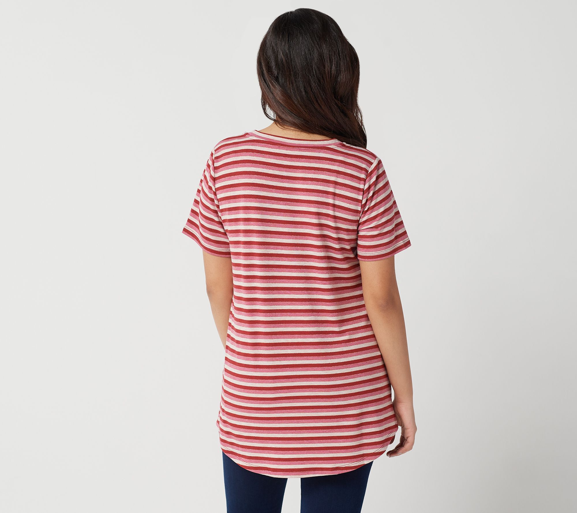 LOGO by Lori Goldstein Metallic Stripe Knit Top with Short Sleeves