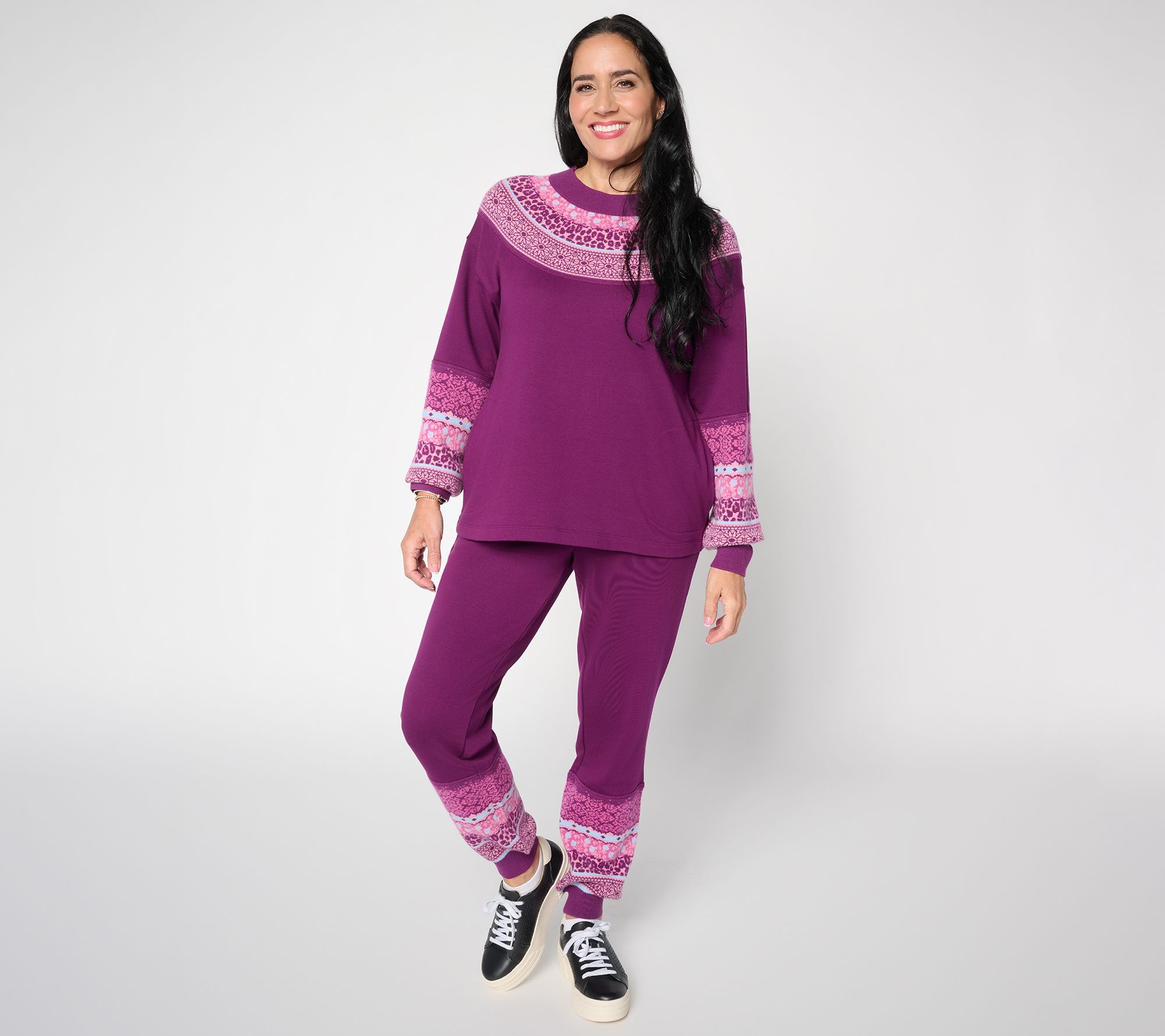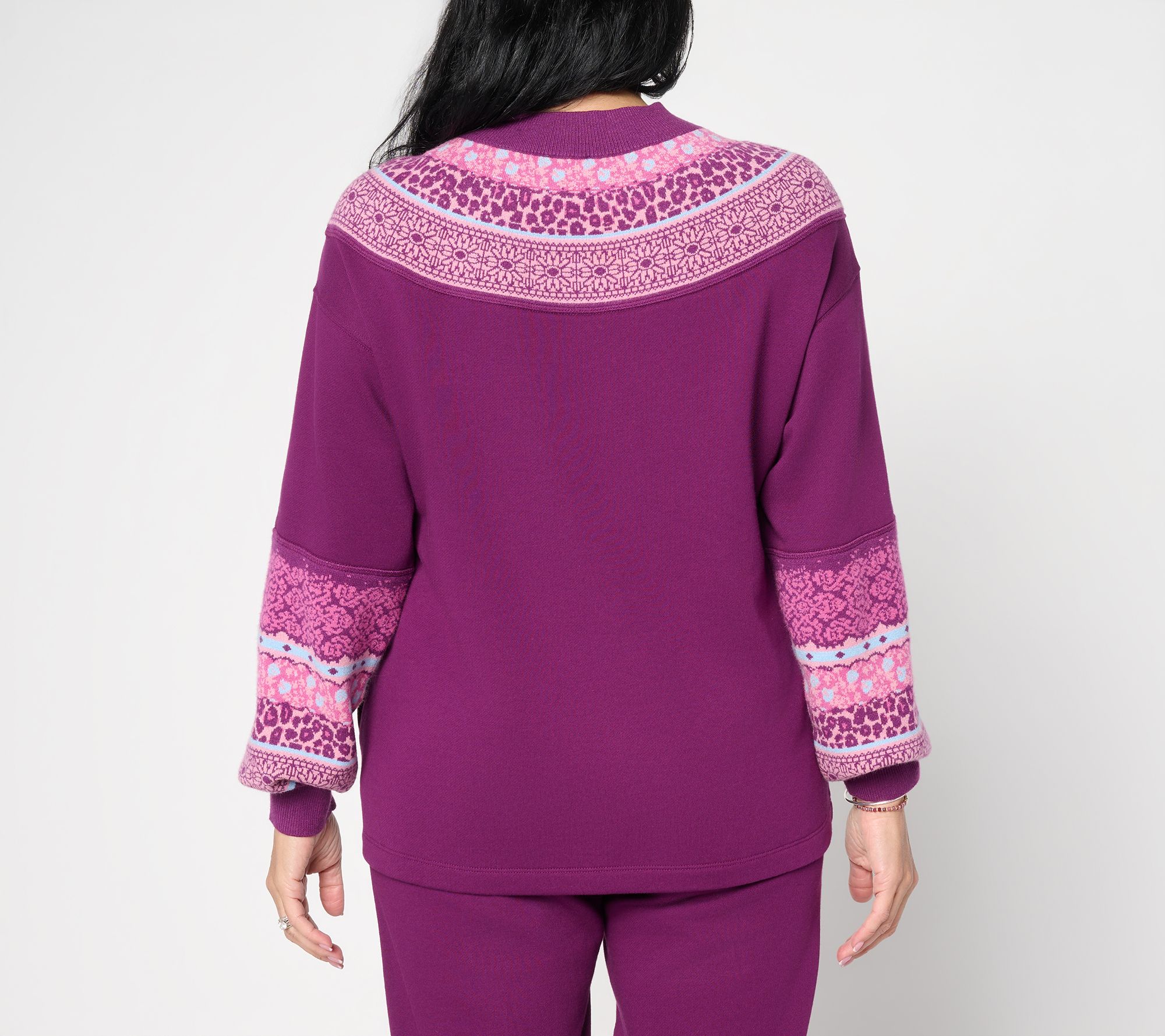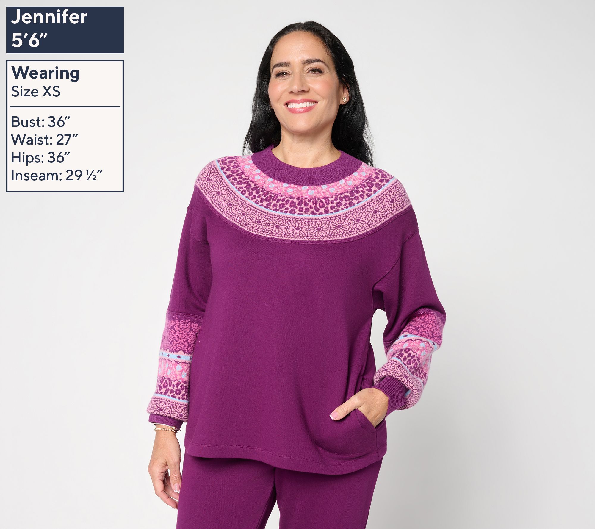 Where comfort meets fashion, this mixed media sweatshirt brings versatile flair to your everyday rotation. Layer it over your favorite tee for chilly strolls or add statement earrings for a cozy dinner in -- every detail, from the soft sweater-knit accents to handy side pockets, was designed with casual-chic days in mind. From LOGO by Lori Goldstein®.