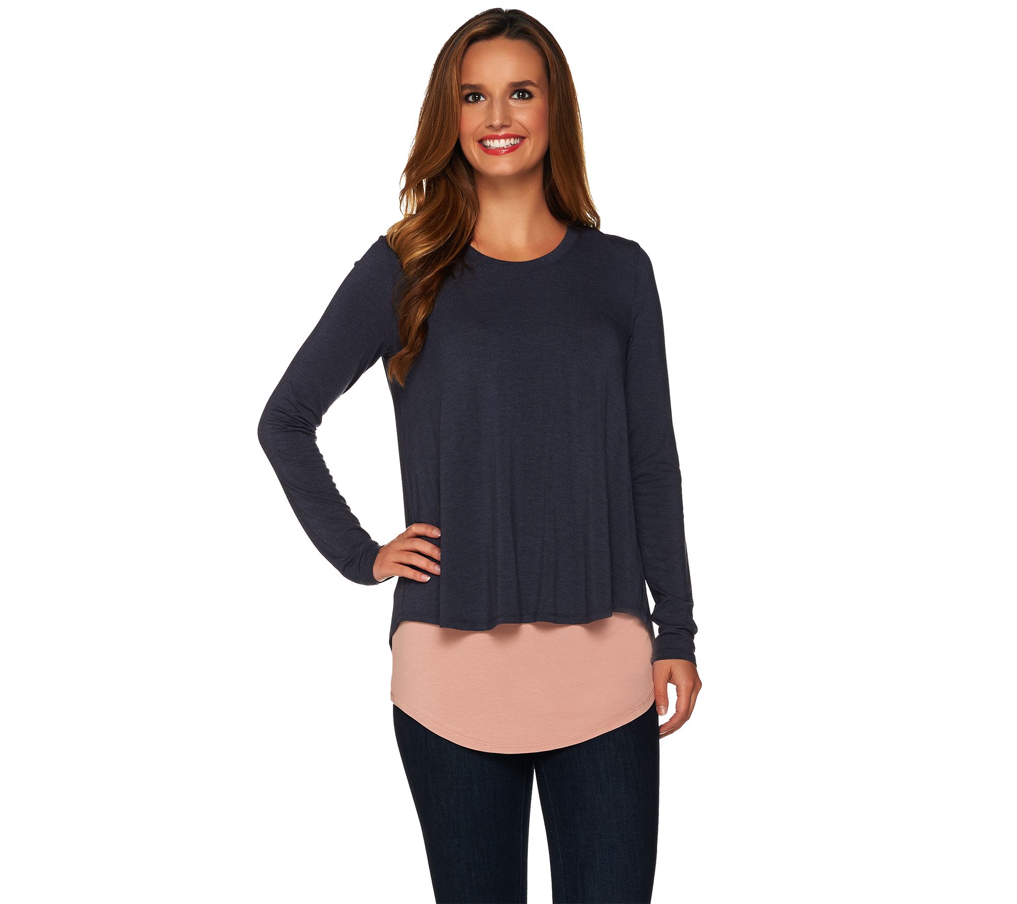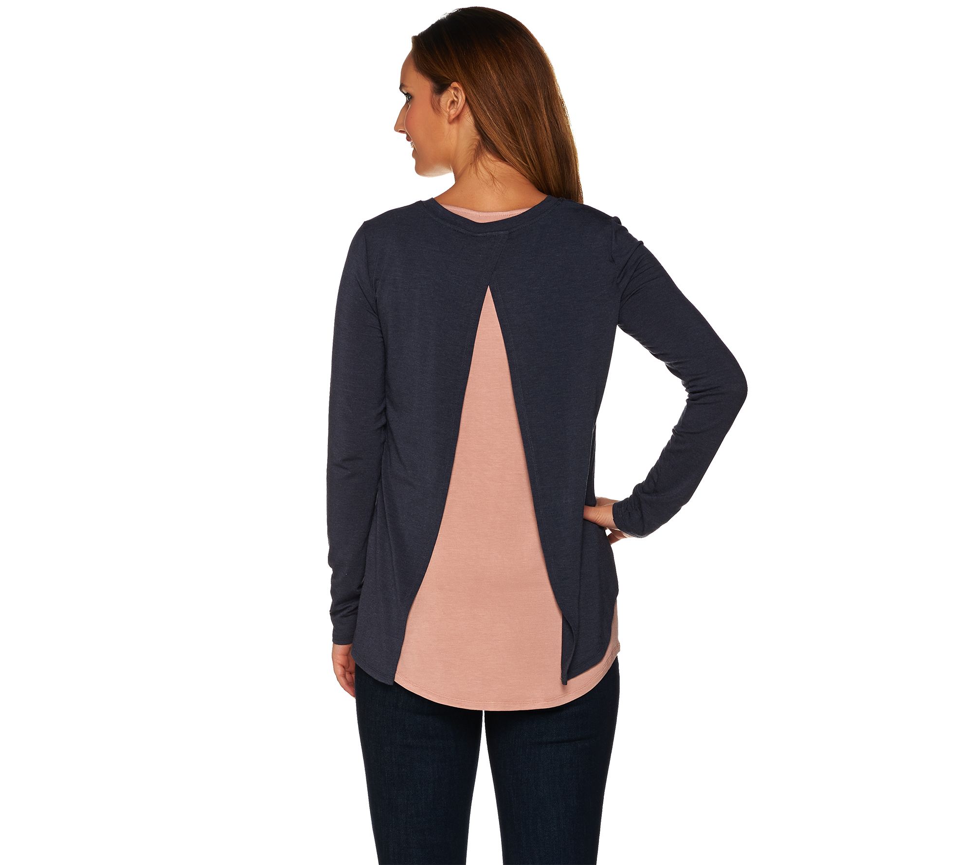 Live it up in layers with this knit top and tank set by Lori Goldstein. This dynamic duo features a split back top with a longer tank peeking out underneath. From LOGO by Lori Goldstein(R).