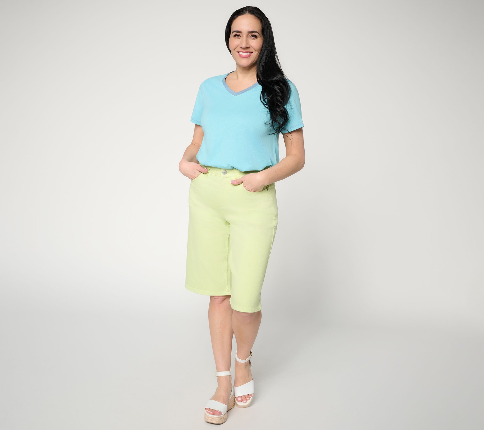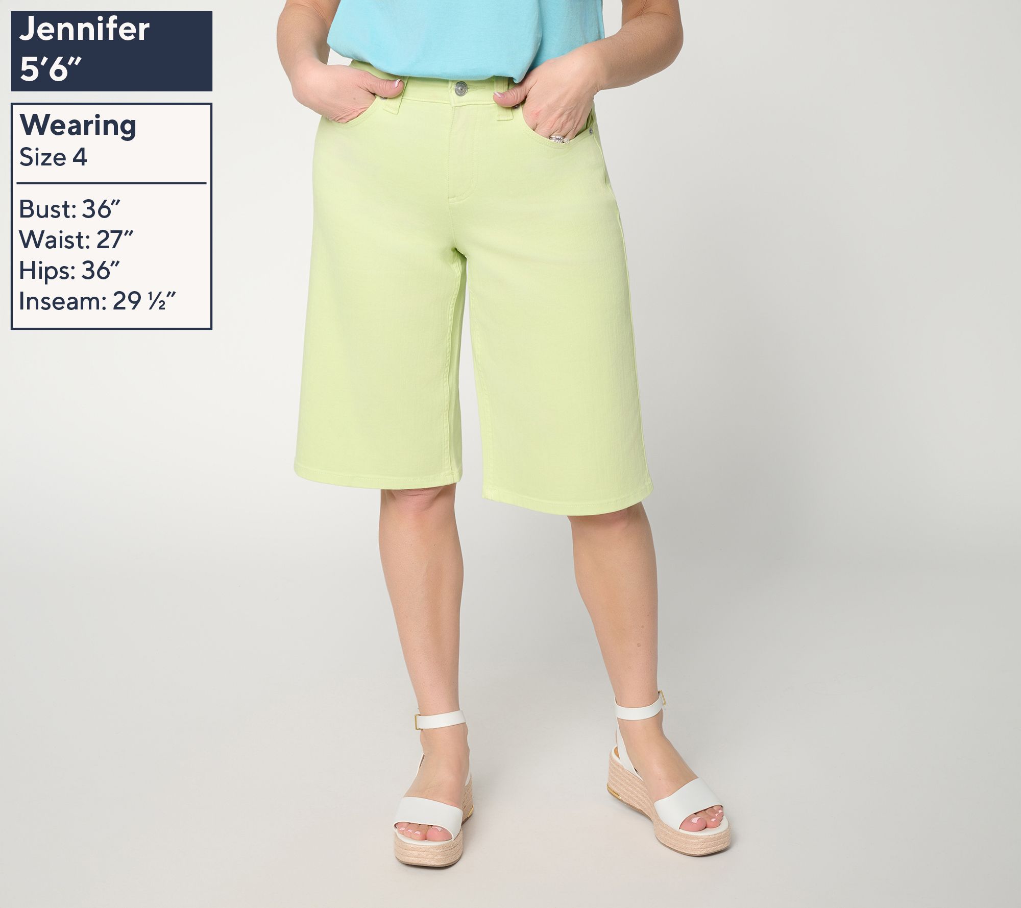Long shorts are having a moment -- get in on it with this Lori Goldstein style! Crafted in her beloved true denim with just the right amount of stretch and a graceful fit that's neither too relaxed nor too fitted, they'll make you fall in love with the leg-freeing style all over again. ('Cause we're ready for an alternative to crops and capris!) Pop them on for morning appointments, then leave them on to take a bike ride or grab an ice cream cone. From LOGO by Lori Goldstein®.