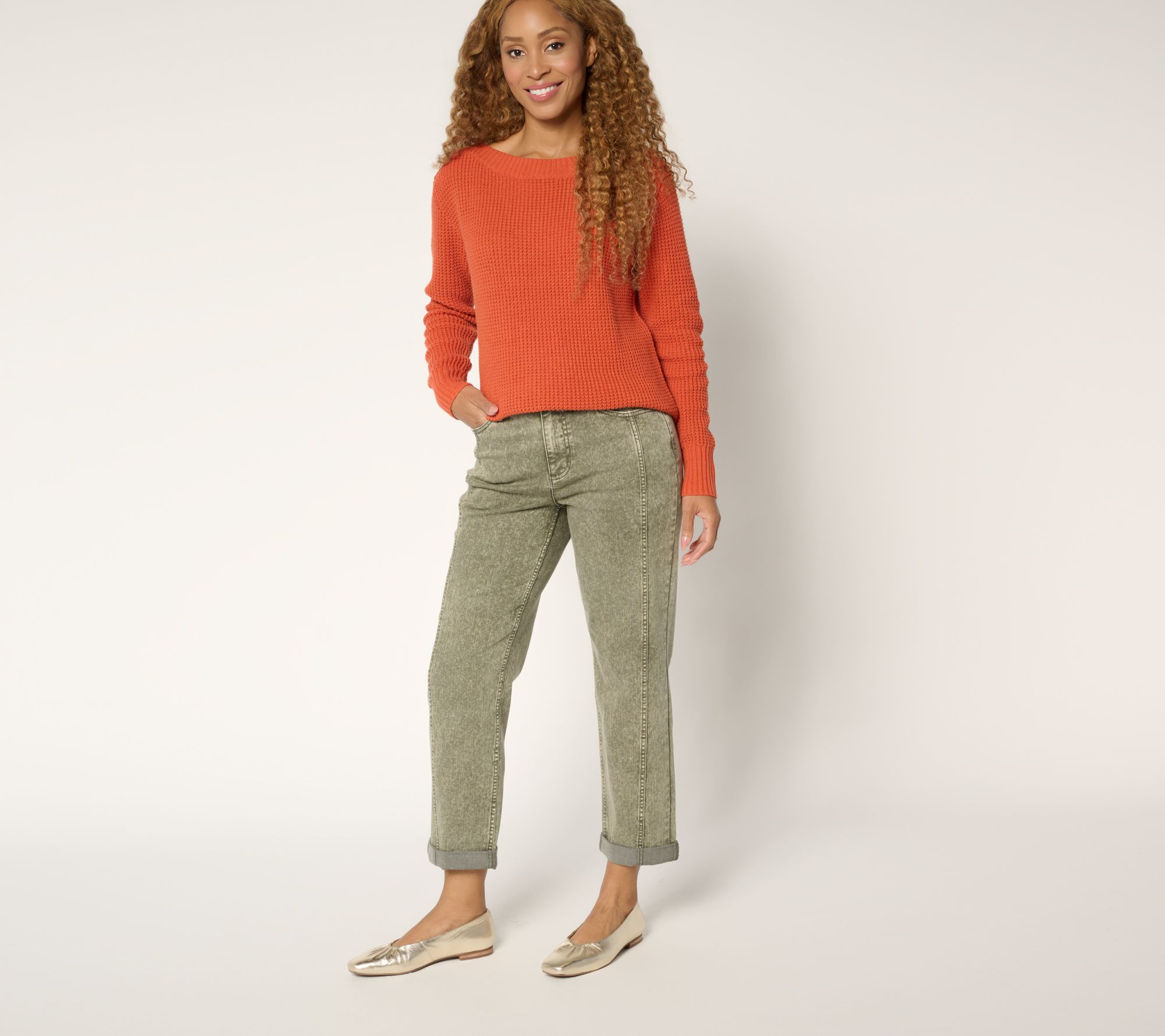 Your denim drawer wanted an upgrade, and LOGO delivered! Showing off seamed details, rolled cuffs, and all the pockets for practicality, these updated ankle jeans strike a seamless balance between comfort and trend-right style. Dress them up or down -- your new go-to jeans are here. From LOGO by Lori Goldstein®.
