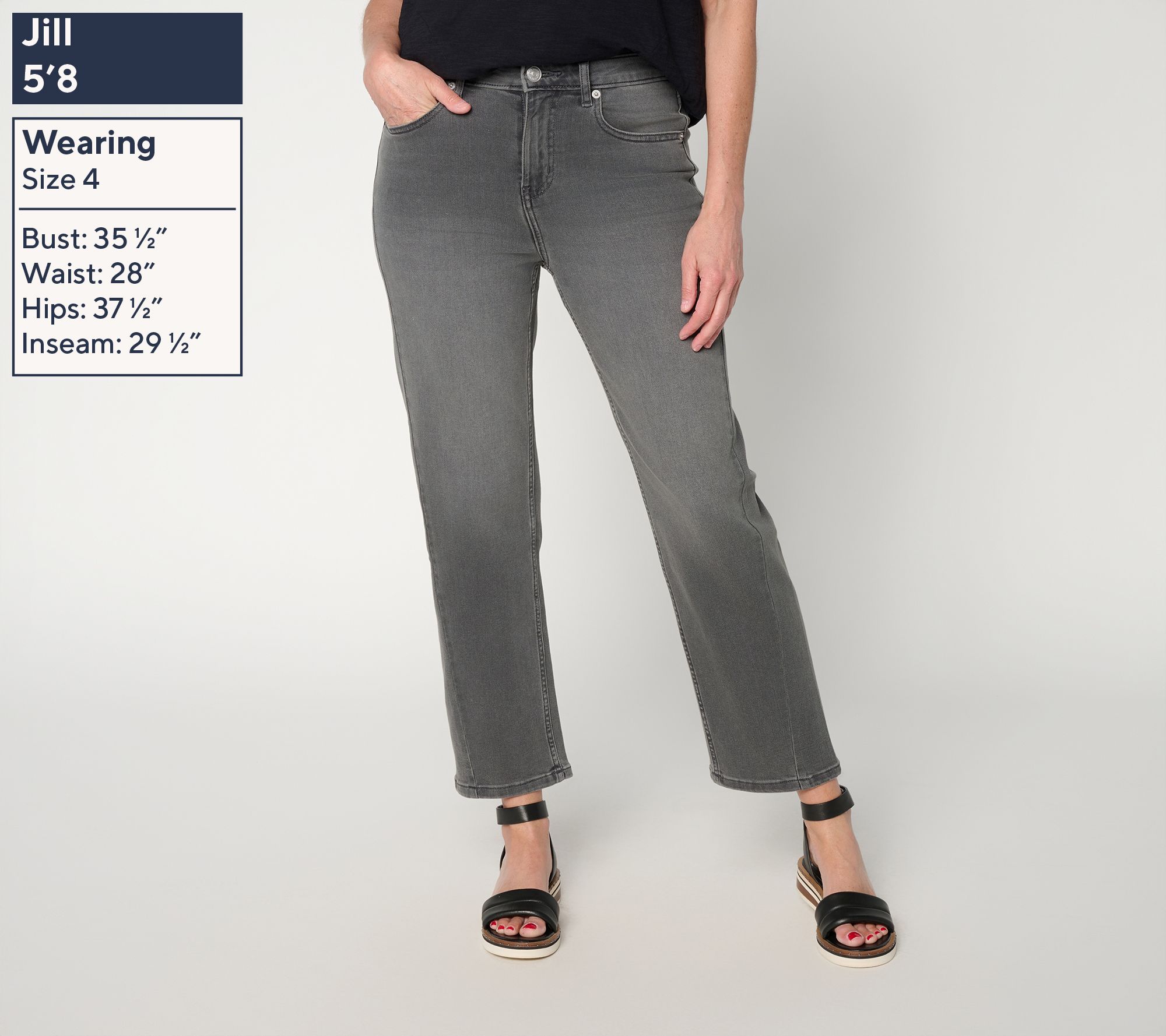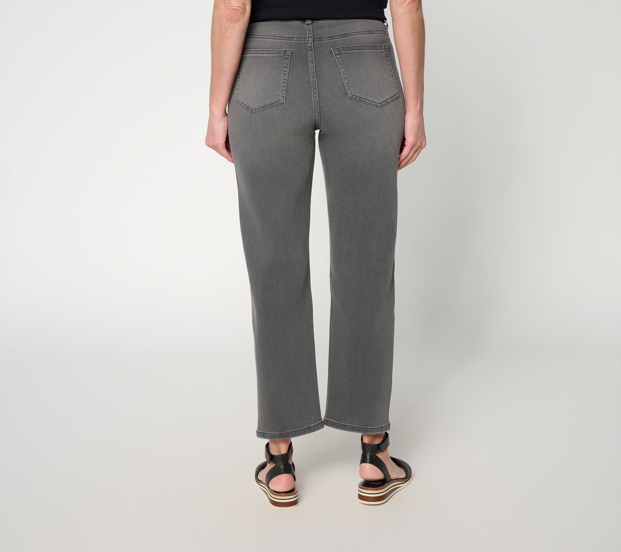 LOGO by Lori Goldstein Petite Grey Straight Crop Leg Jeans