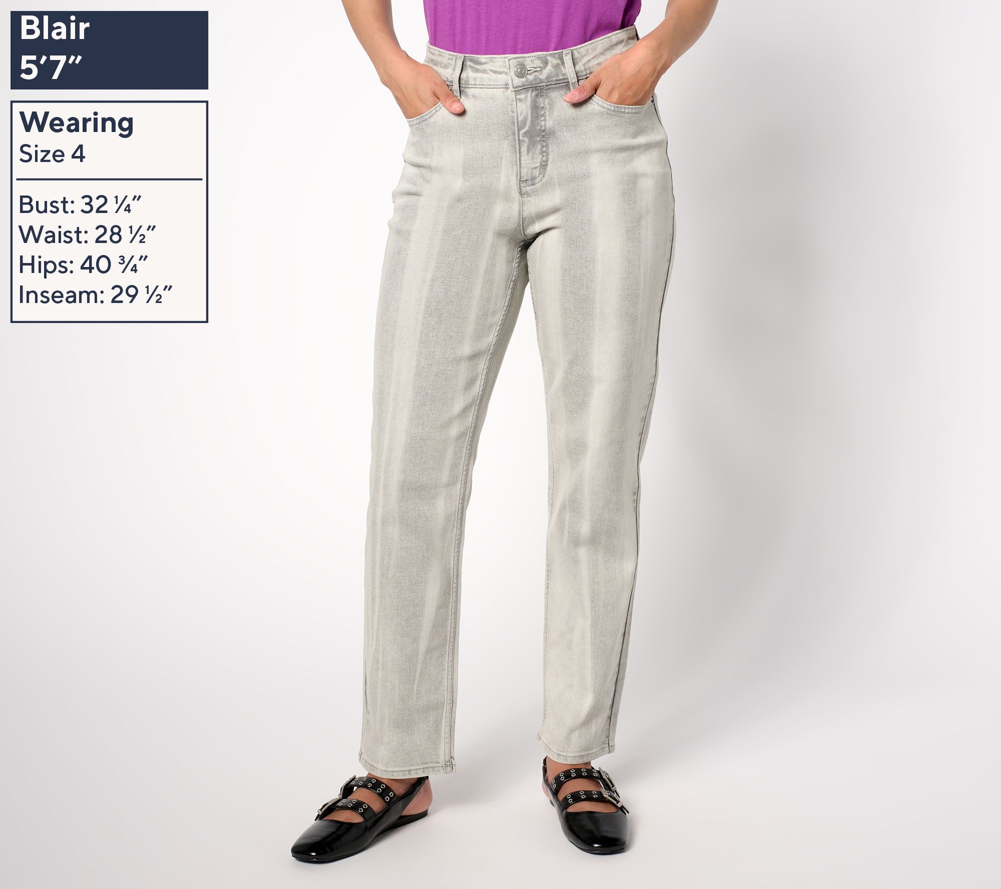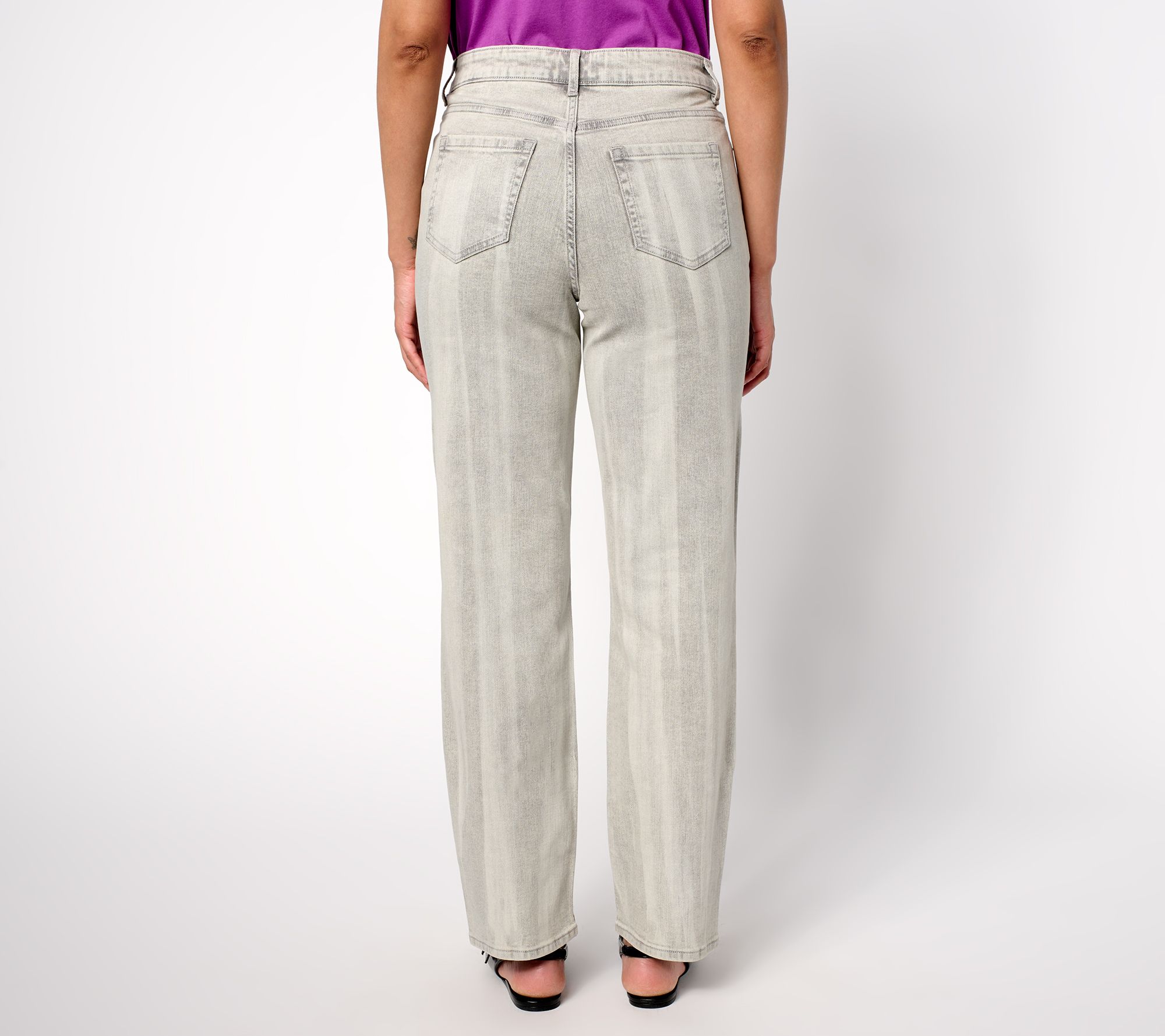 Stand-out style is now in season! Fun tie-dye details take center stage with these straight-leg ankle jeans from Lori Goldstein. She's crafted an energetic take on a '60s-inspired style -- so fresh for your rotation. Our rec: keep the rest of your look super simple with a solid tee, tank, or tunic. From LOGO by Lori Goldstein®.