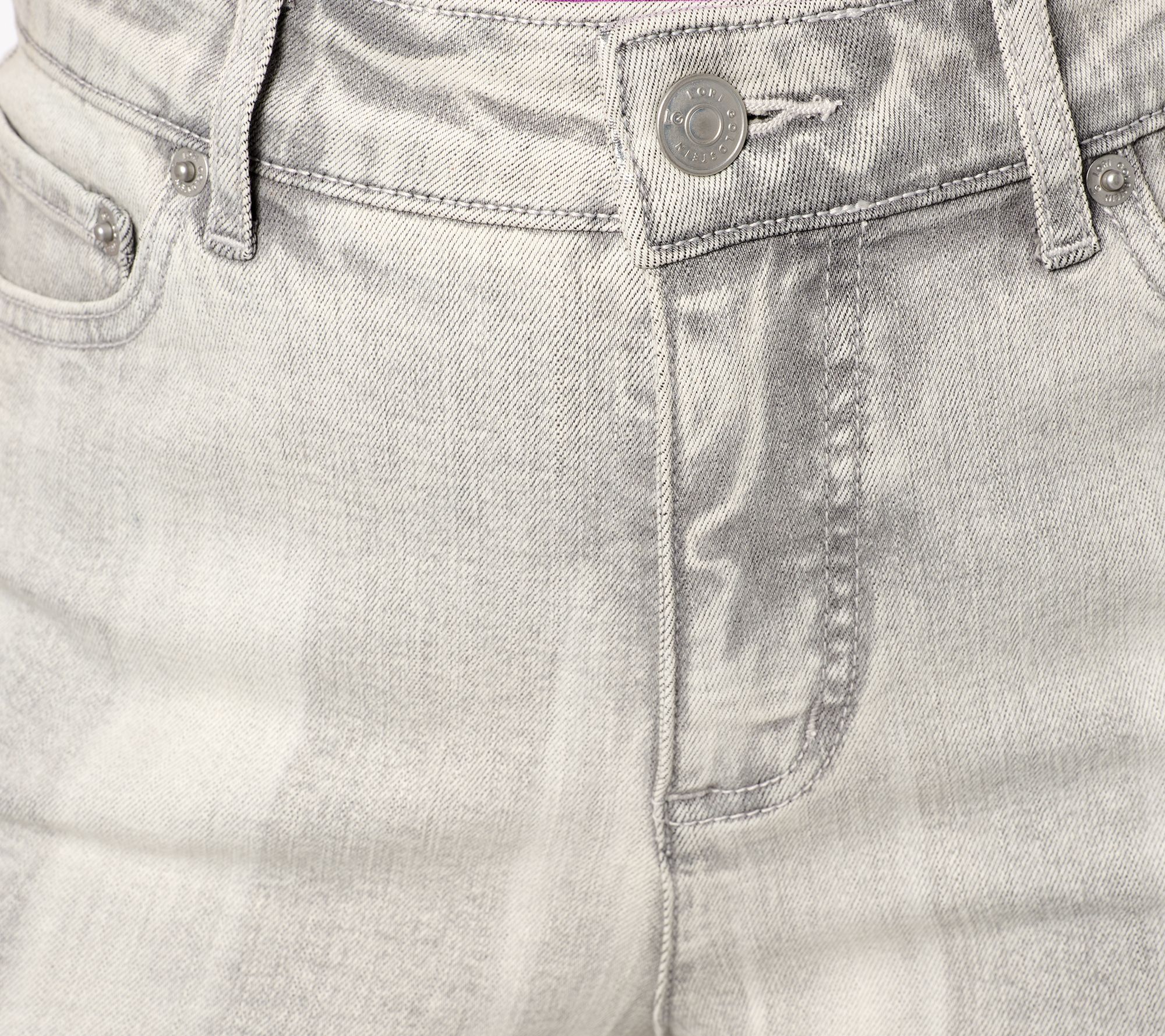 Features: five-pocket styling, tie-dye details, coin pocket, front scoop pockets, belt loops, back patch pockets, ankle length