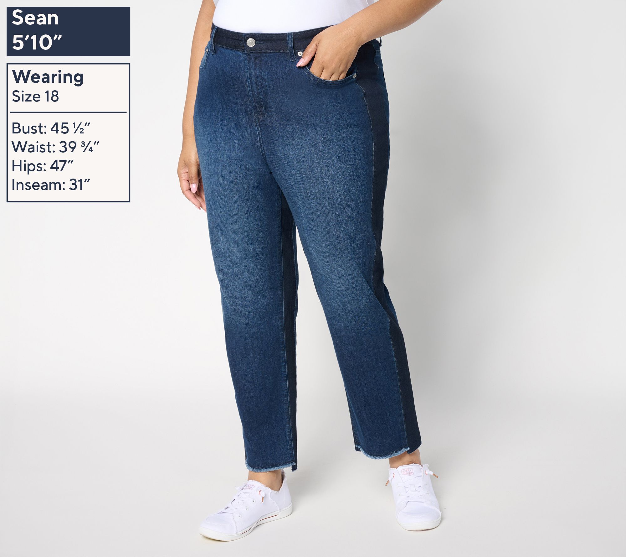 Get ready for grab-and-go ease with jeans that know how to multitask. LOGO's straight-leg ankle jeans offer a fresh look with their raw frayed hem and chic paneling on the outseam and inseam. Pair with sneakers for morning errands then switch to a jacket and jeweled flats for dinner plans. From LOGO by Lori Goldstein®.
