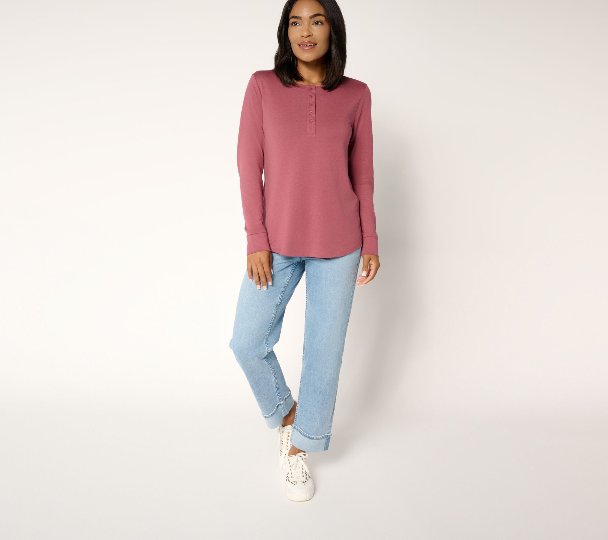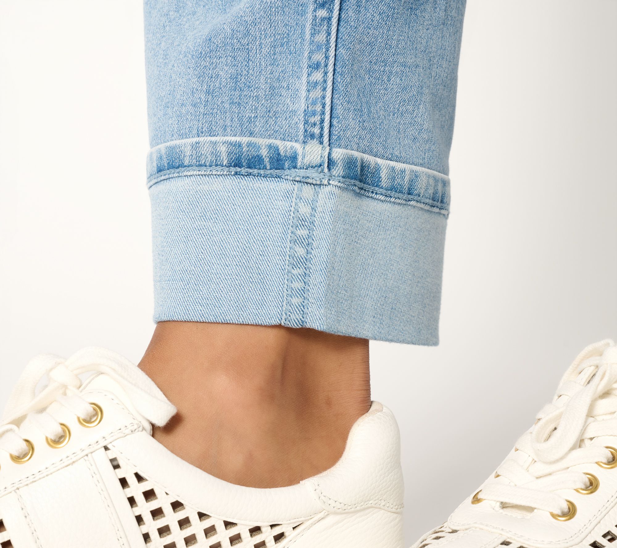 Bring something new to your denim days with these turn-up cuff ankle jeans, featuring a hint of stretch for comfort and fixed cuffs for a modern edge. With classic pocket styling and a straight-leg shape, they're ready to partner with tees, sweaters, or structured jackets for anything on your agenda. From LOGO by Lori Goldstein®.
