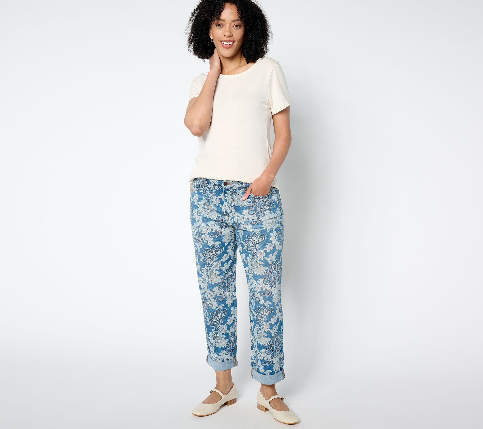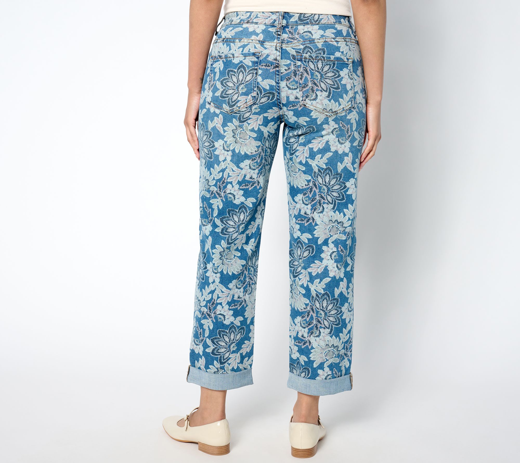 Busy days get a boost from the fashion-fresh print on these denim jeans, a versatile boyfriend silhouette that's comfortable for appointments, casual offices, and your social life. From LOGO by Lori Goldstein®.