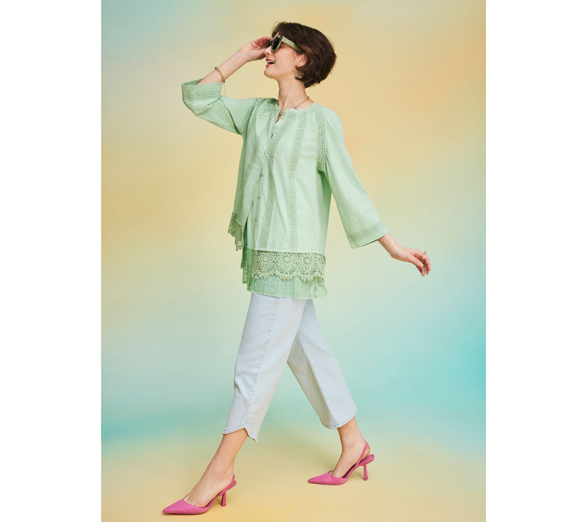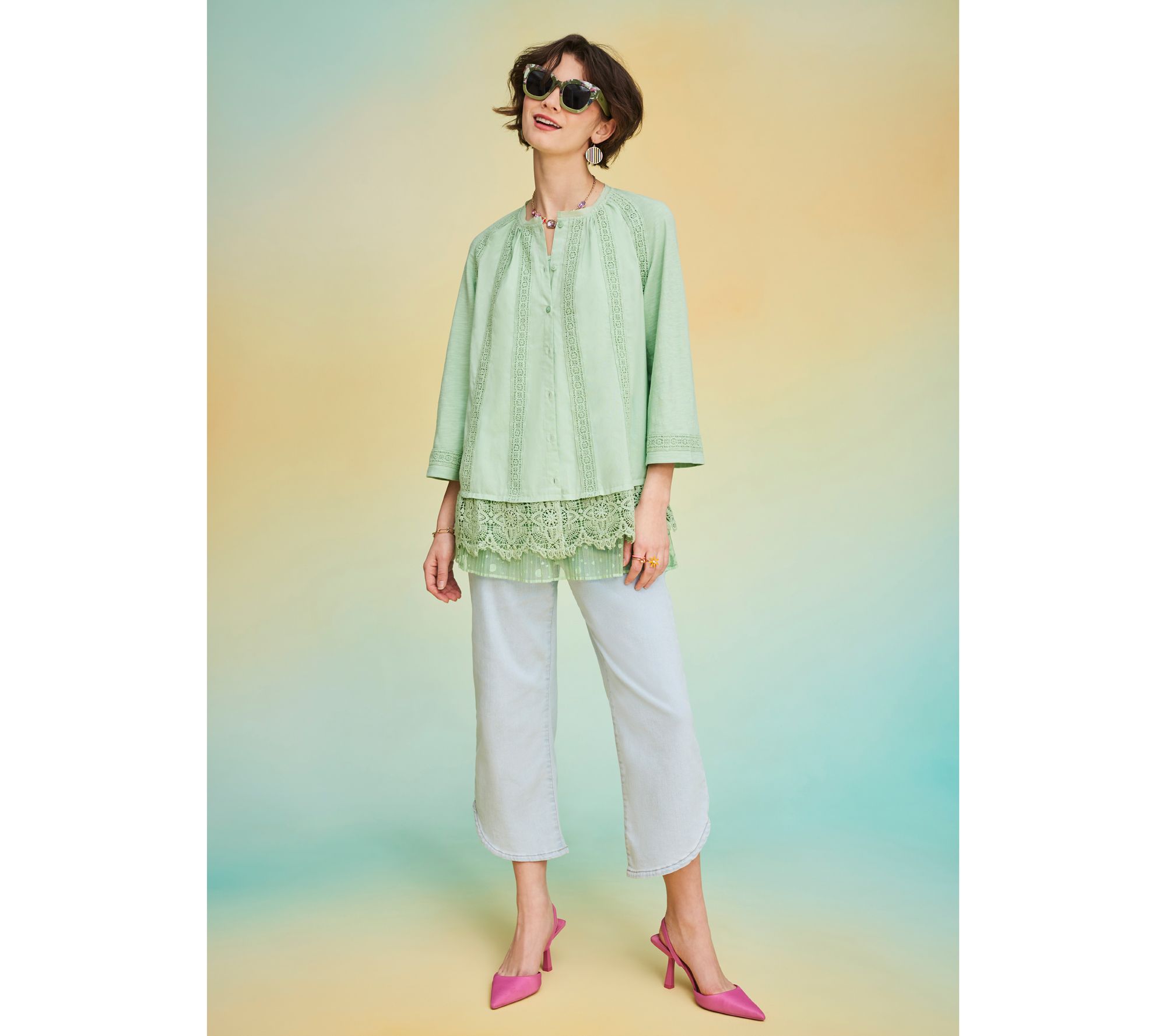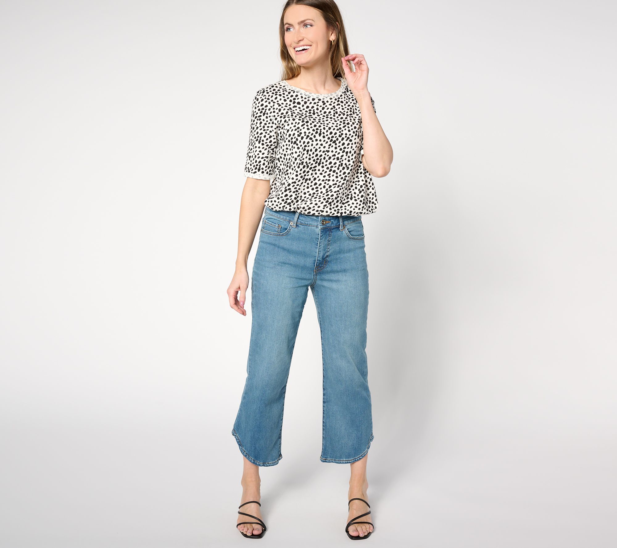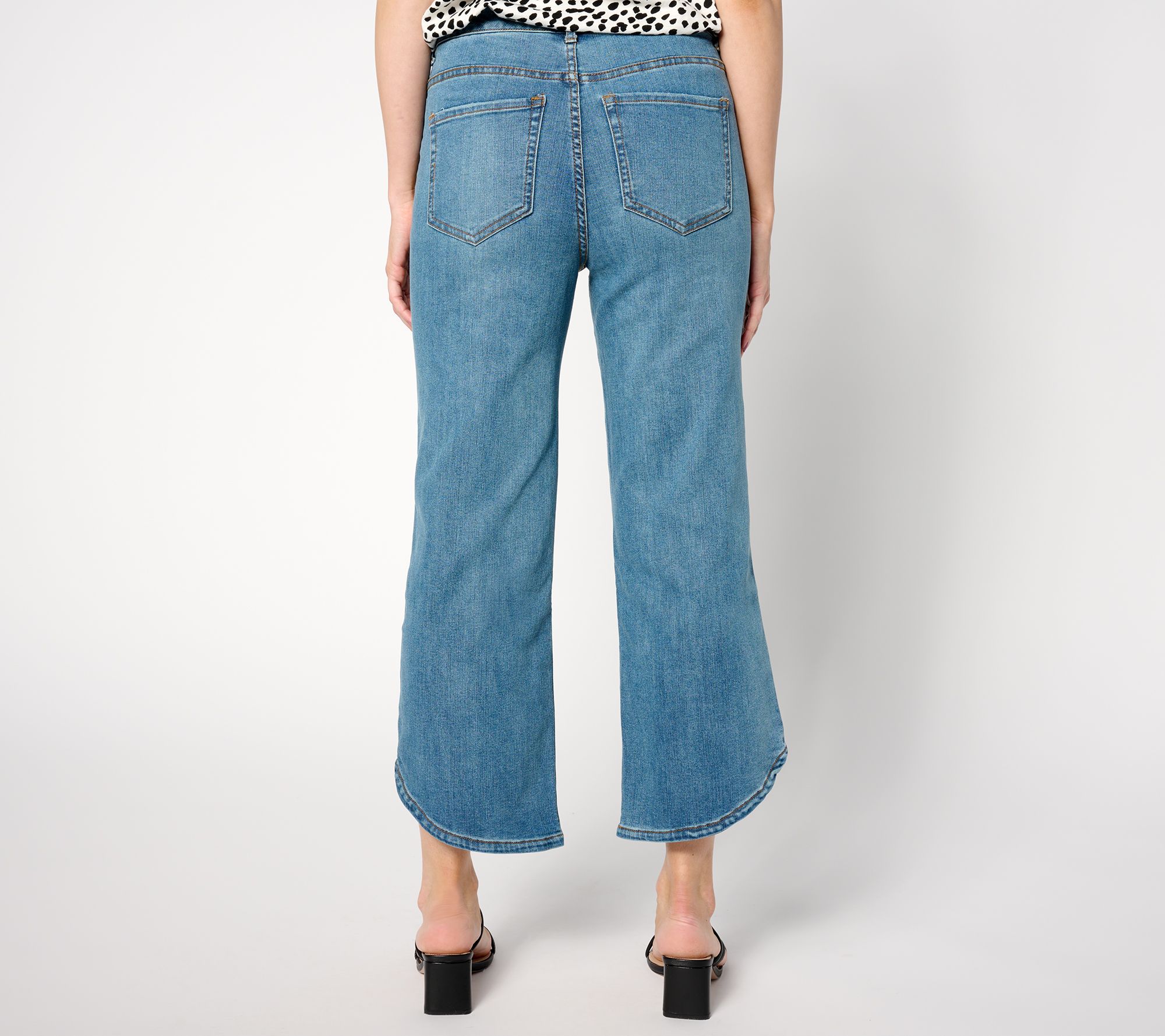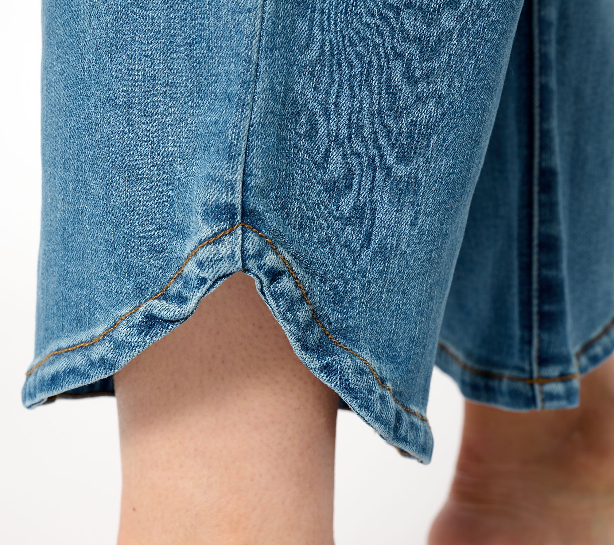Straight leg? Check! Ankle length? Check! Visual interest? Check! These tulip-hem jeans are how we do denim now. So fresh! From LOGO by Lori Goldstein®.