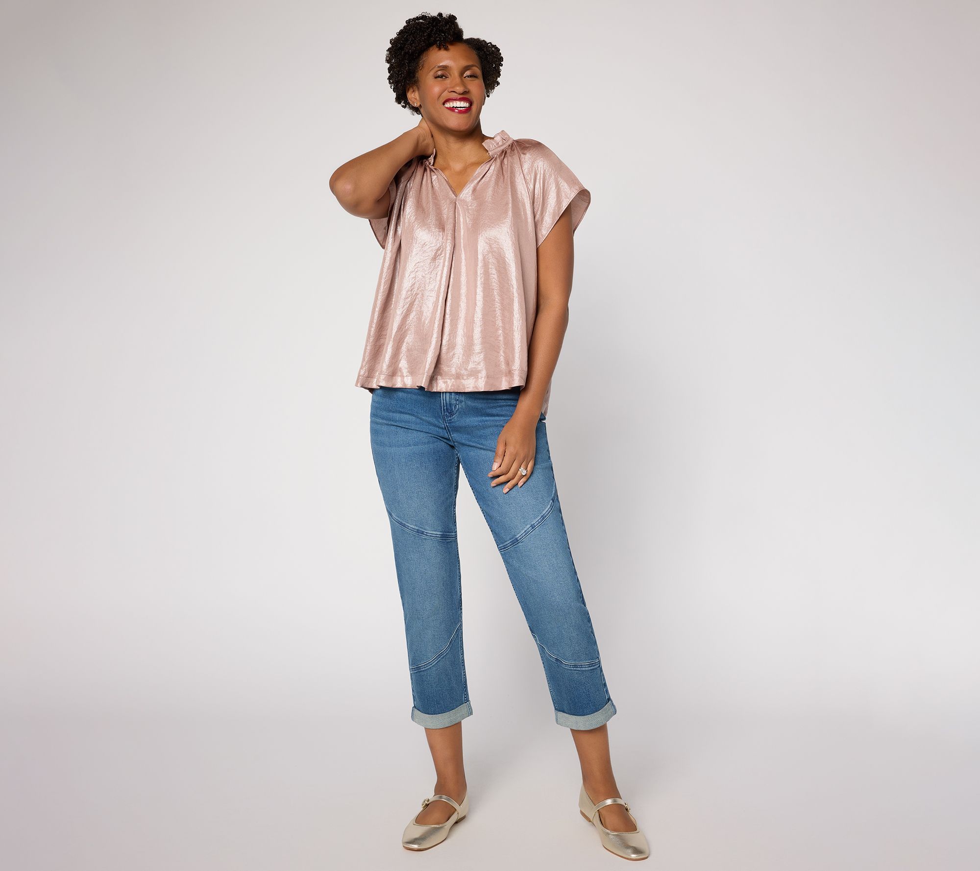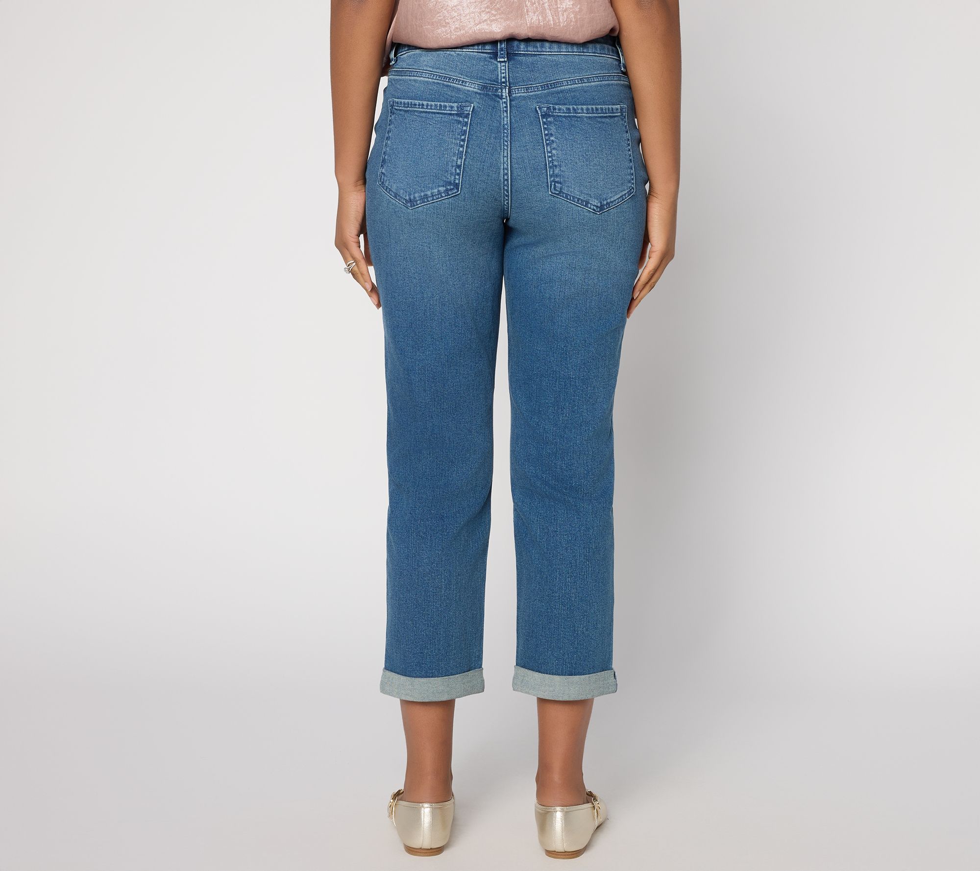 Days at home or out and about get a dose of relaxed charm with these seamed boyfriend ankle jeans. A roomy straight leg and classic five-pocket styling deliver comfort that moves with you, while stitch details and a contour waistband bring structure to every look. Cuff the hem when a laid-back vibe is the mood of the day. From LOGO by Lori Goldstein®.
