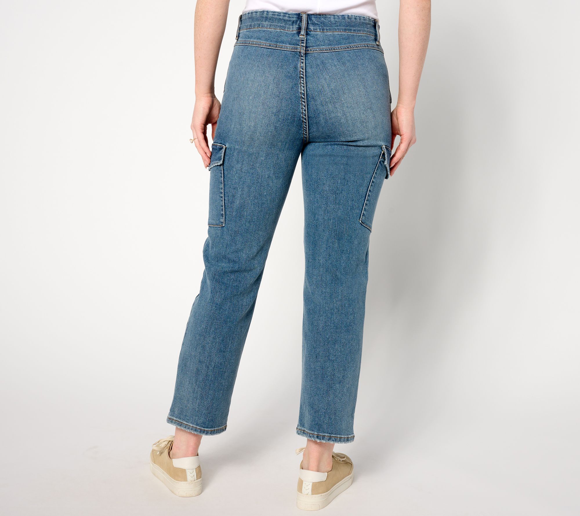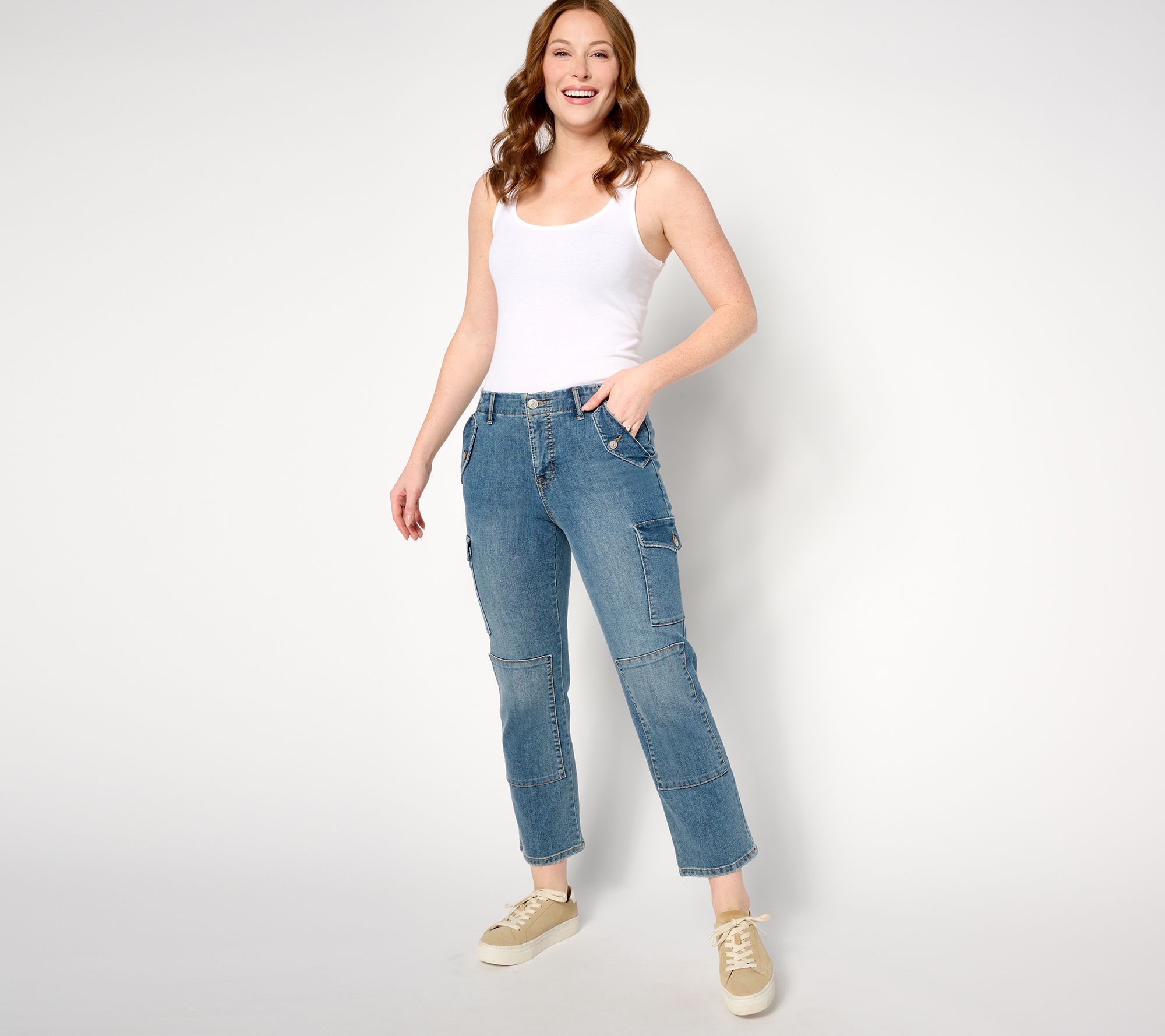 Practical makes perfect. Easy-wearing cargo jeans in polished, flattering twill update your casual daytime look. From LOGO by Lori Goldstein®.