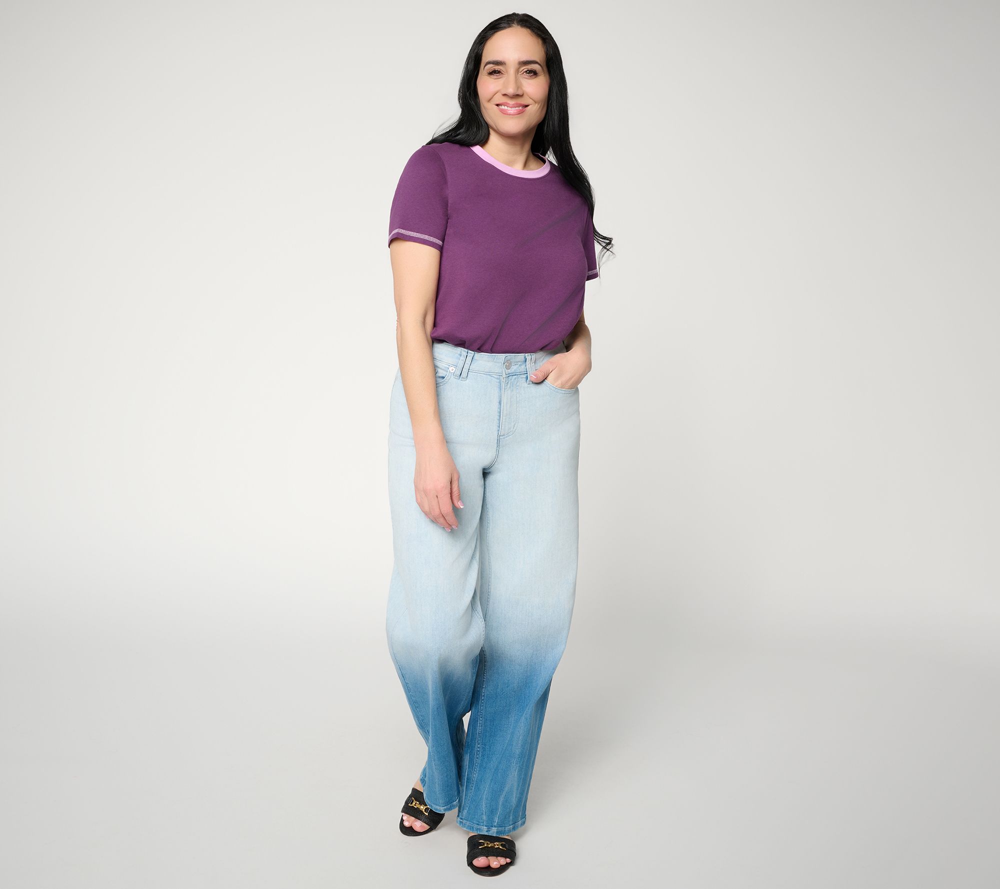 LOGO by Lori Goldstein Petite Wide Leg Jean with Dye Effect