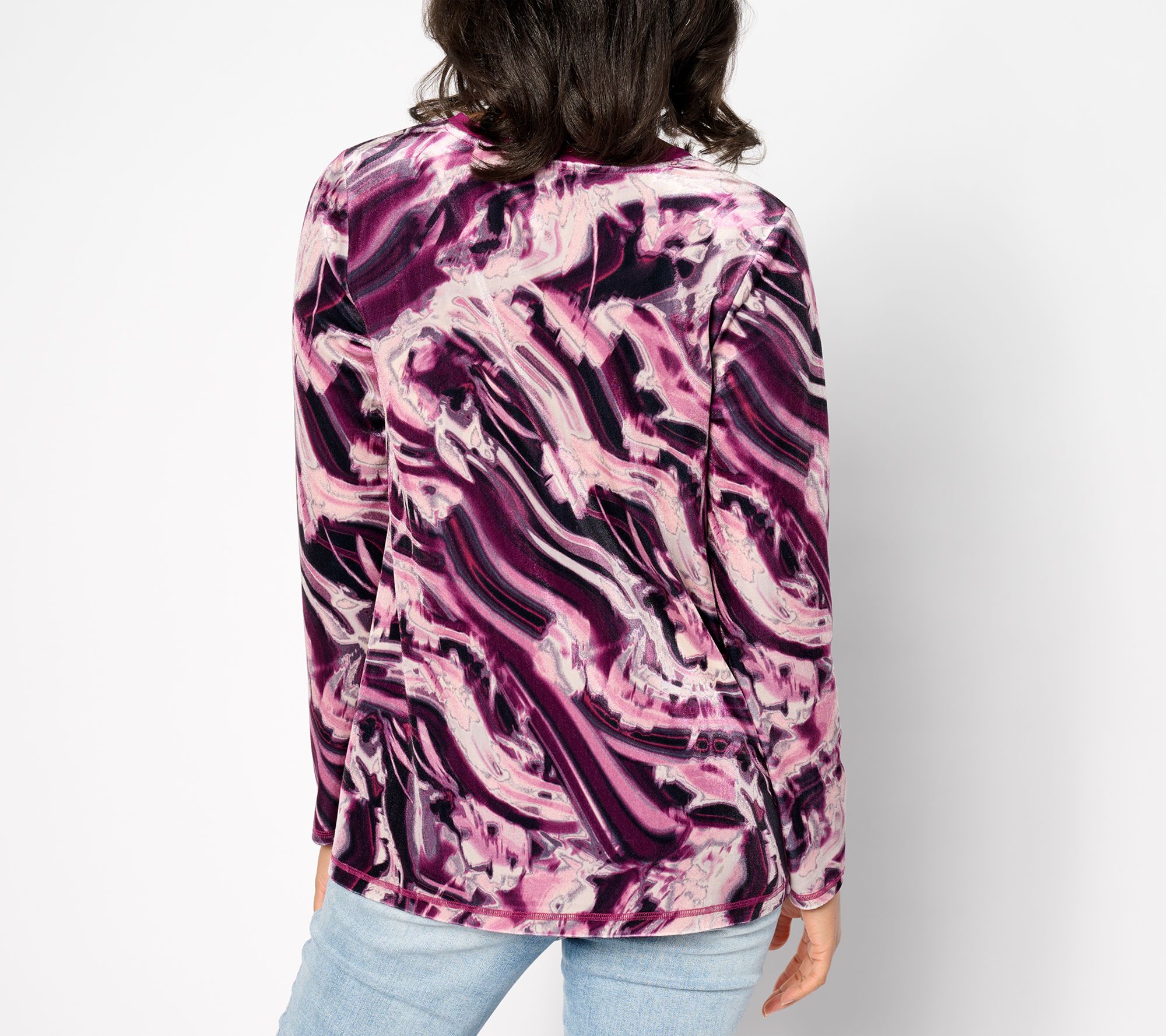 LOGO by Lori Goldstein Printed Velour Scoop Neck Pieced Top