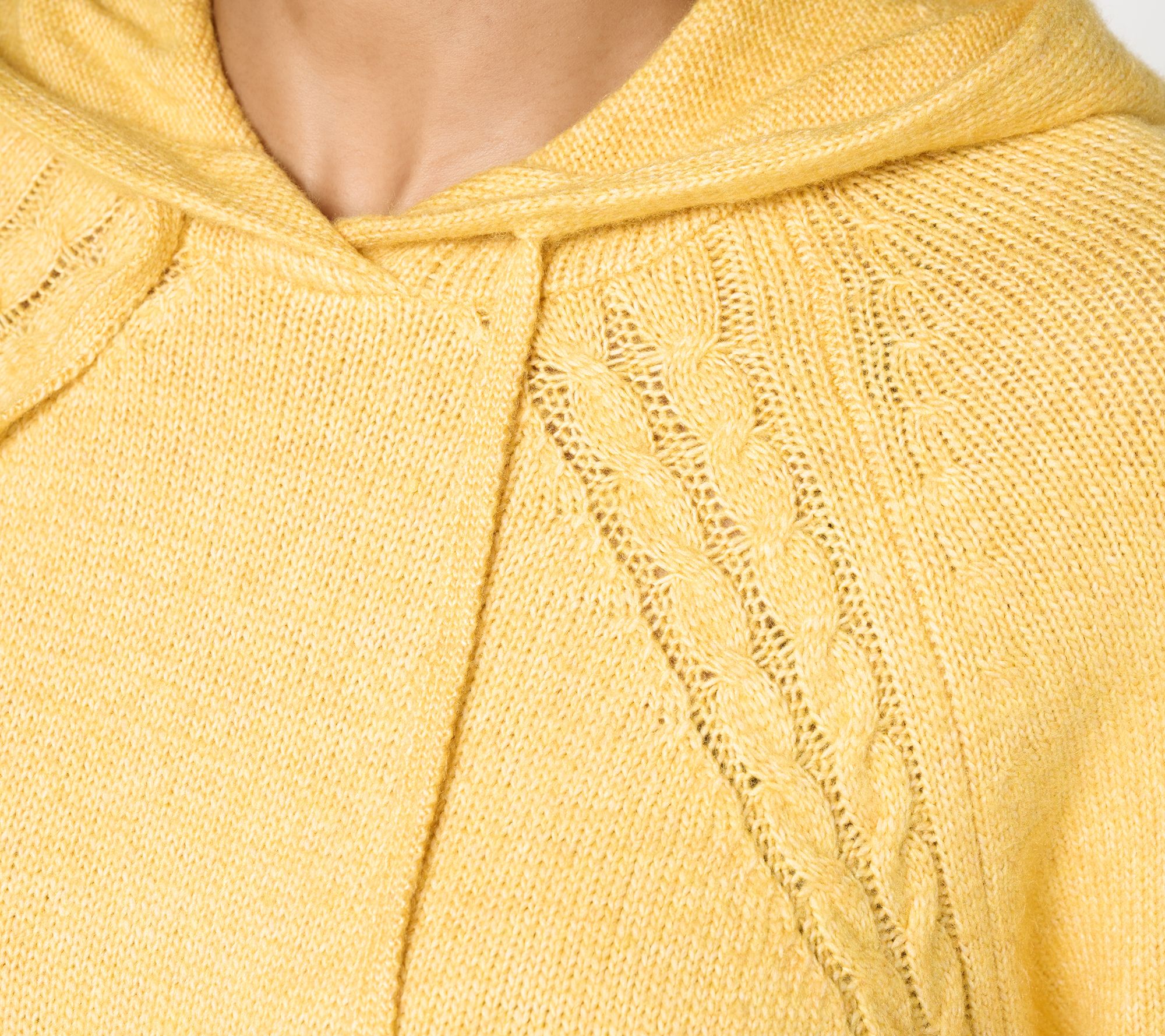 A casual day out or an afternoon spent unwinding at home calls for this hooded sweater, updated with raglan sleeves and detailed cable stitching. The hoodie style lends a laid-back feel, while the cable trim elevates the look that can easily pair with tailored trousers or knit joggers. From LOGO by Lori Goldstein®.