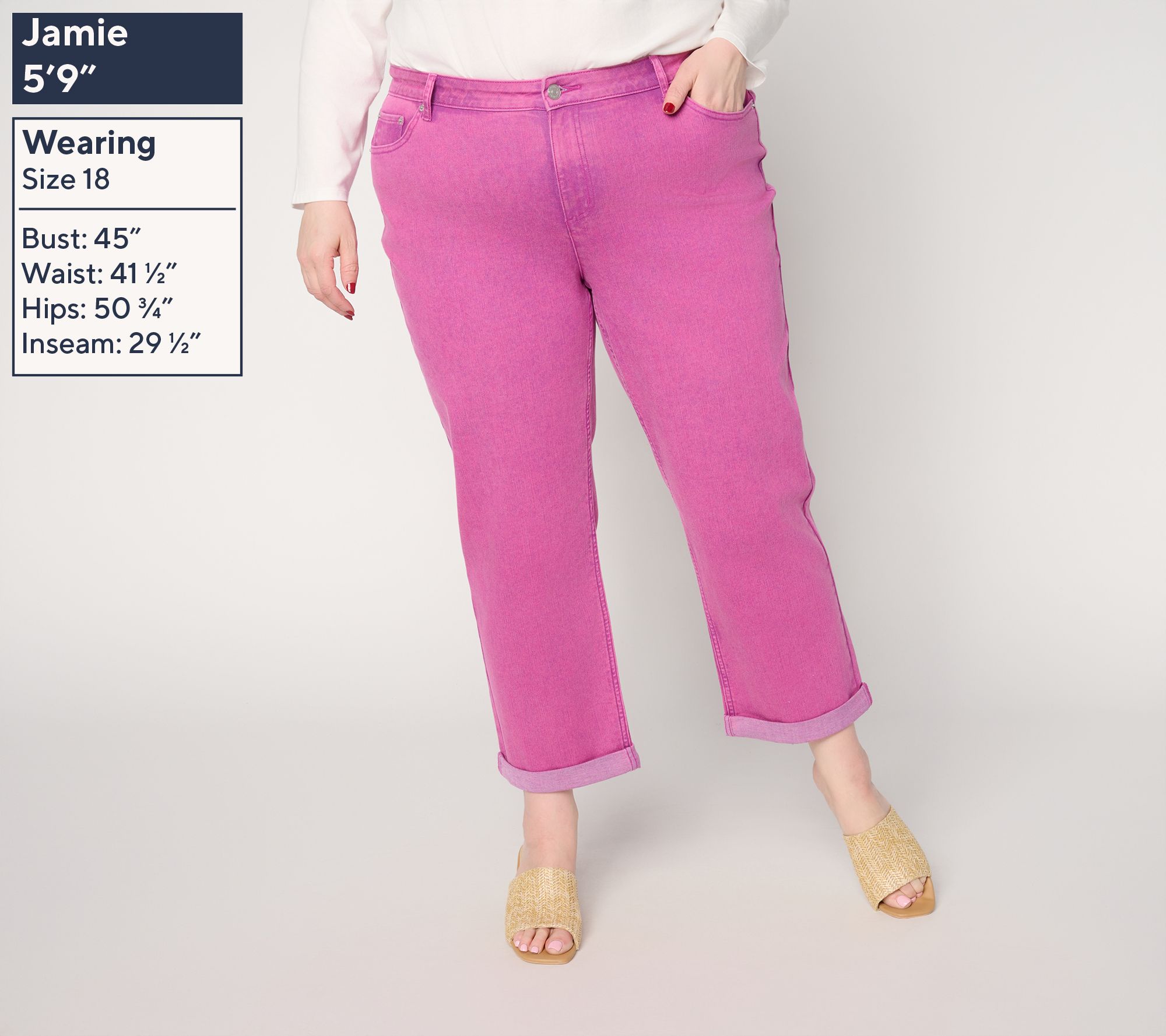 Features: ankle length, boyfriend silhouette, contour waistband, back patch pockets, wear cuffed or uncuffed