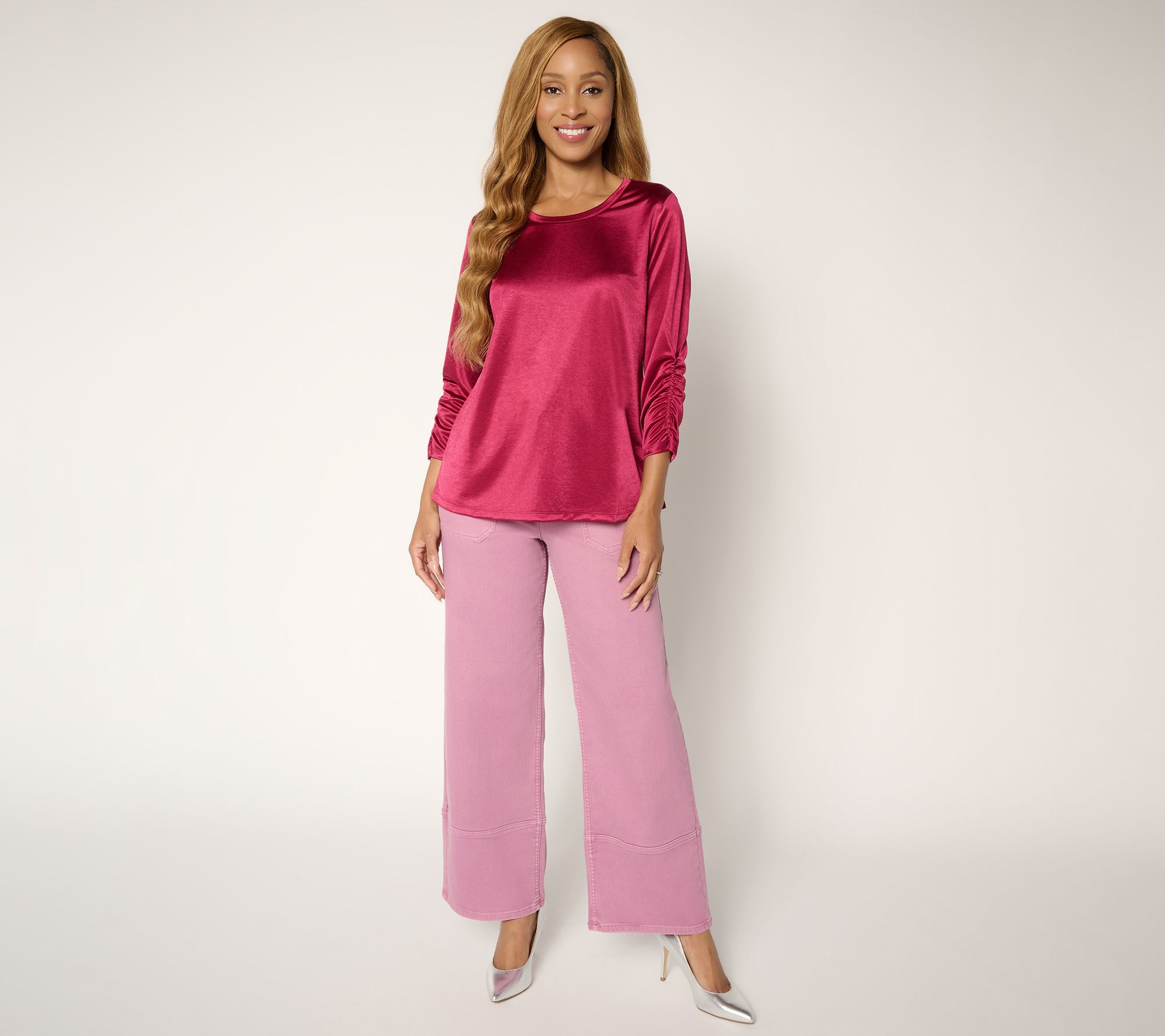 LOGO by Lori Goldstein Regular Color Full Length Wide Leg Jeans