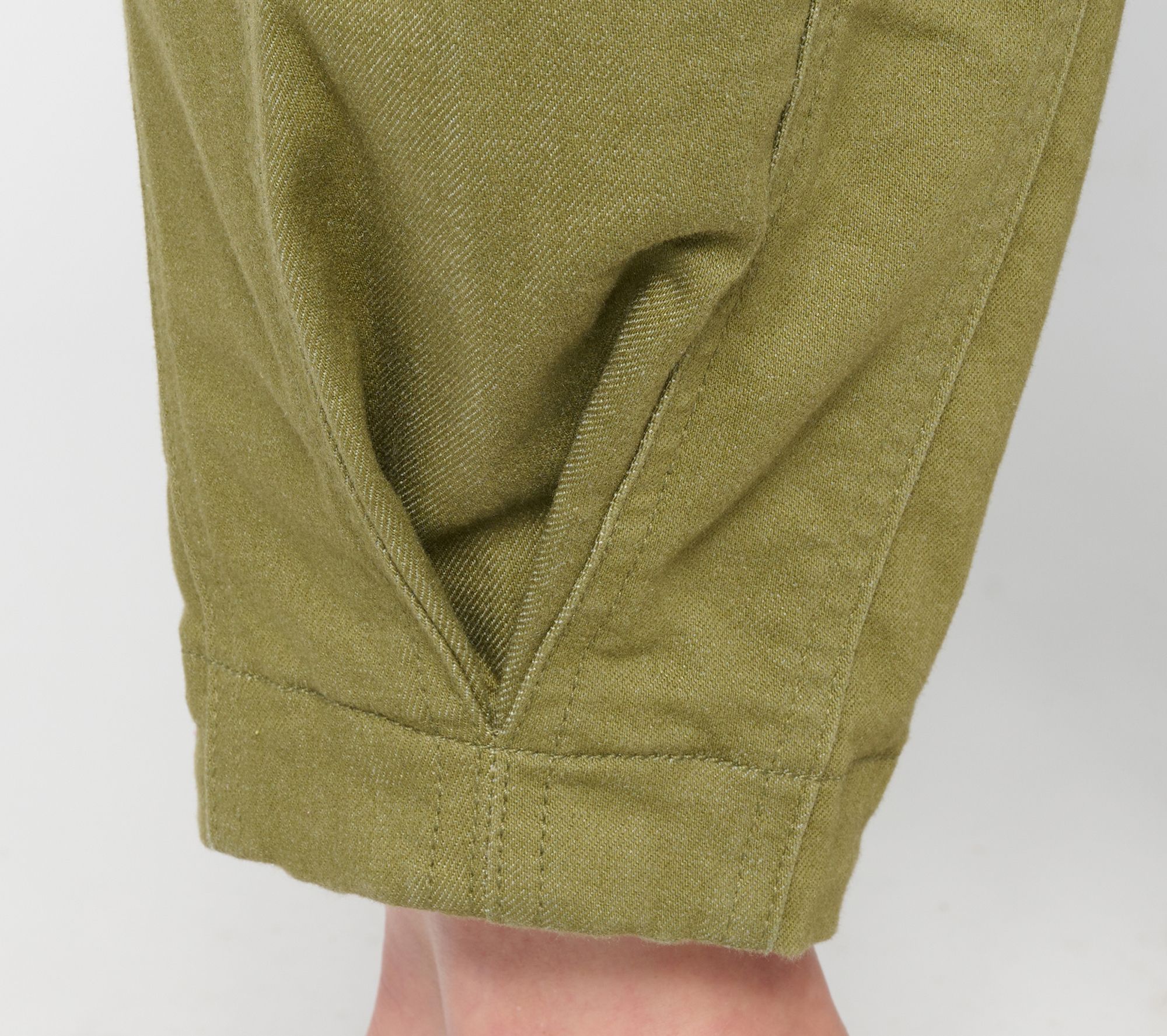 • Features: front pockets, back patch pockets, wide hem, seam at center front and center back, ankle length