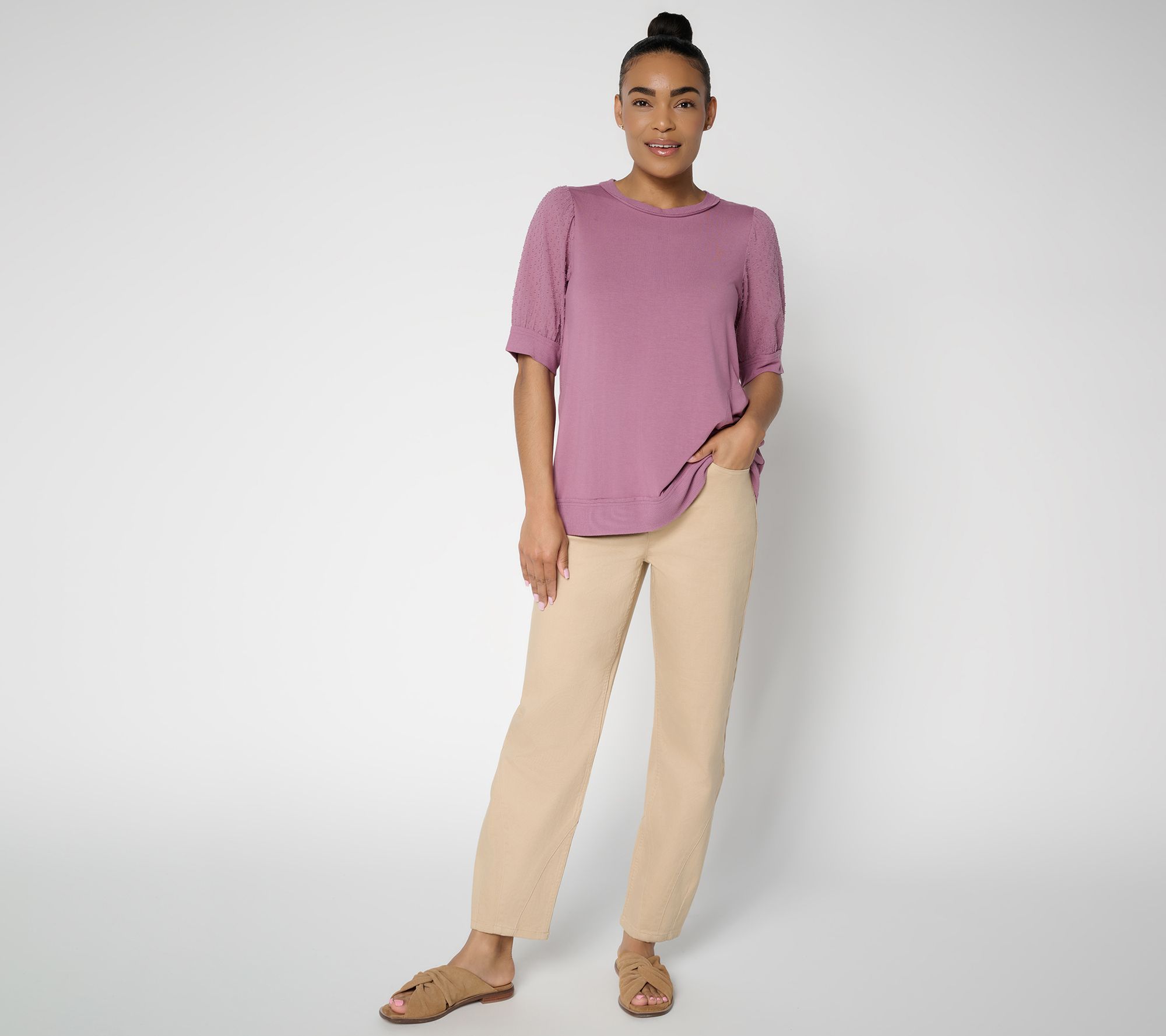 When your day calls for stylish comfort, these LOGO ankle jeans deliver with thoughtful seaming and subtle pleat detailing. Whether paired with sneakers for a casual brunch or styled with flats for an evening out, their designer deets and soft stretch make every occasion feel easy and chic. From LOGO by Lori Goldstein®.