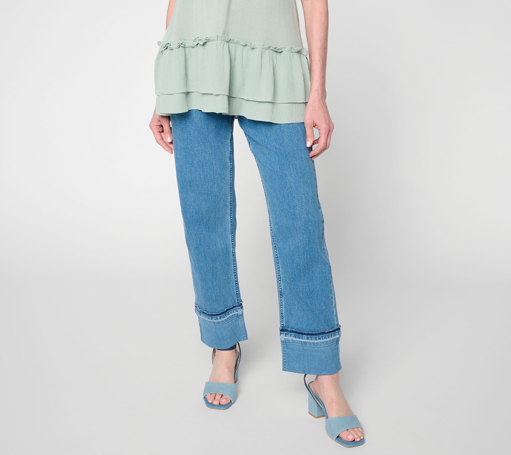 LOGO by Lori Goldstein Regular Cuffed Hem Straight Leg Jeans