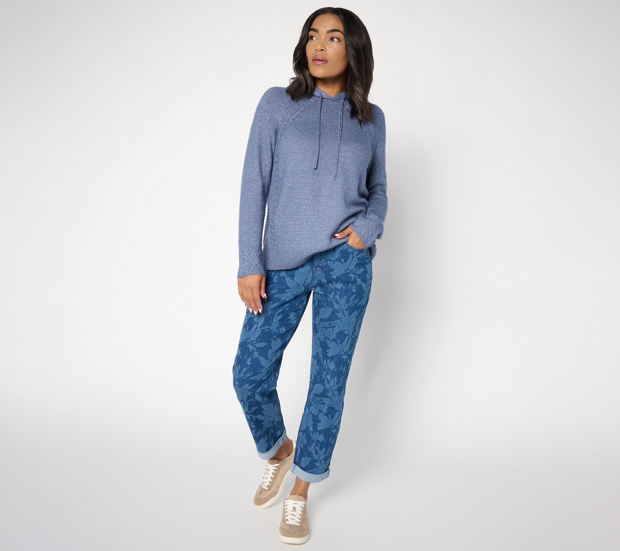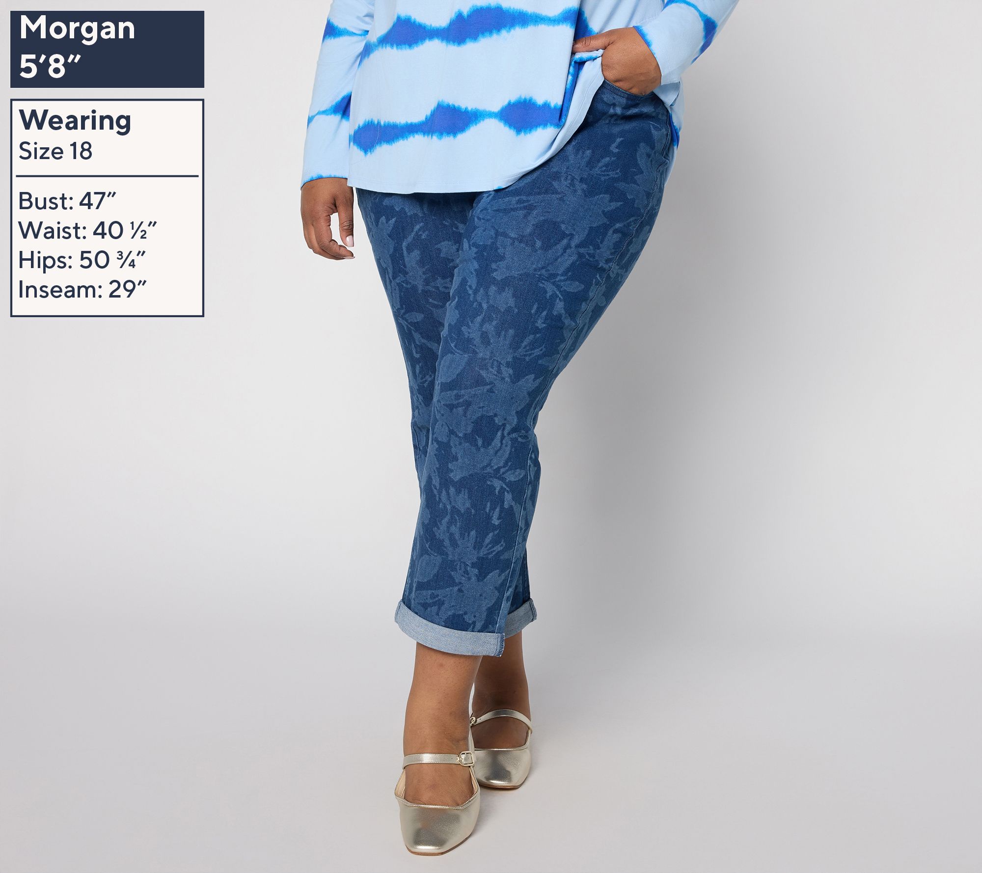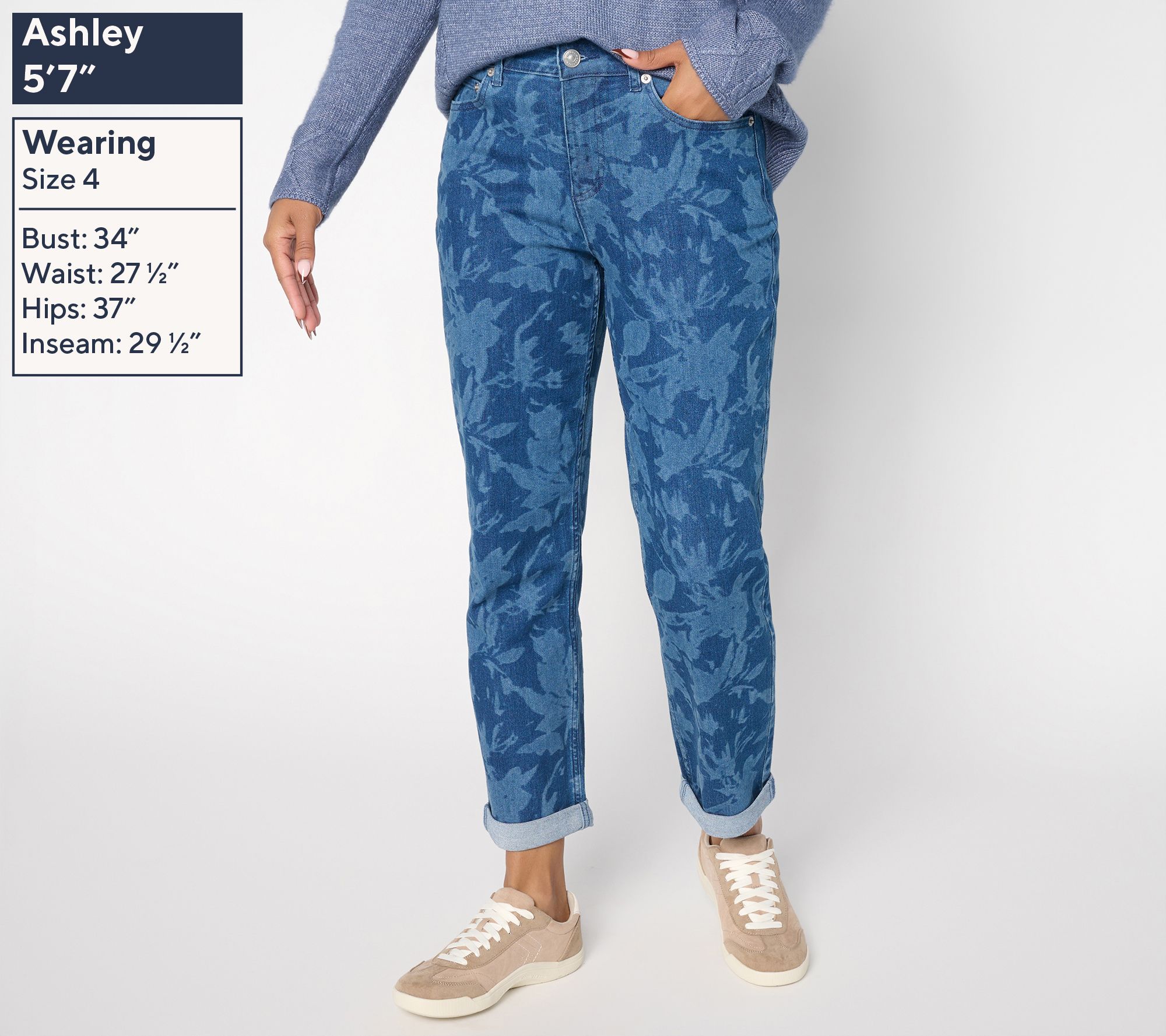Fresh pick! Whether you're exploring a new city or meeting up with friends for coffee, these floral boyfriend jeans offer an effortless way to make a statement. Their straight-leg cut lends a relaxed vibe, while classic five-pocket styling and bit of stretch mean you're as comfortable as you are stylish all day long. From LOGO by Lori Goldstein®.