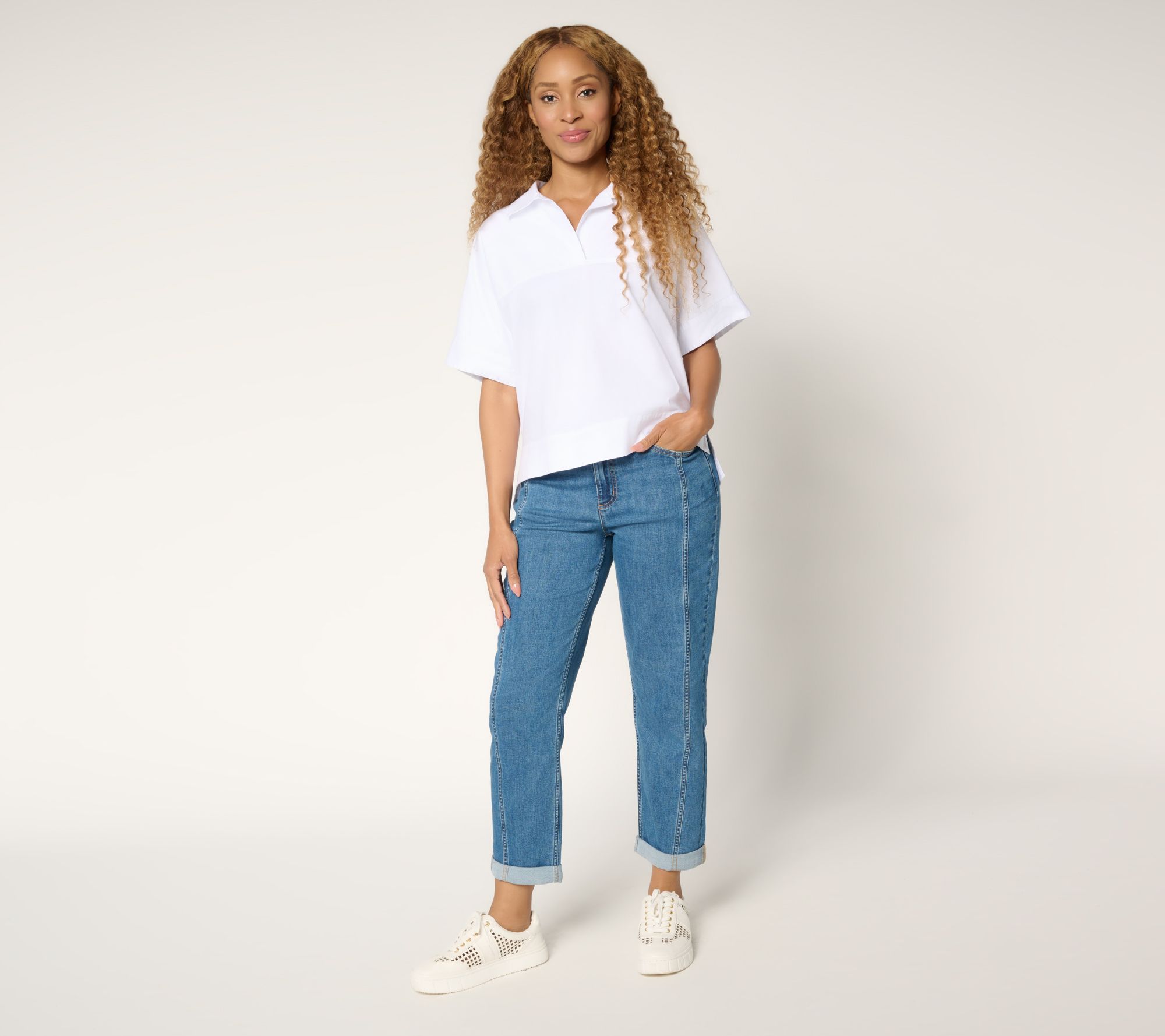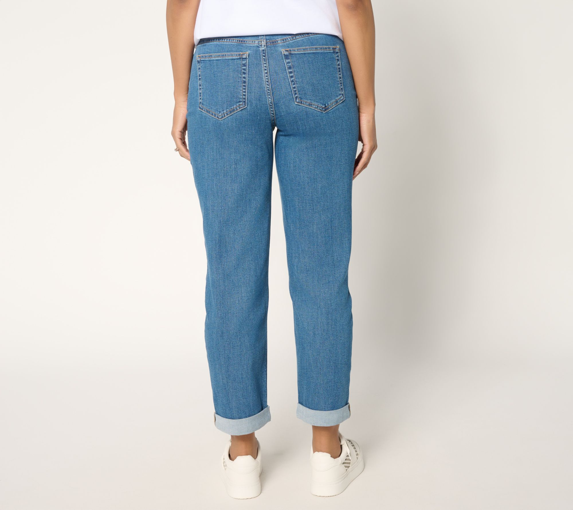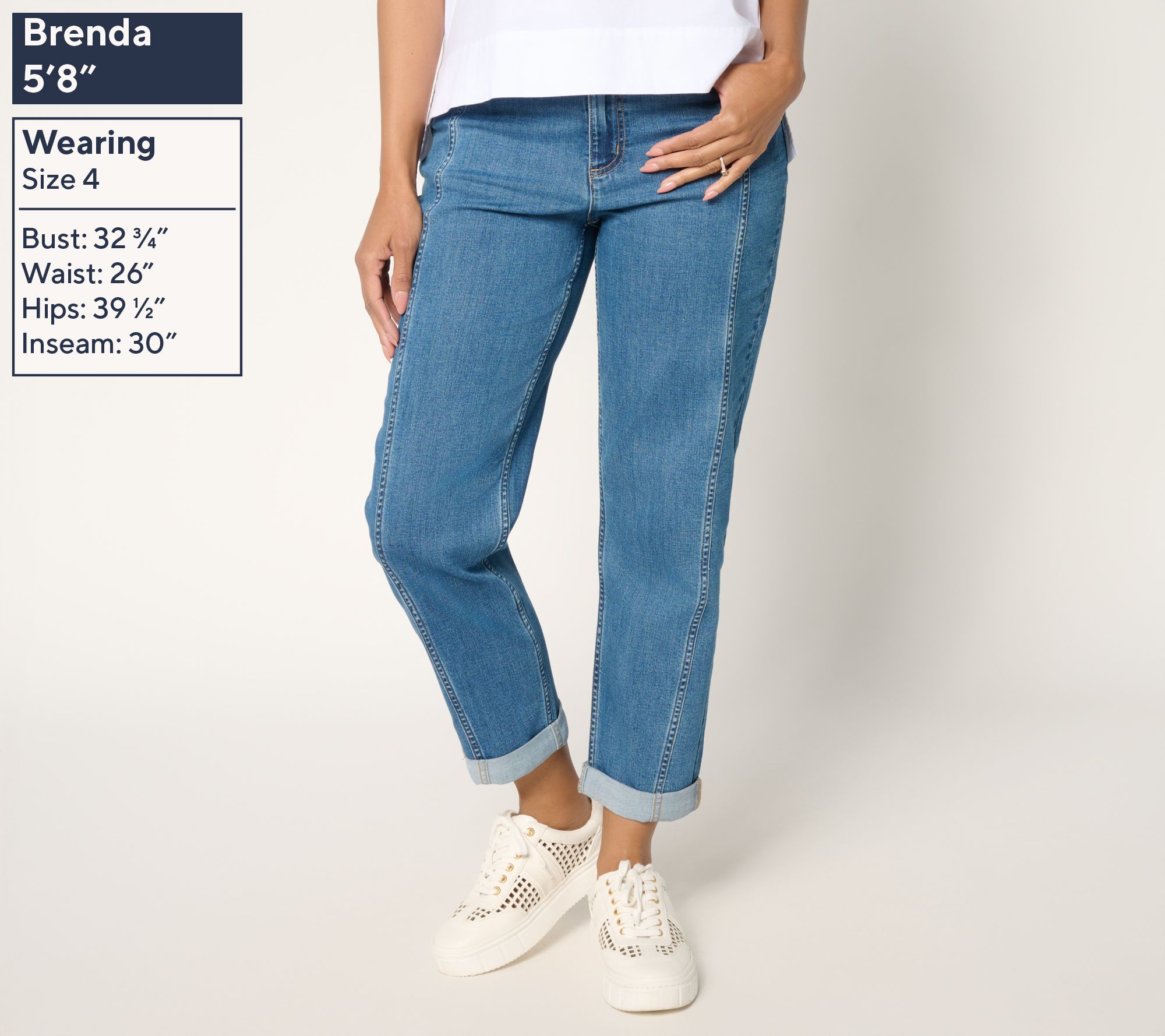 Your denim drawer wanted an upgrade, and LOGO delivered! Showing off seamed details, rolled cuffs, and all the pockets for practicality, these updated ankle jeans strike a seamless balance between comfort and trend-right style. Dress them up or down -- your new go-to jeans are here. From LOGO by Lori Goldstein®.