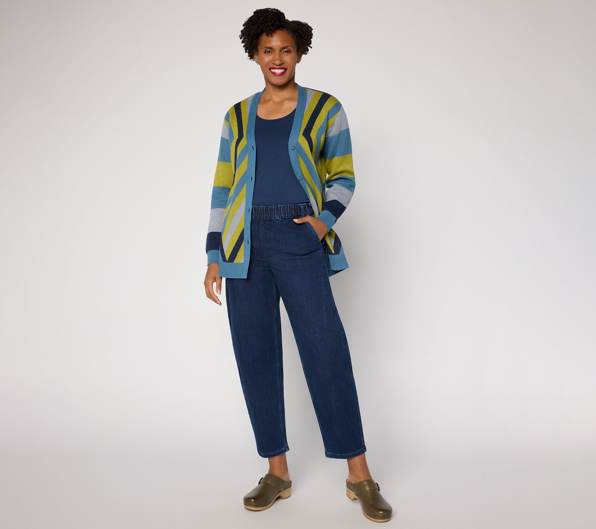 LOGO by Lori Goldstein Regular Indigo Pull On Barrel Ankle Jeans