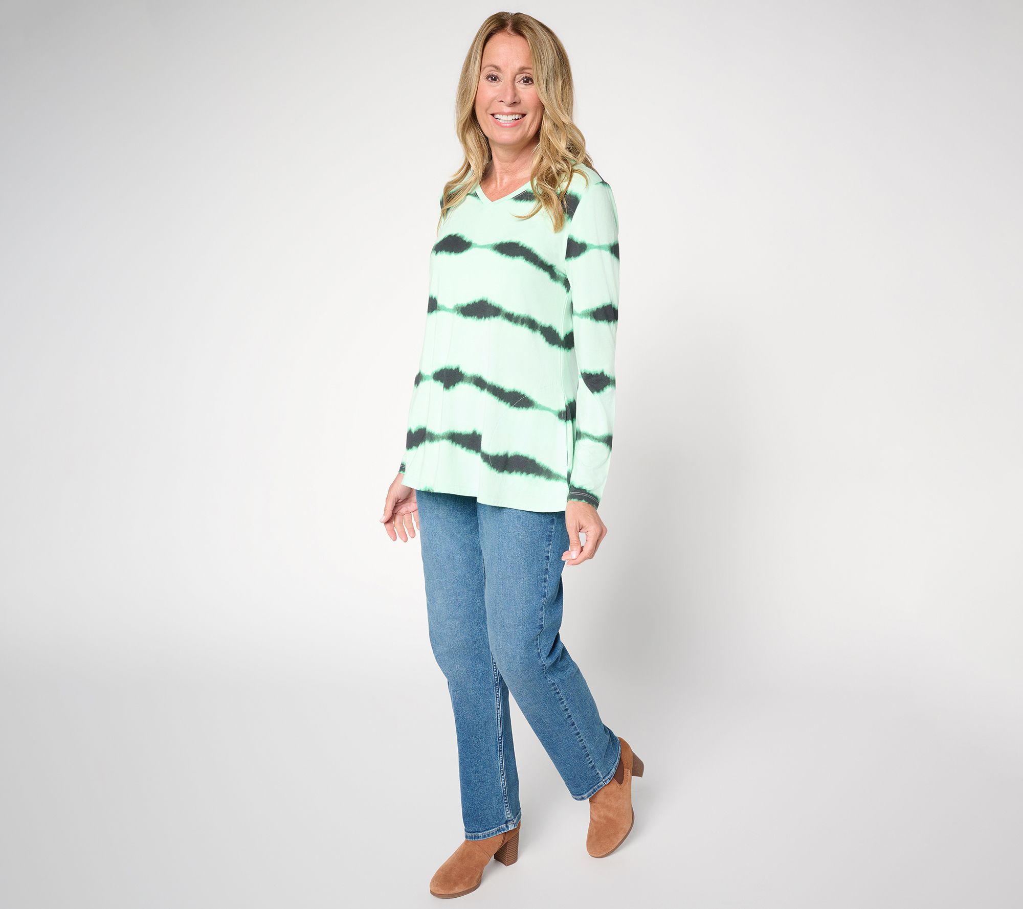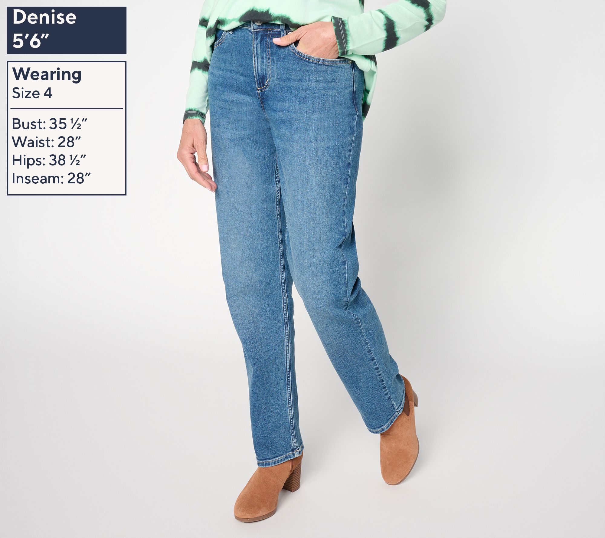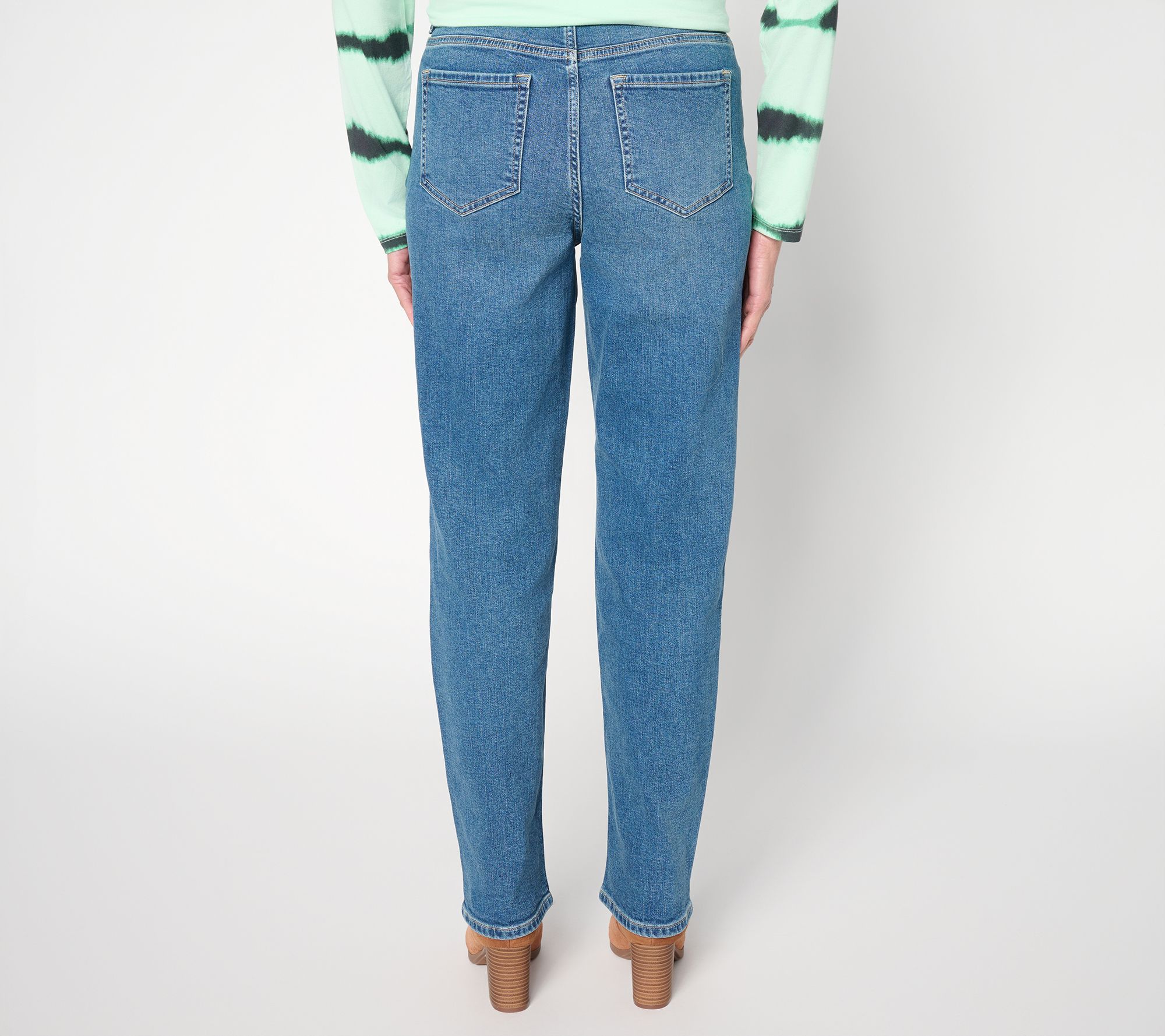 Can't-miss classic. With a crisp straight leg, a full-length silhouette, and smooth cotton fabrication with just a hint of stretch, you and these jeans will be besties for a long time to come. An easy pick for mating with anything from tees to tailored jackets, for everything from weekend concerts to office days. From LOGO by Lori Goldstein®.