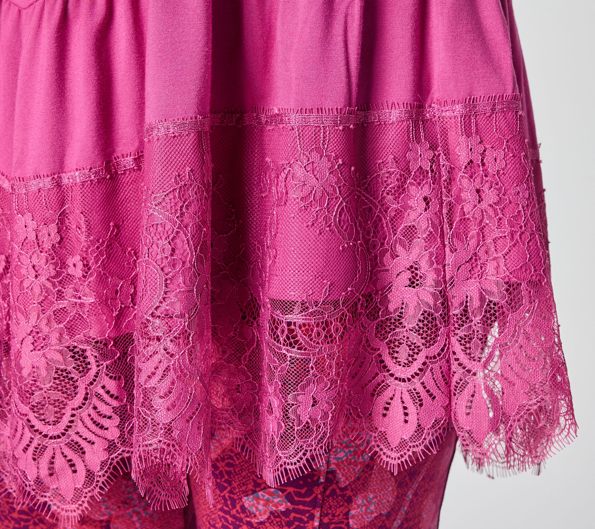 Content: body 90% rayon/10% spandex; lace 100% nylon